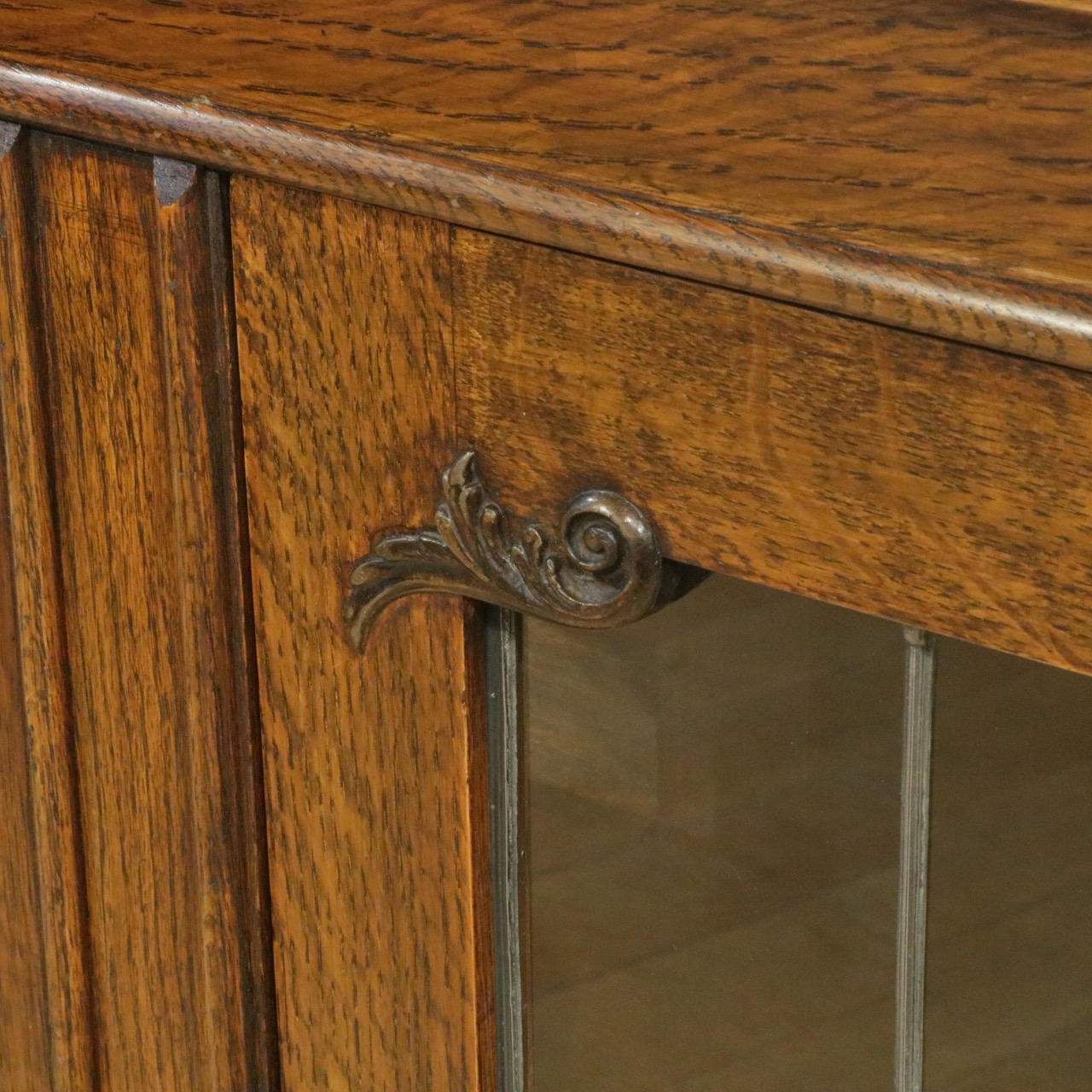 バックバーのトップ部分やガラスの縁にさりげなく、アカンサス装飾が。天使の羽のようでもありますね。