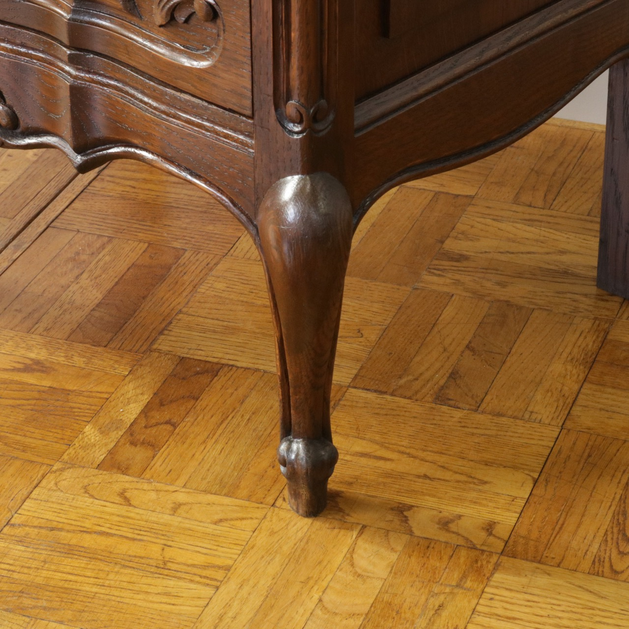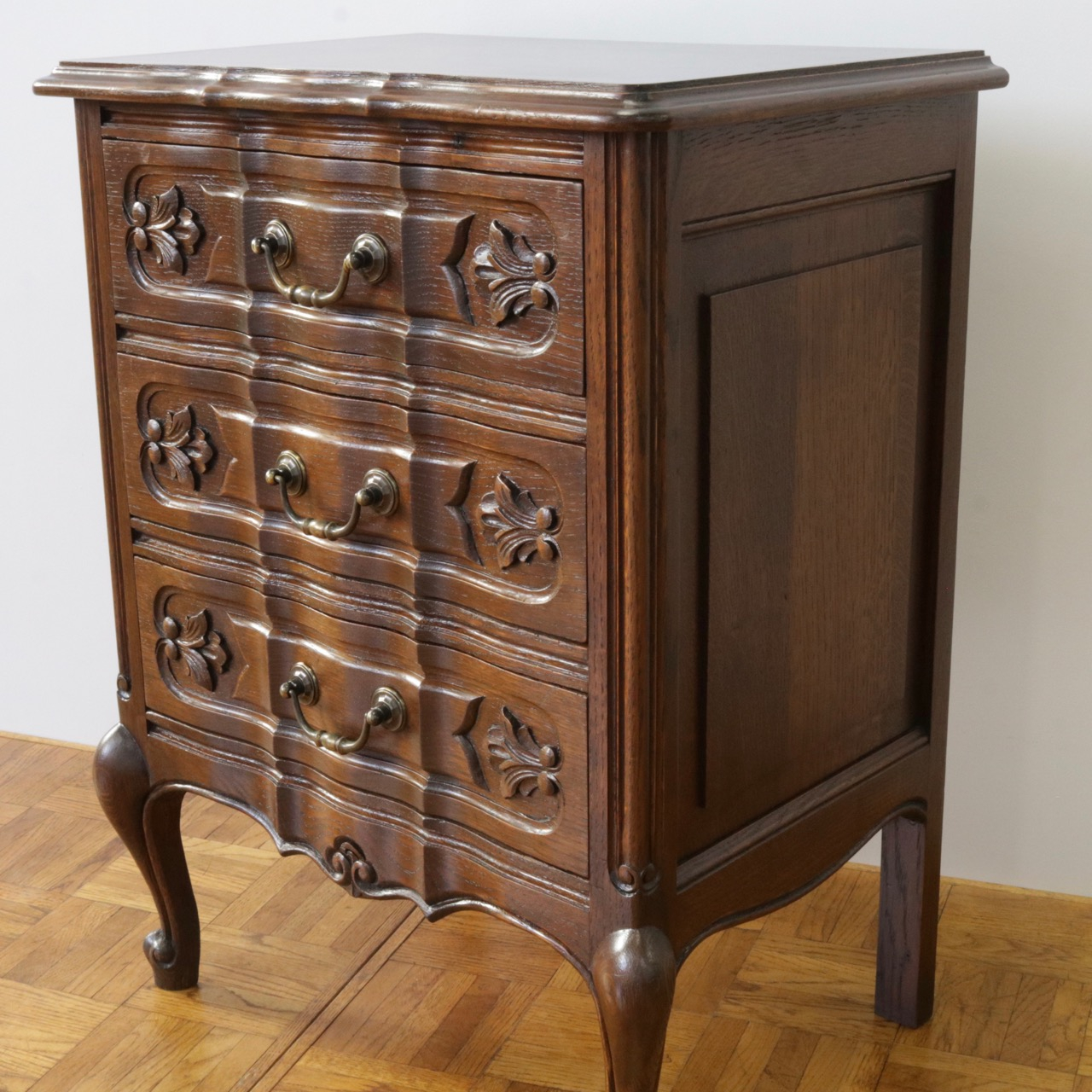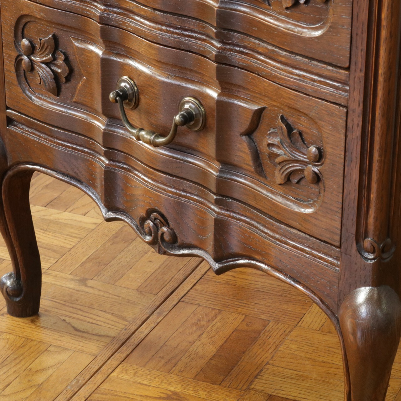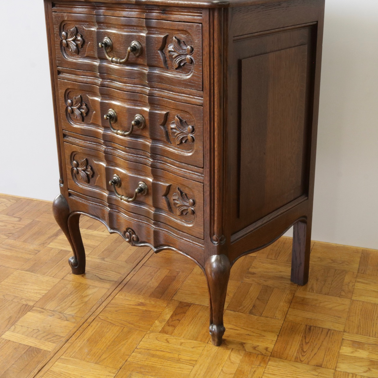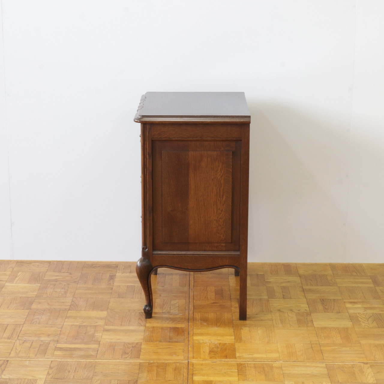 配送料の目安 ▶︎オーク材のチェスト。素朴で優しい風合いに優雅な植物彫刻がアクセントに施されています。ベッドサイドからリビング、玄関先など様々なスペースに取り入れやすいコンパクトサイズも嬉しいポイント。