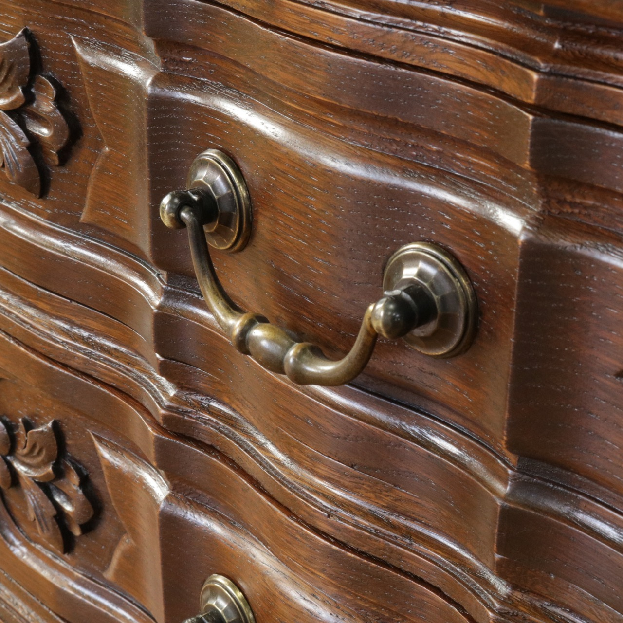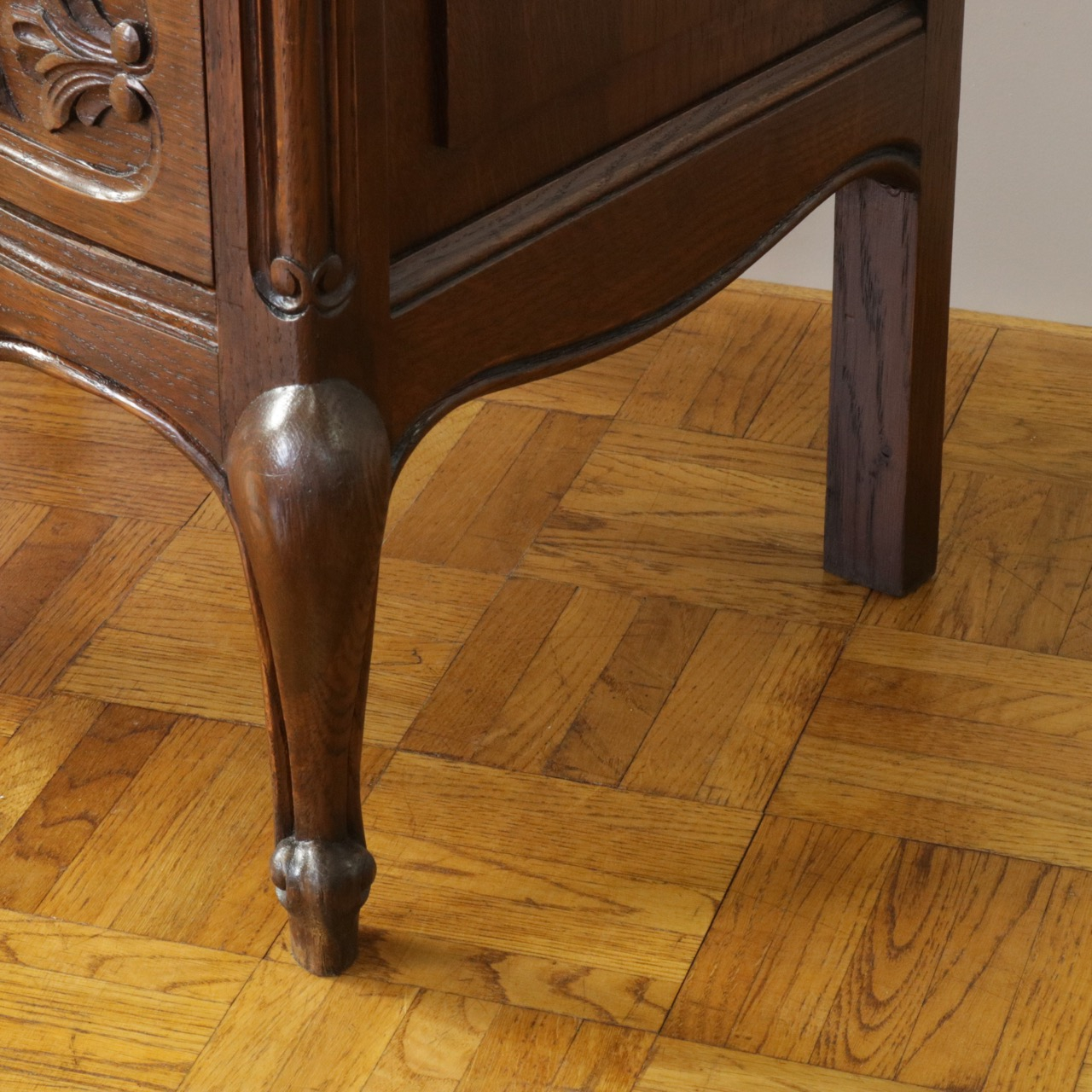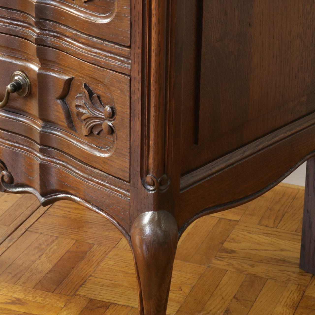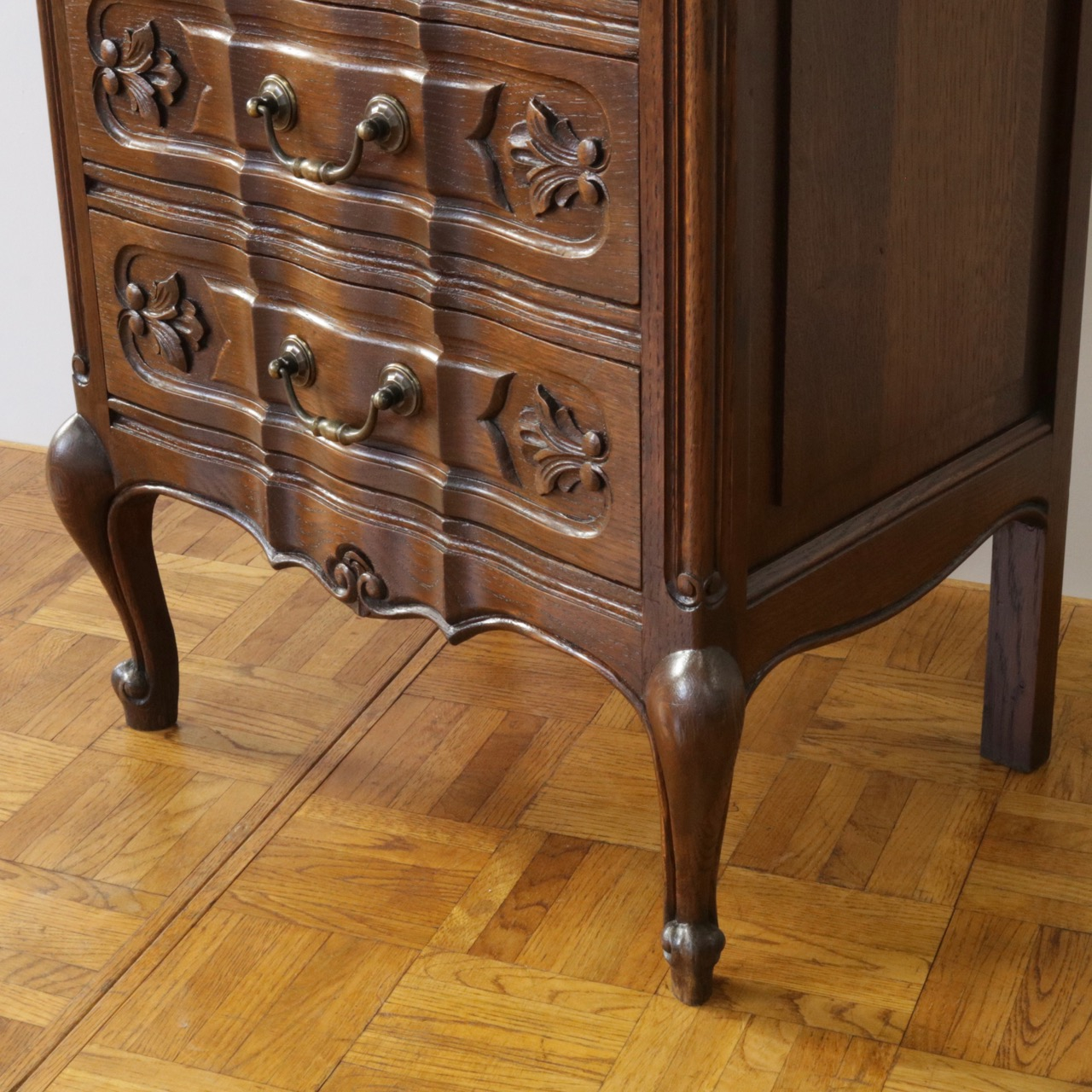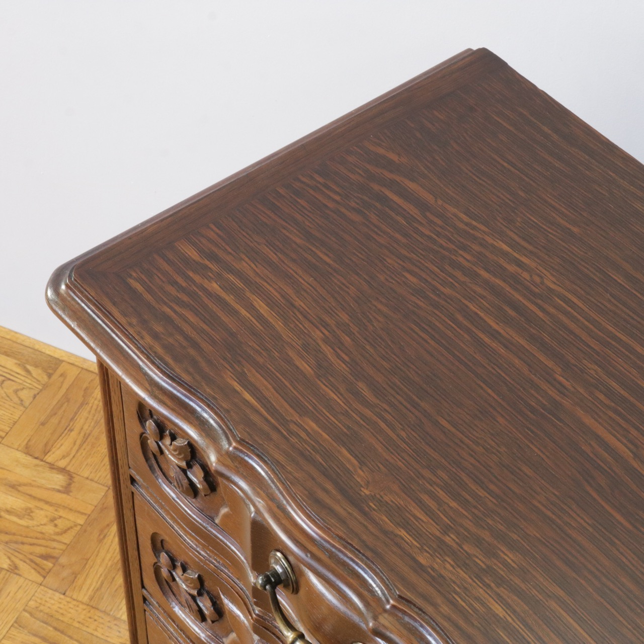 配送料の目安 ▶︎オーク材のチェスト。素朴で優しい風合いに優雅な植物彫刻がアクセントに施されています。ベッドサイドからリビング、玄関先など様々なスペースに取り入れやすいコンパクトサイズも嬉しいポイント。