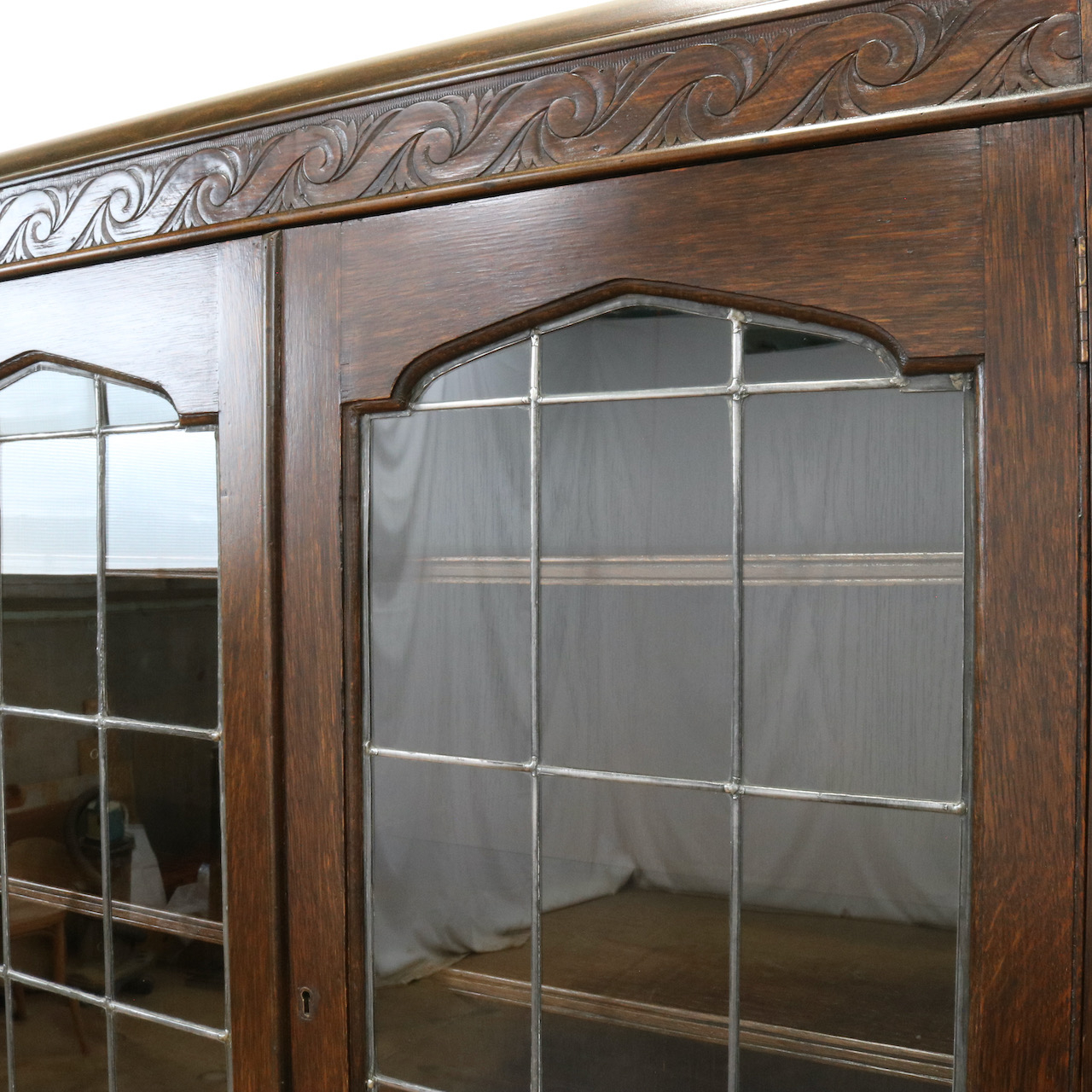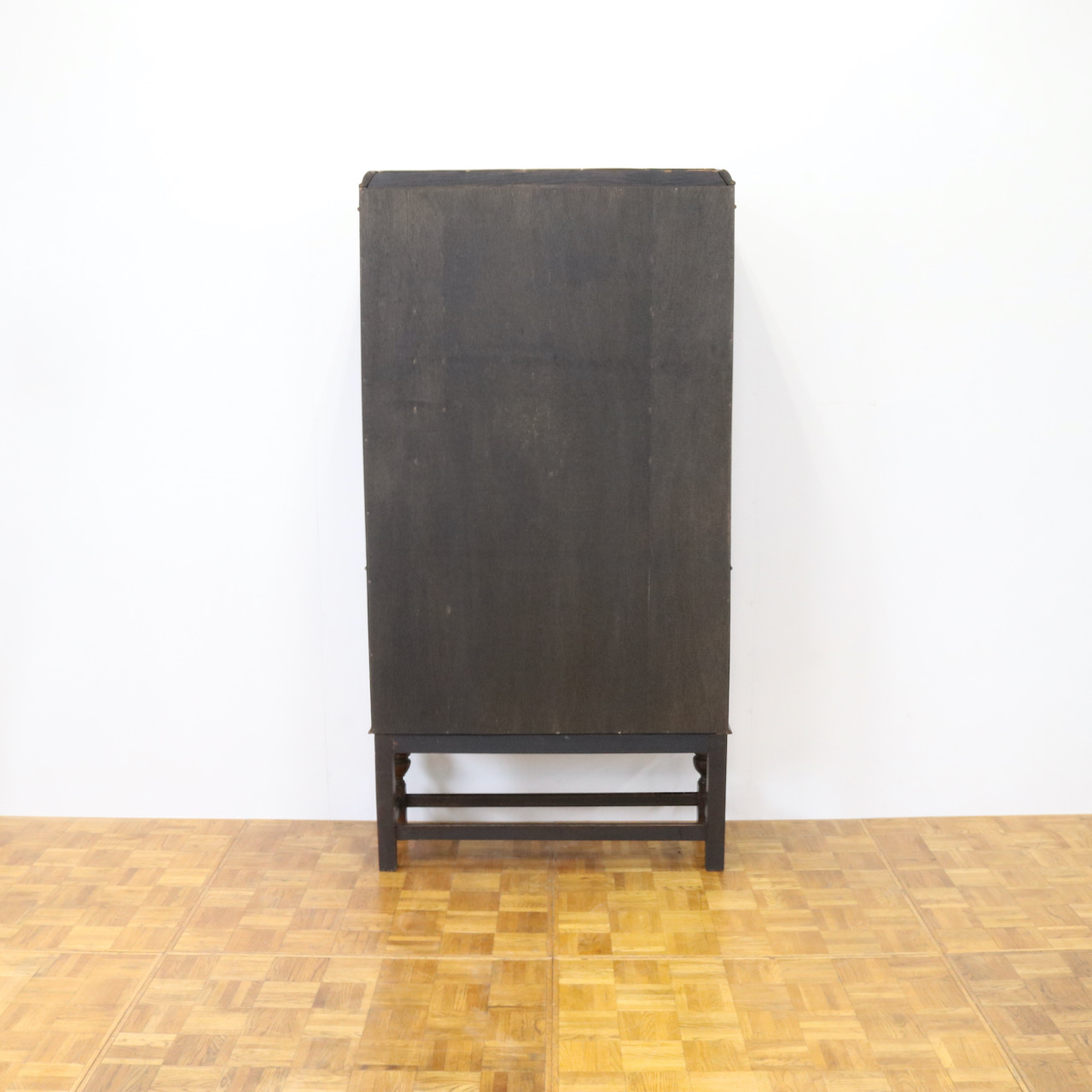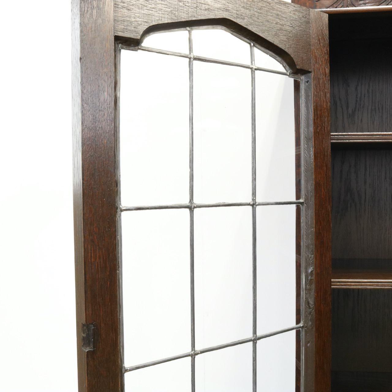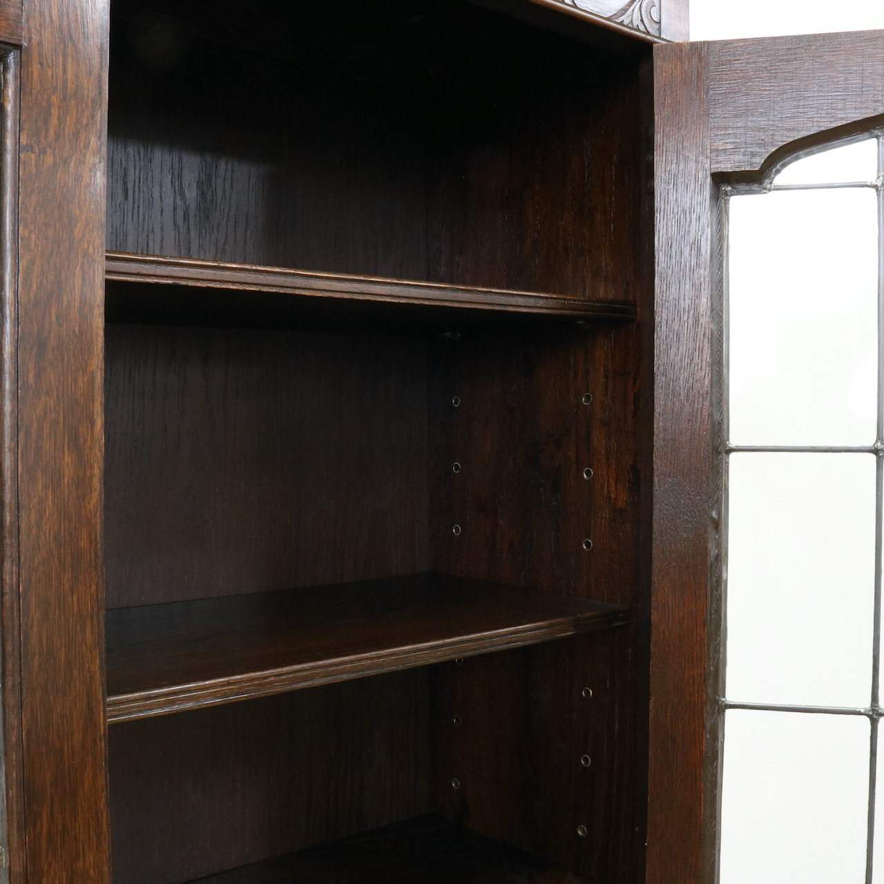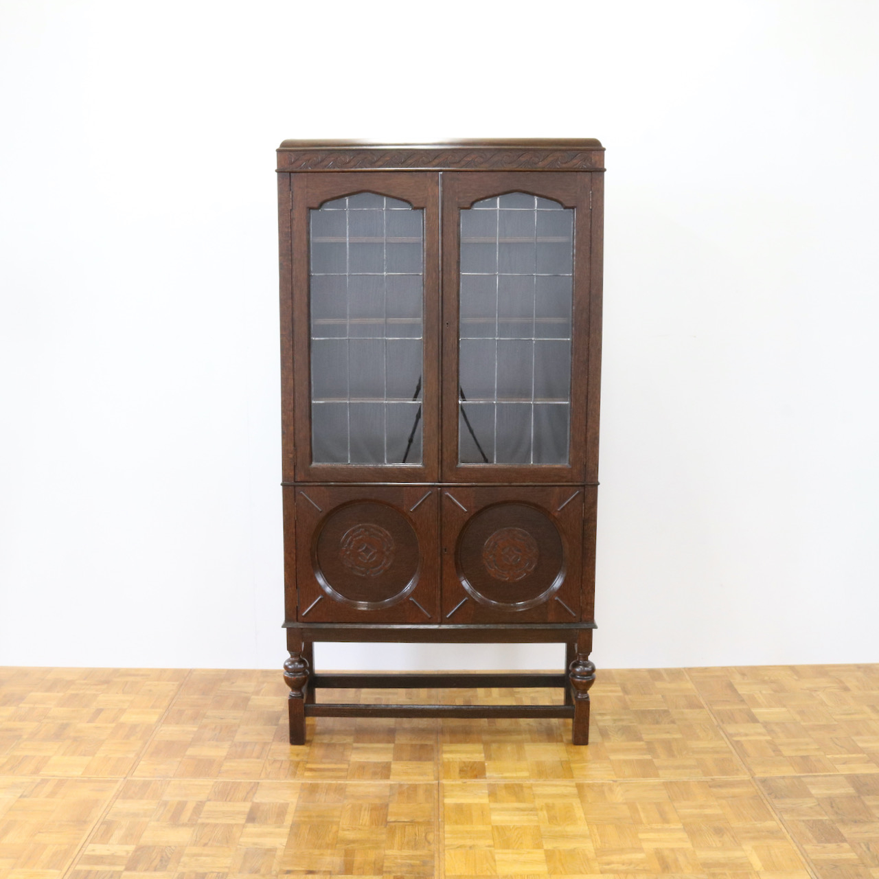 ガラス扉の内側も鉛の枠線が盛り上がり、アンティークらしい表情を見せています。