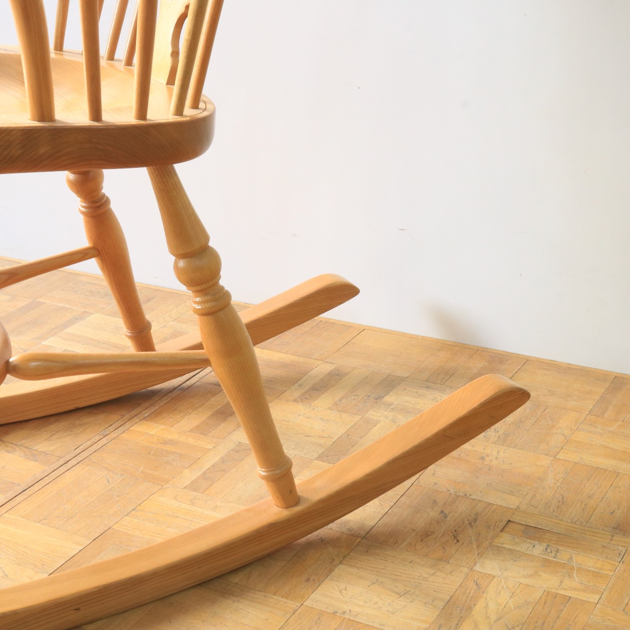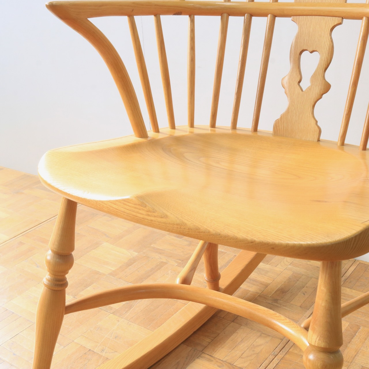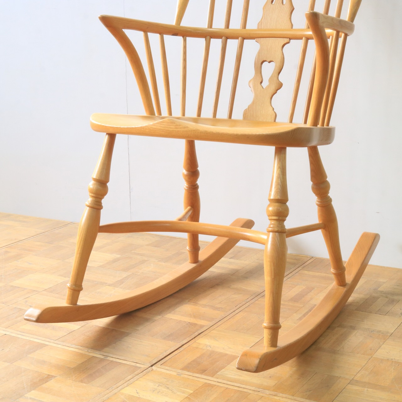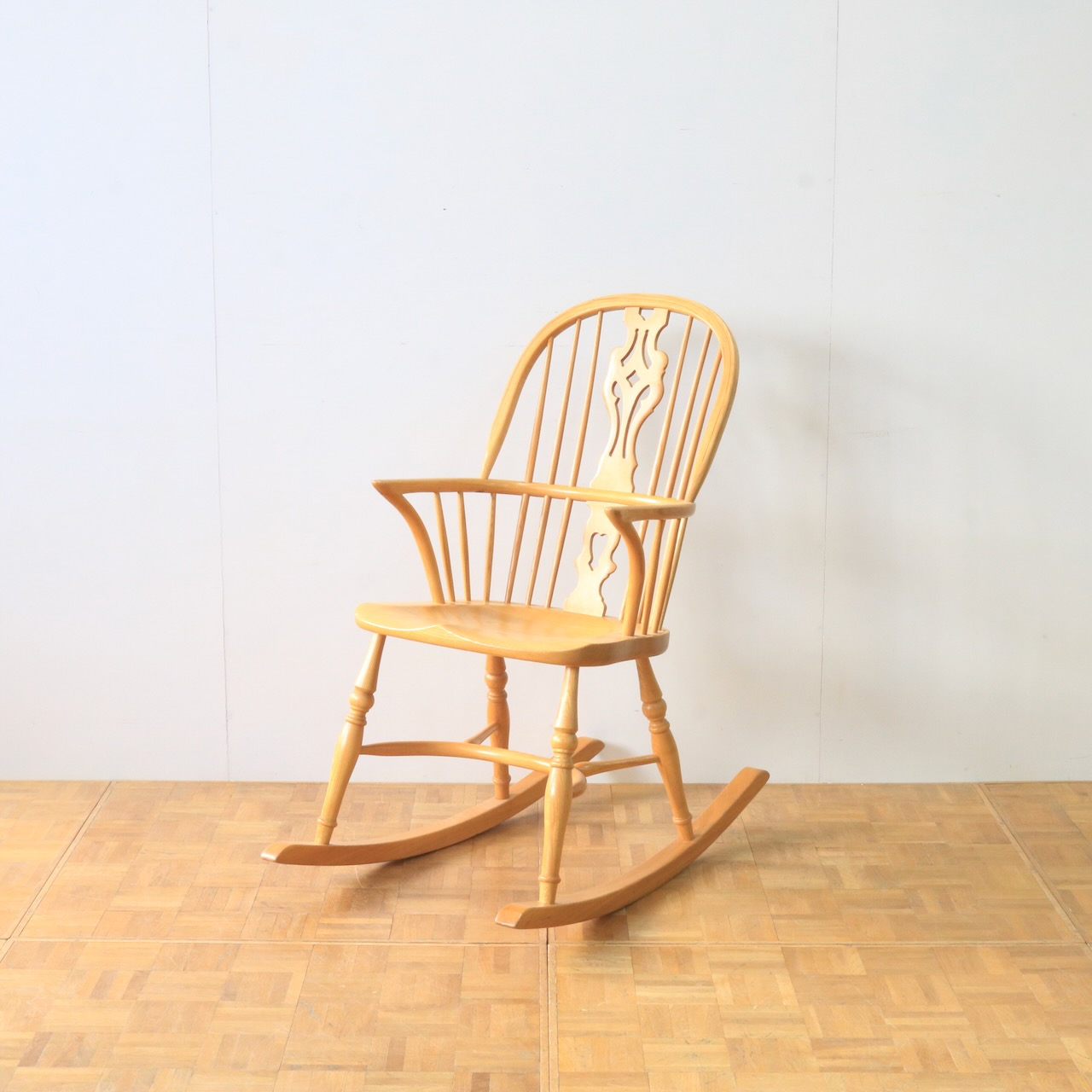 脚先はロッキングチェアーならではのソリ型。背を預けると優しく揺れます。ゆったりとした時間をお楽しみください。