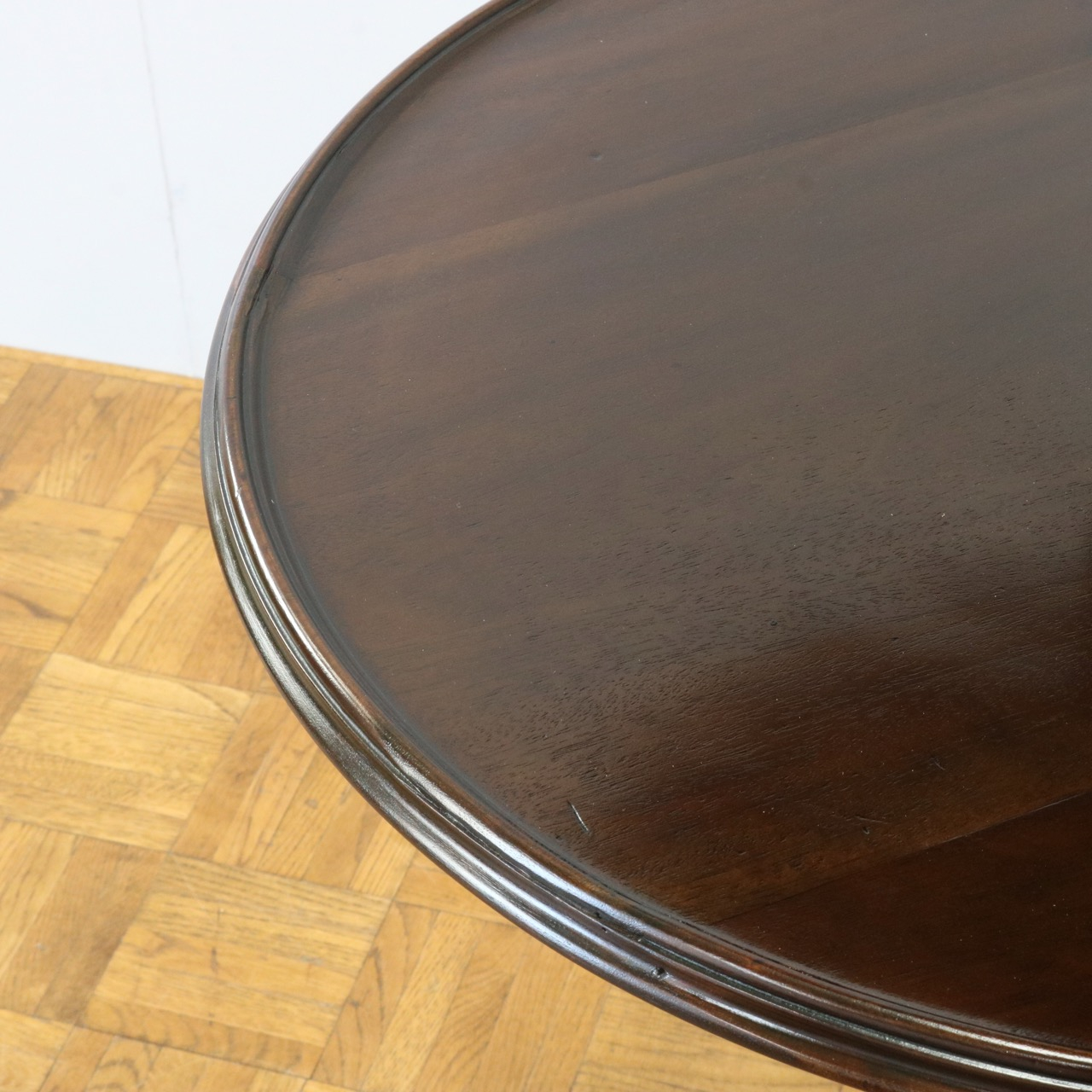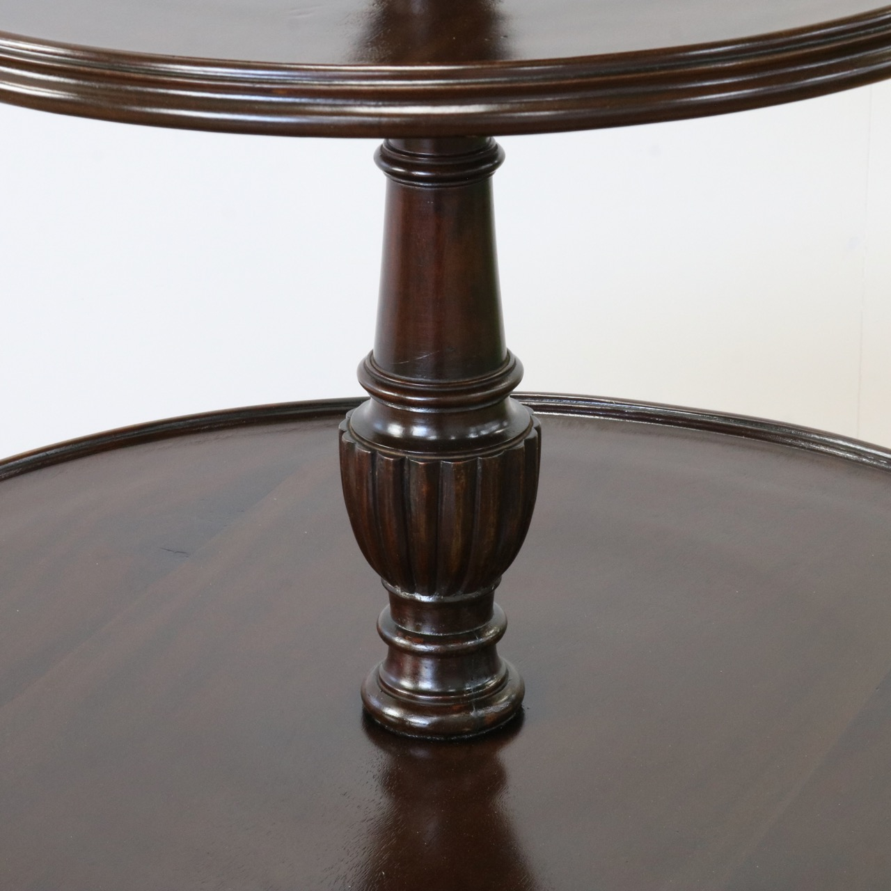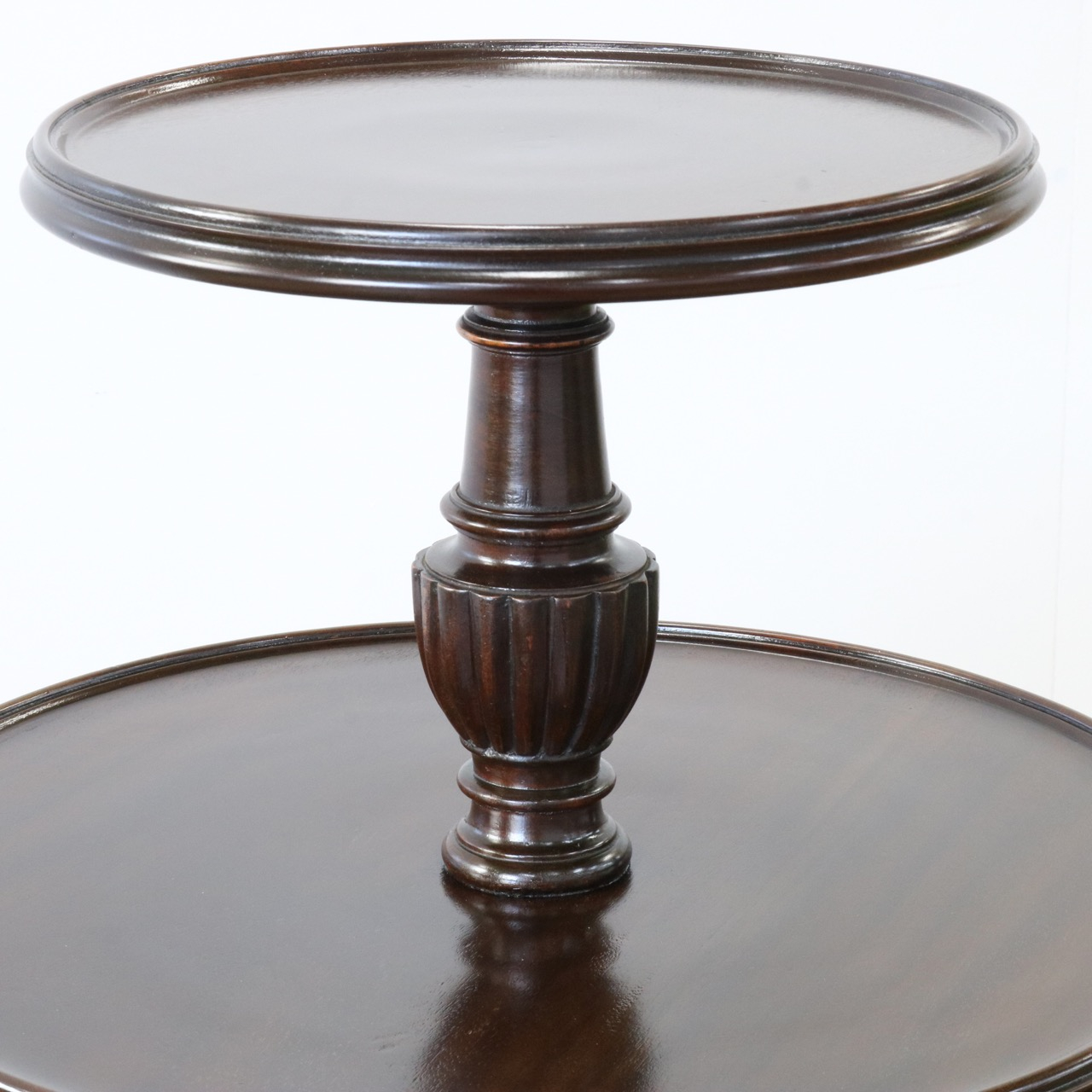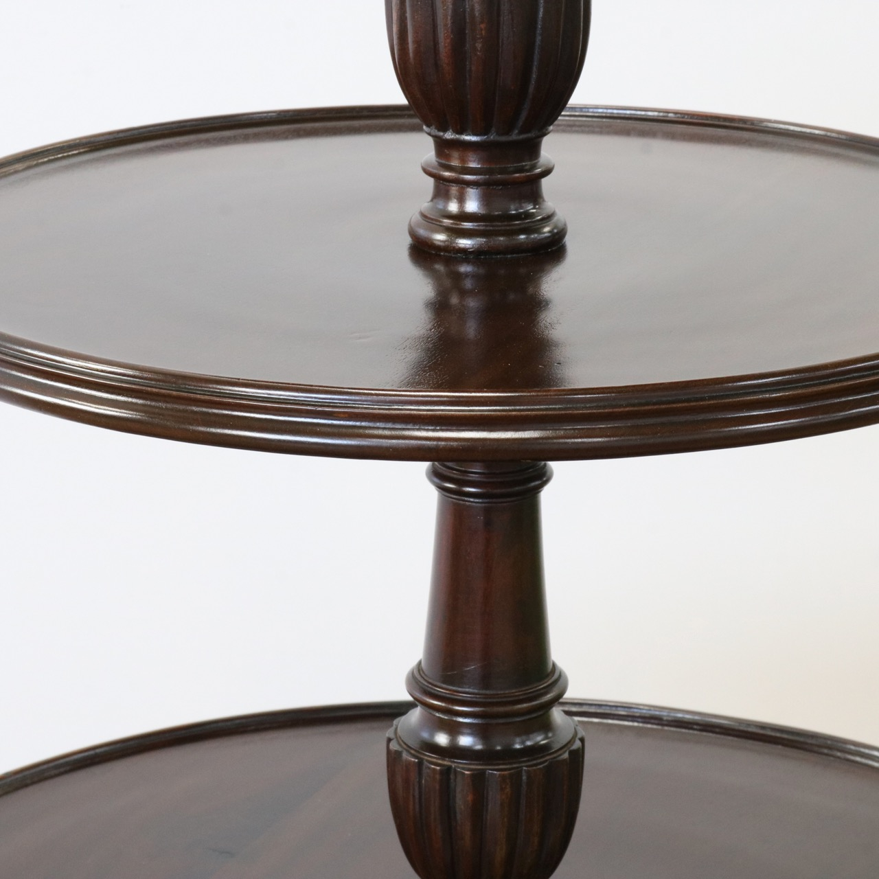 テーブルとテーブルを繋ぐ支柱は挽物細工が施され、三脚のトライポッドには優美なレリーフが施されています。