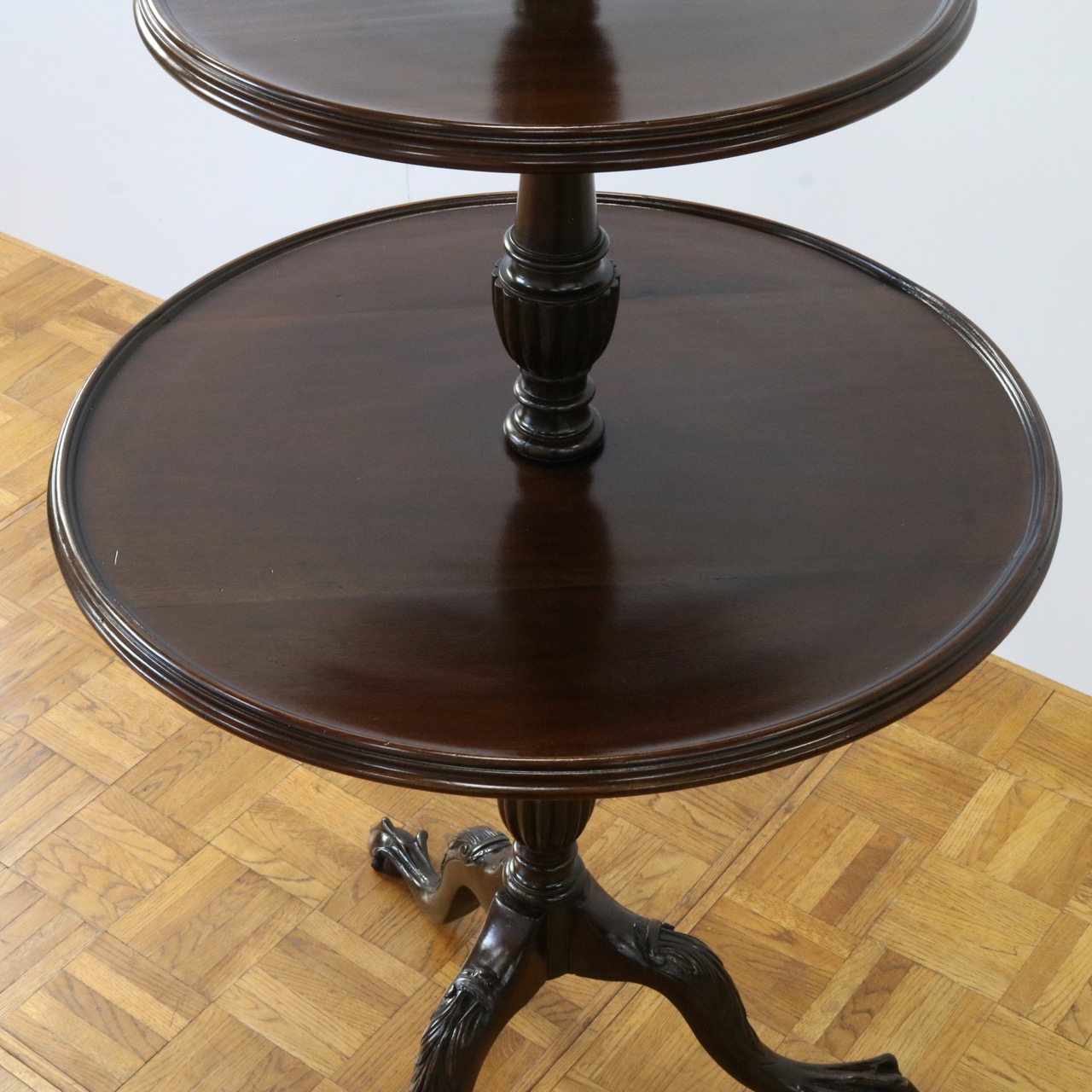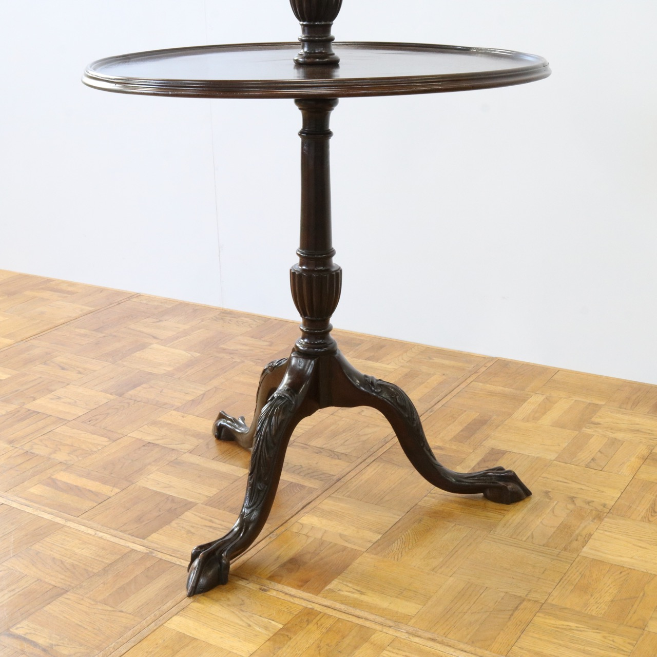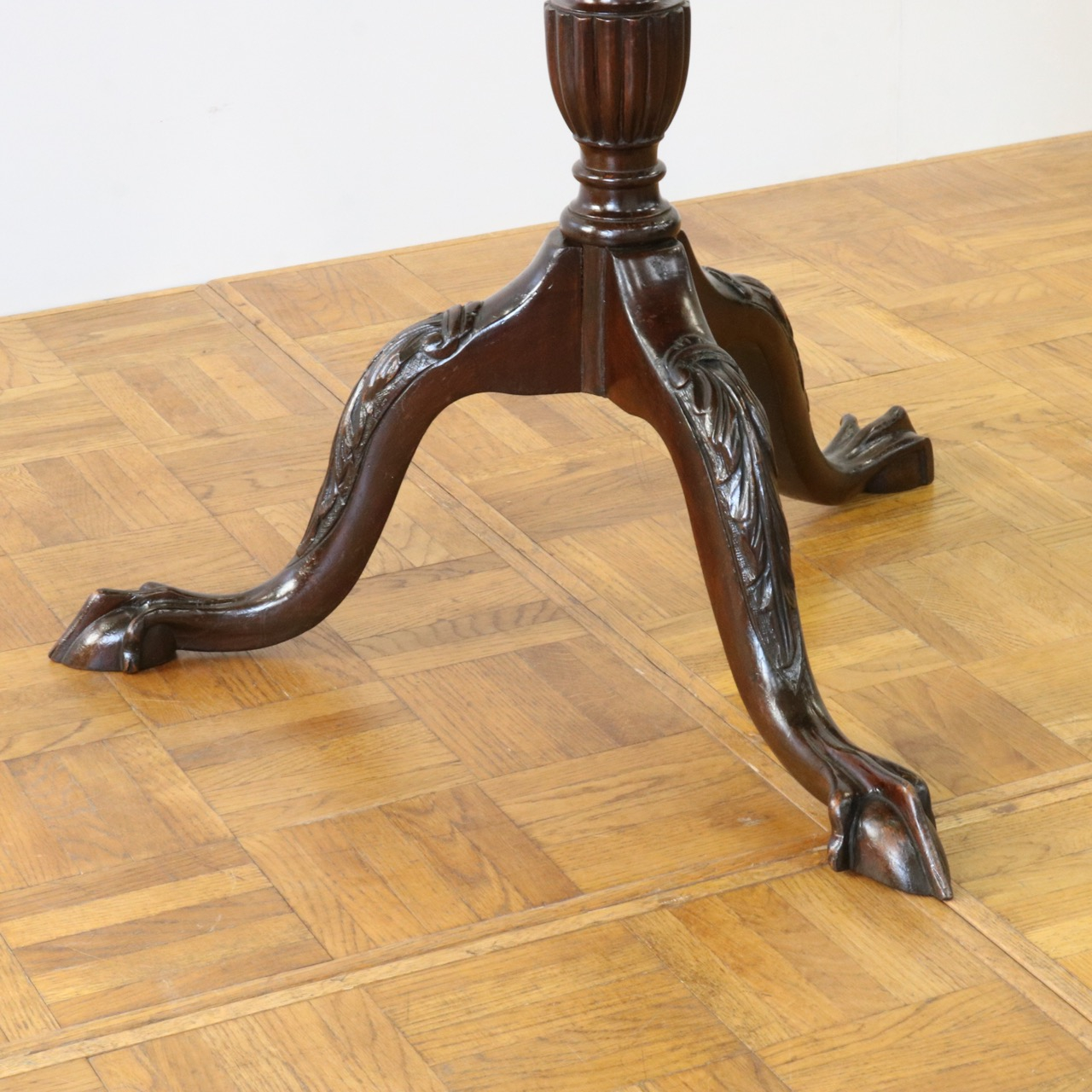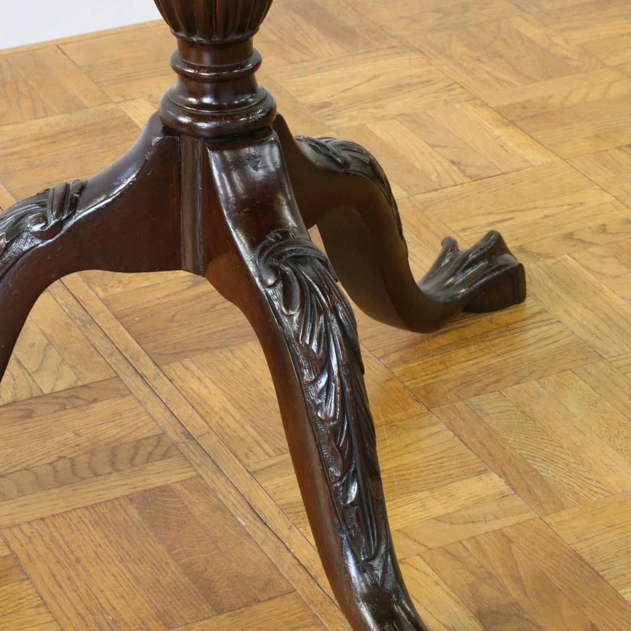 繊細なトライポッドの脚には美しい彫刻装飾が入っています。