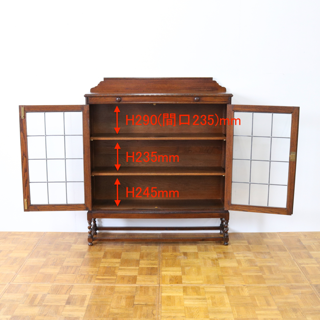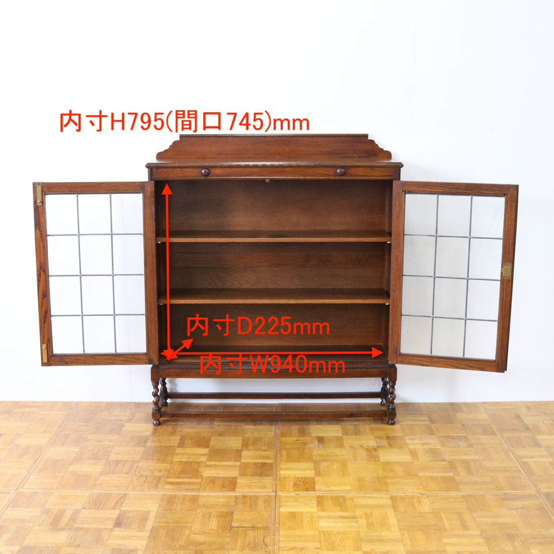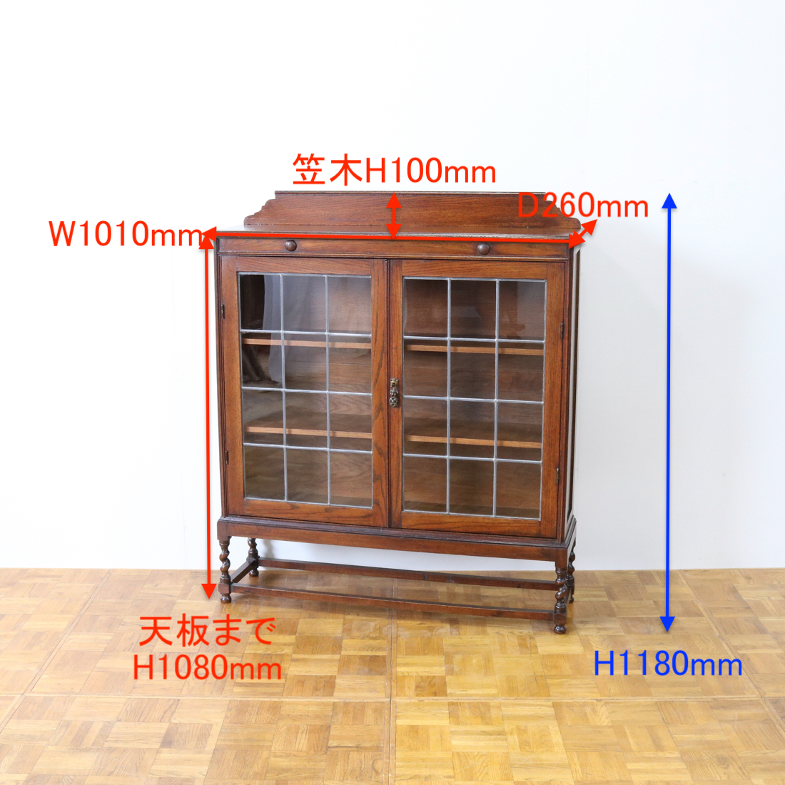 リーディッドガラス扉やバーリーシュガーツイストレッグ、天板縁のレリーフ等アンティークらしい意匠が施され趣のあるひと品です。