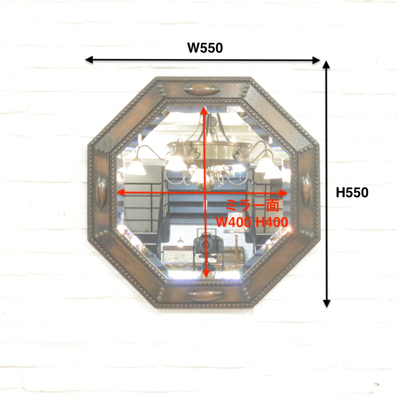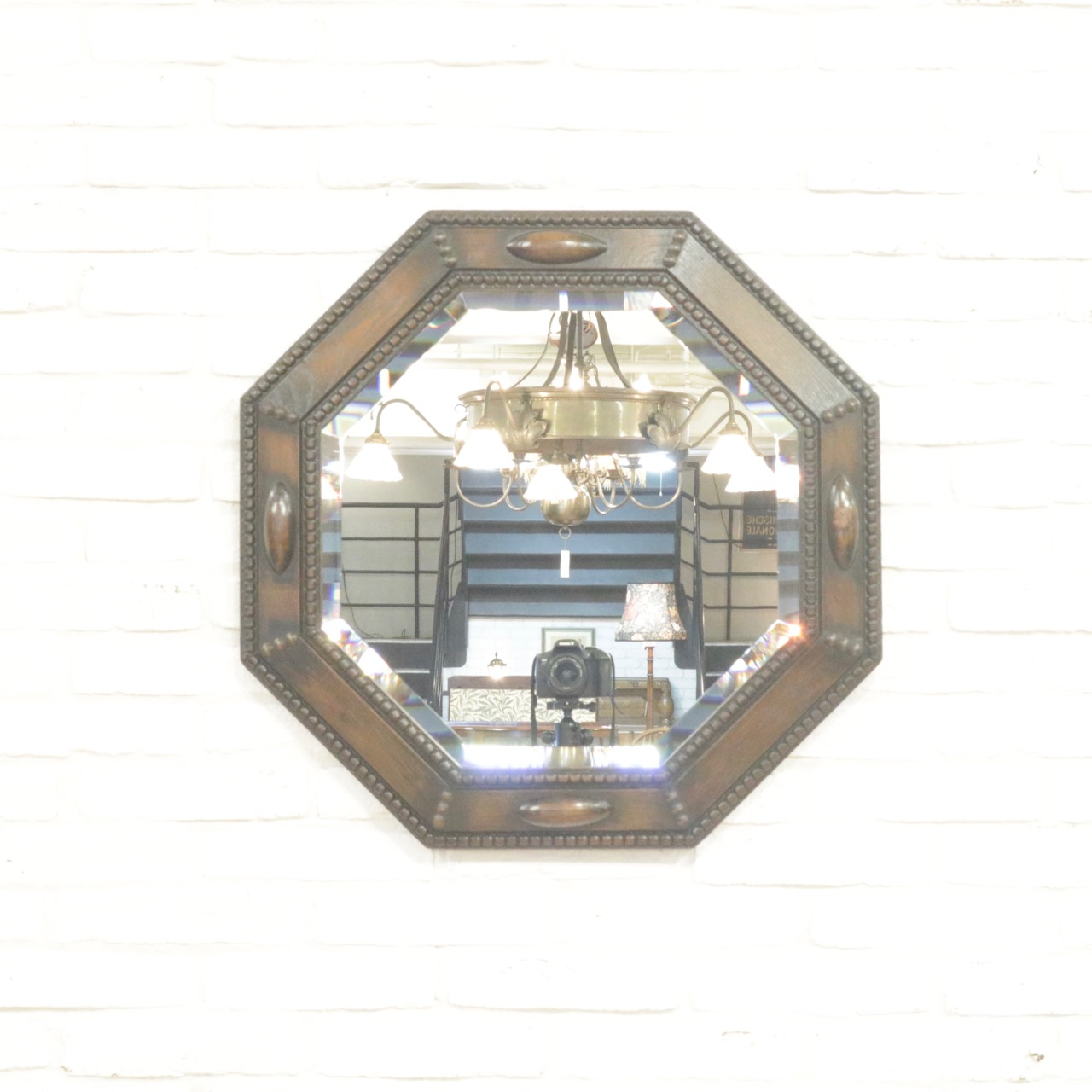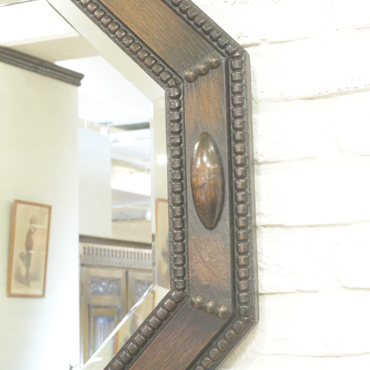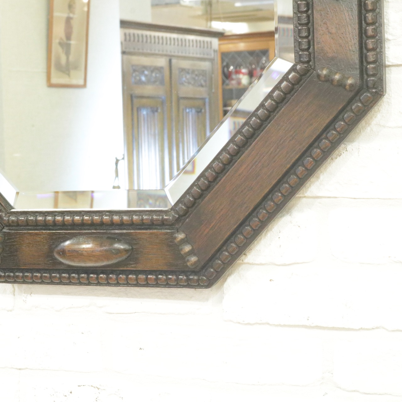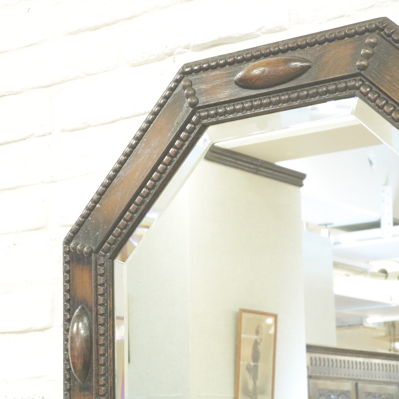 八角形の木枠は玉飾りで縁取られていて、アクセントになる楕円形の飾りもクラシックな雰囲気。