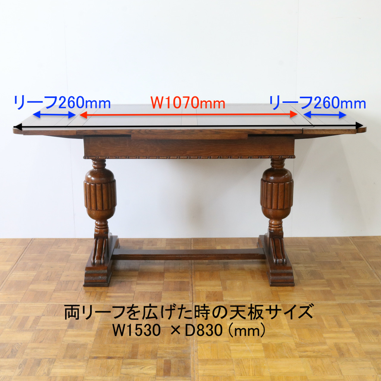 配送料の目安 ▶︎1930年代、オーク材のドローリーフテーブル。