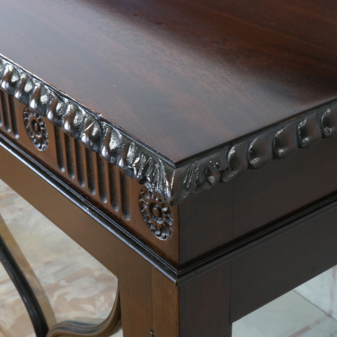 随所に施された彫刻装飾は非常に丁寧な仕事で、家具全体を引き立てます。
