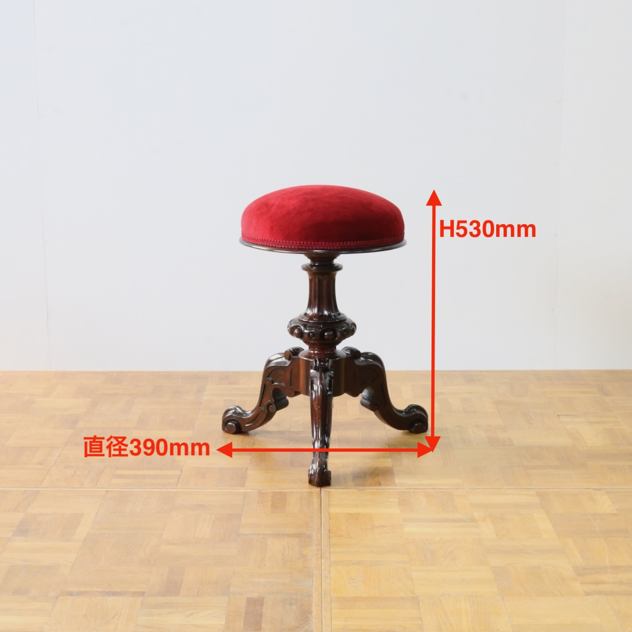 配送料の目安 ▶︎1890年代ヴィクトリアン、ローズウッドのスツール。トライポッドの脚に美しい彫刻が施された優雅なデザイン。高さを変更することも出来ます。ピアノやお部屋のコーナーに添えて、雰囲気の良いアクセントになります。