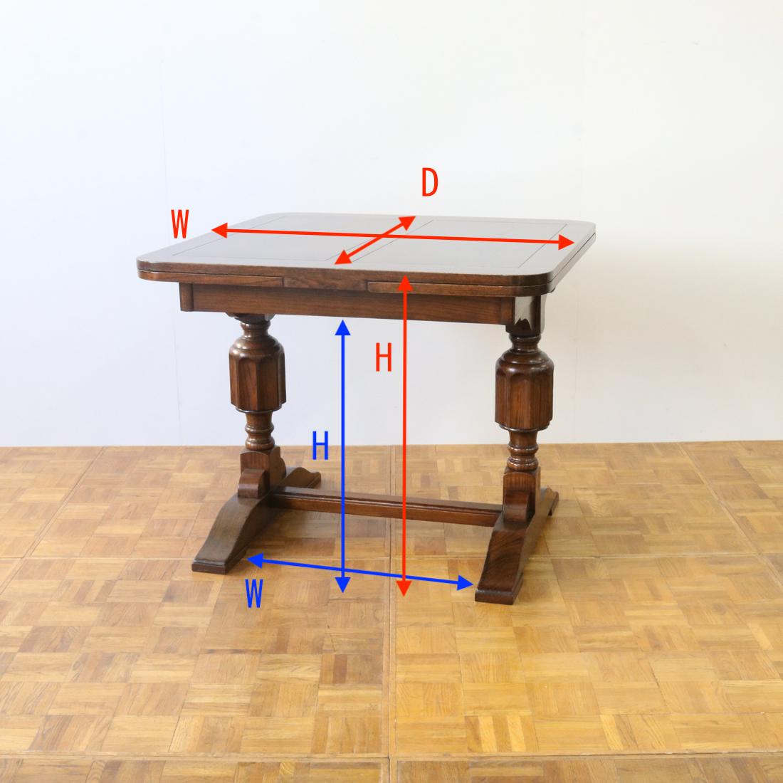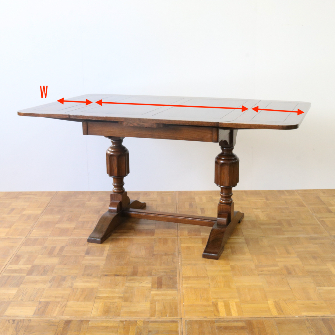 配送料の目安 ▶︎1930年代、オーク材のドローリーフテーブル。すっきりとしたブルボースの脚はスタイリッシュな印象です。天板はリーフを引き出して広さを調節することができます。