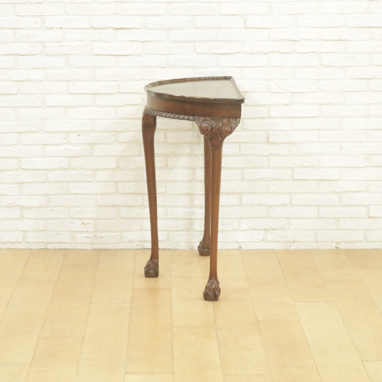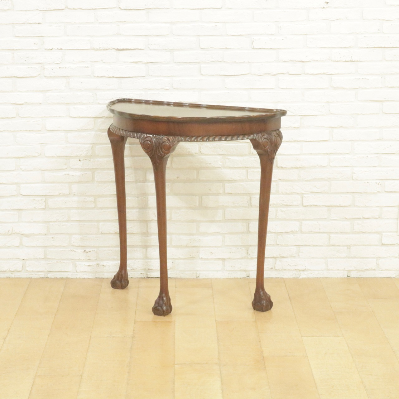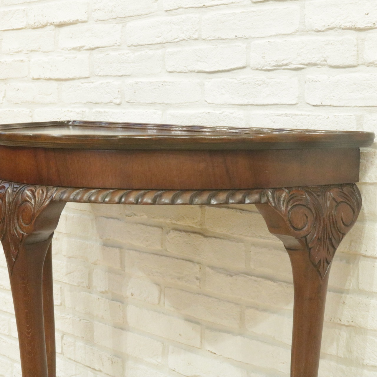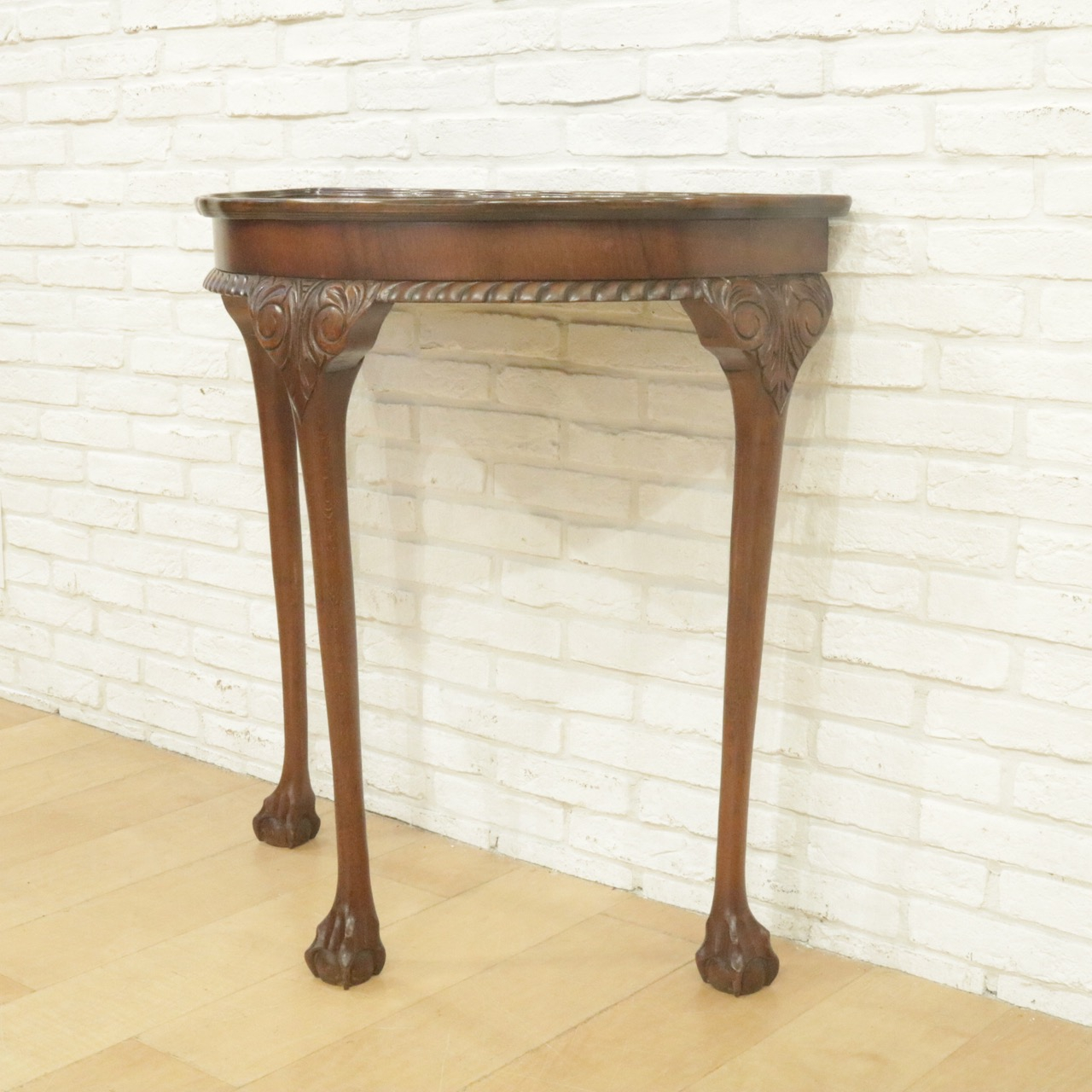 フリルのように縁取られた天板縁や幕板のレリーフ、ボウル&クロウフィート等エレガントな佇まい。