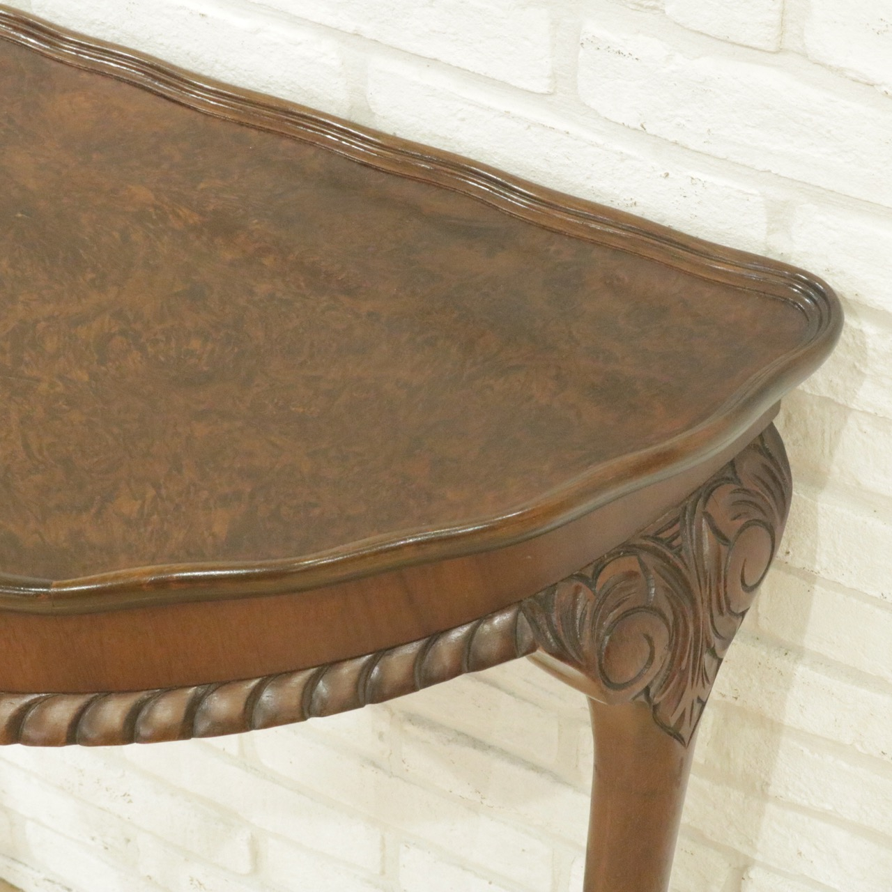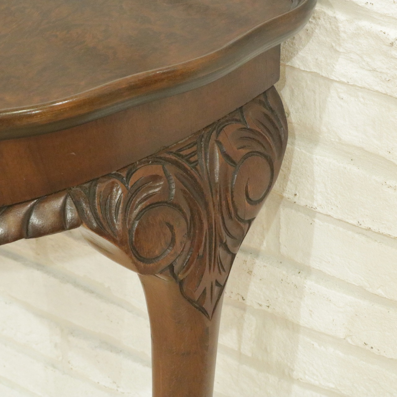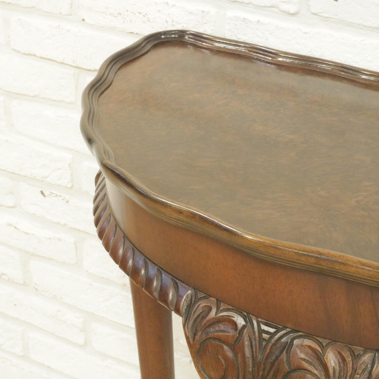 フリルのように縁取られた天板縁や幕板のレリーフ、ボウル&クロウフィート等エレガントな佇まい。