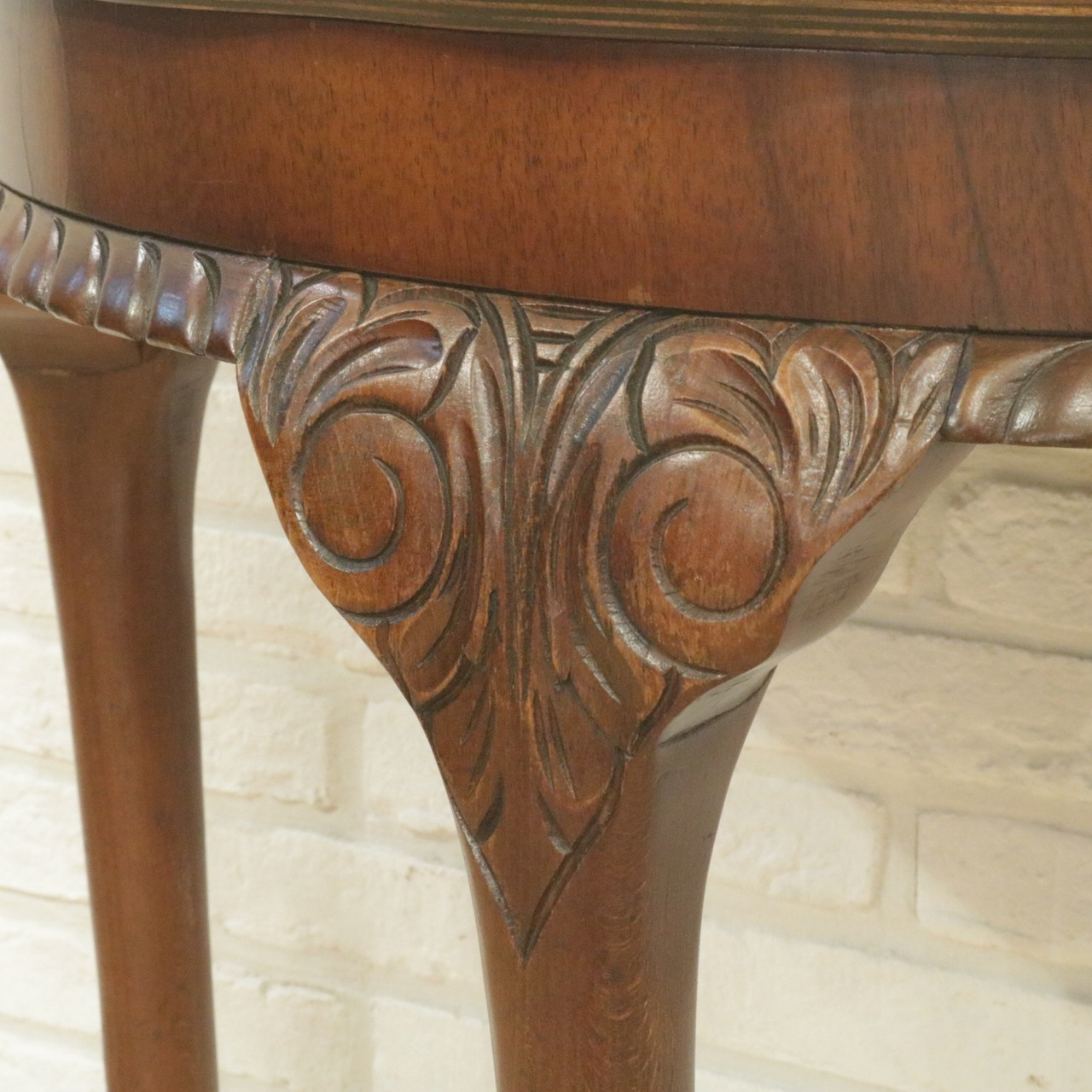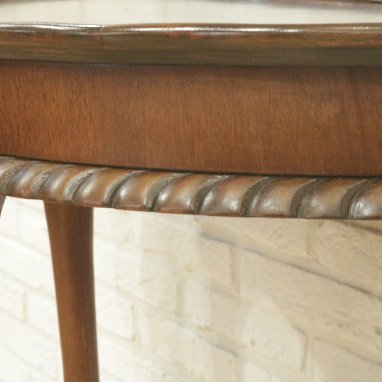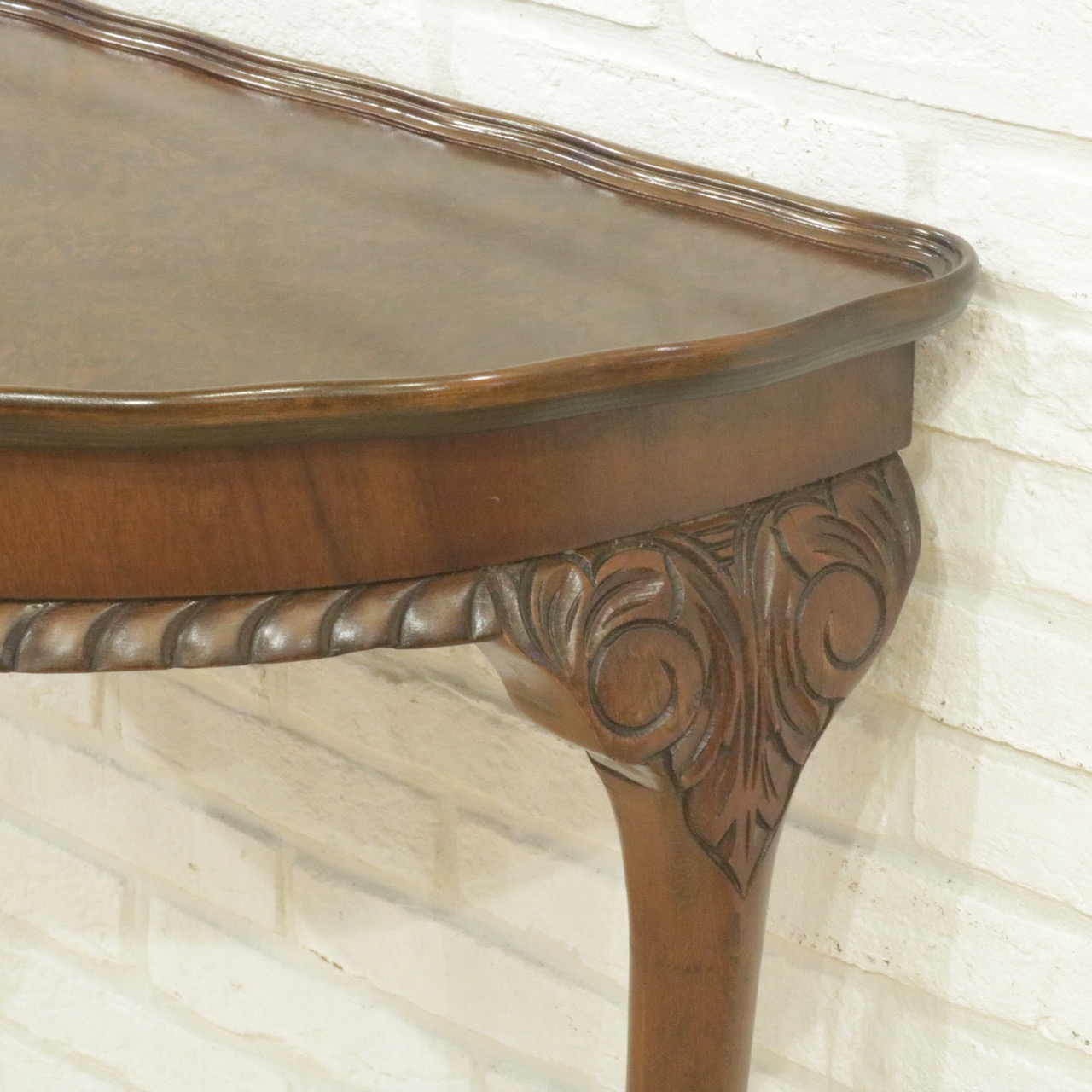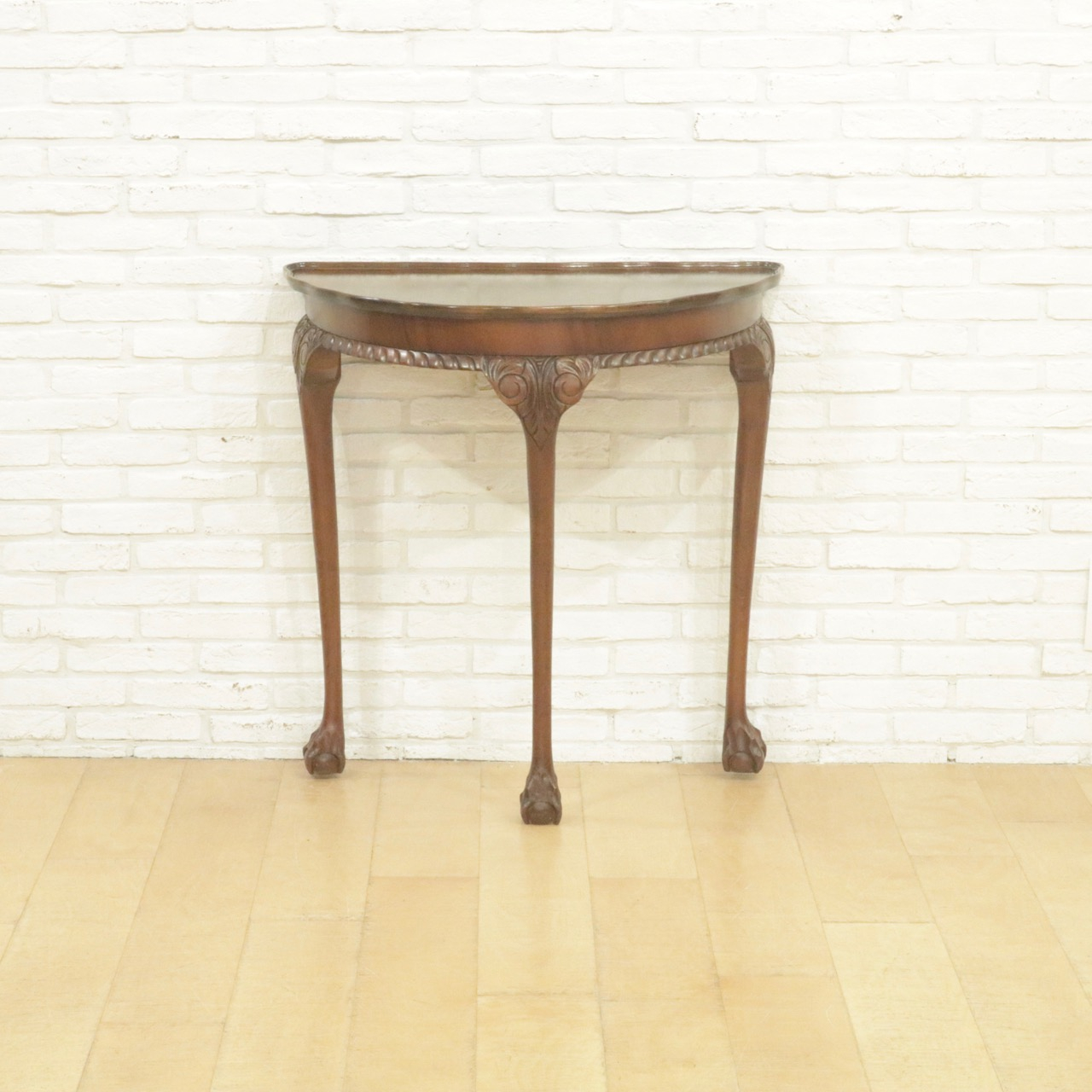 フリルのように縁取られた天板縁や幕板のレリーフ、ボウル&クロウフィート等エレガントな佇まい。