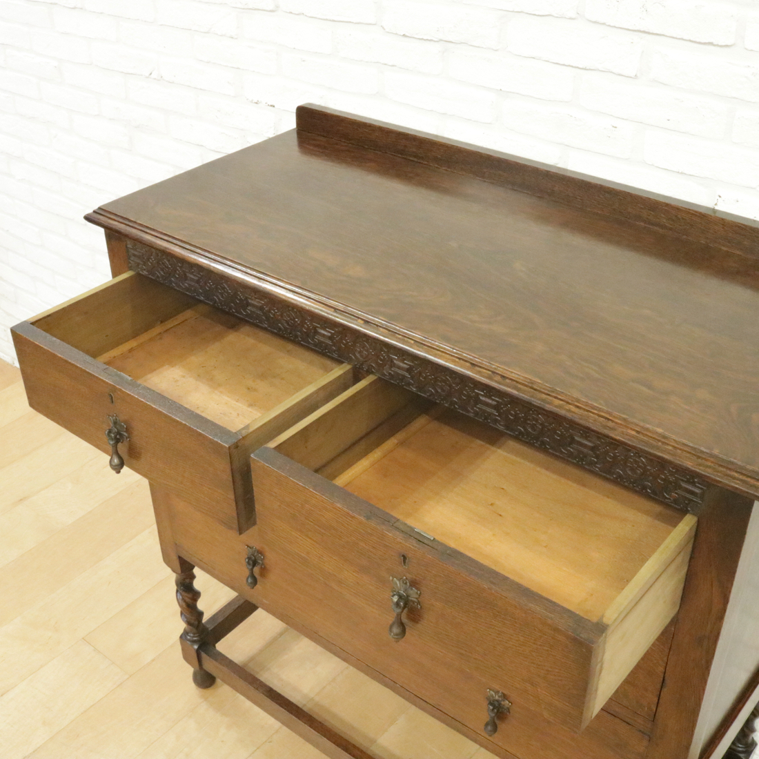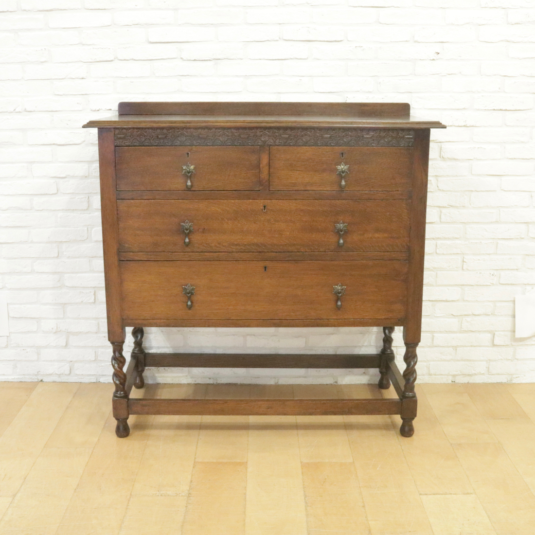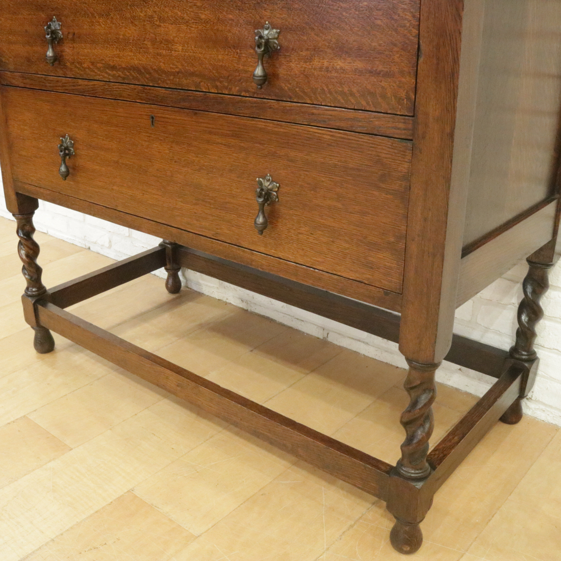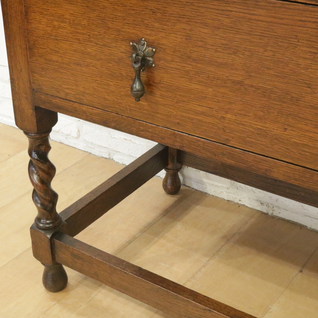脚部のバーリーシュガーツイストがオーク材の家具らしさを引き立てています。