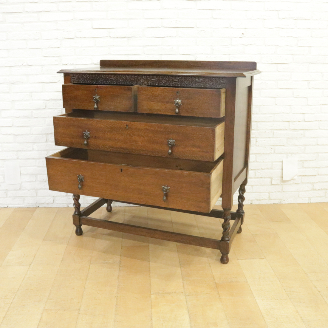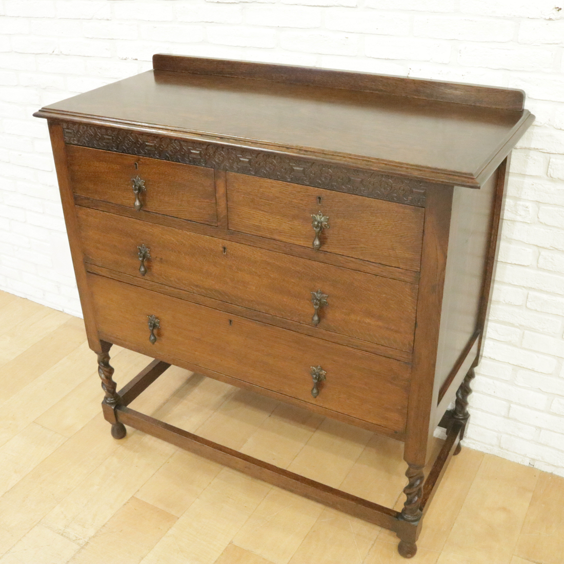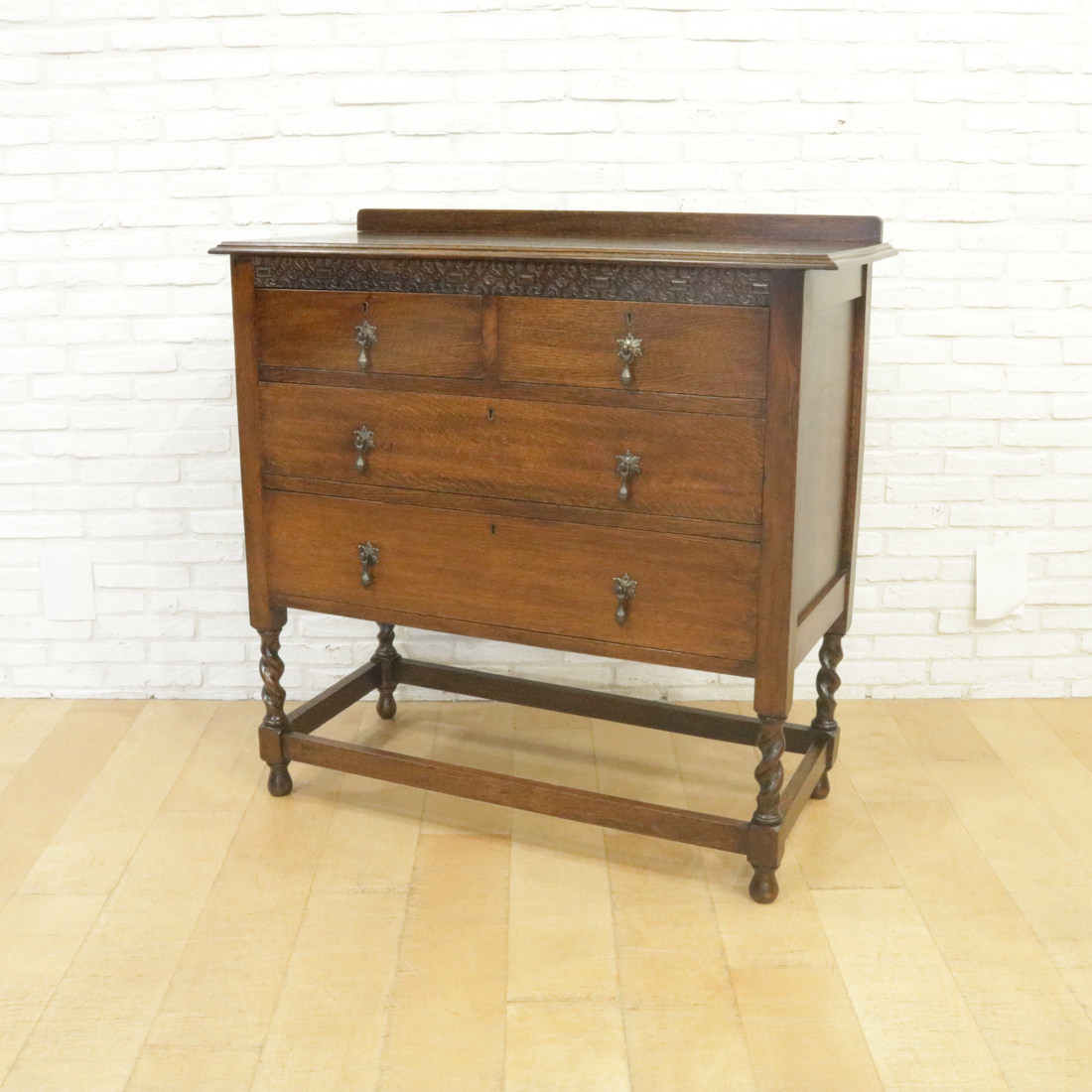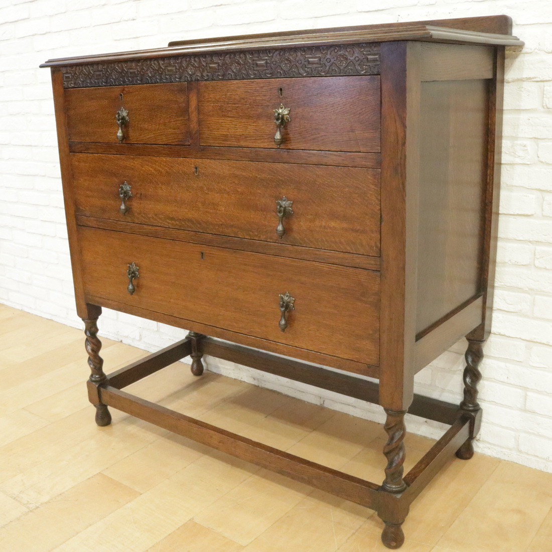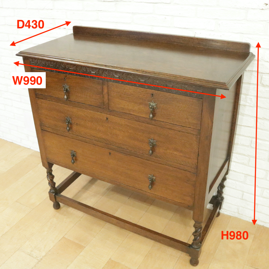 脚部のバーリーシュガーツイストがオーク材の家具らしさを引き立てています。