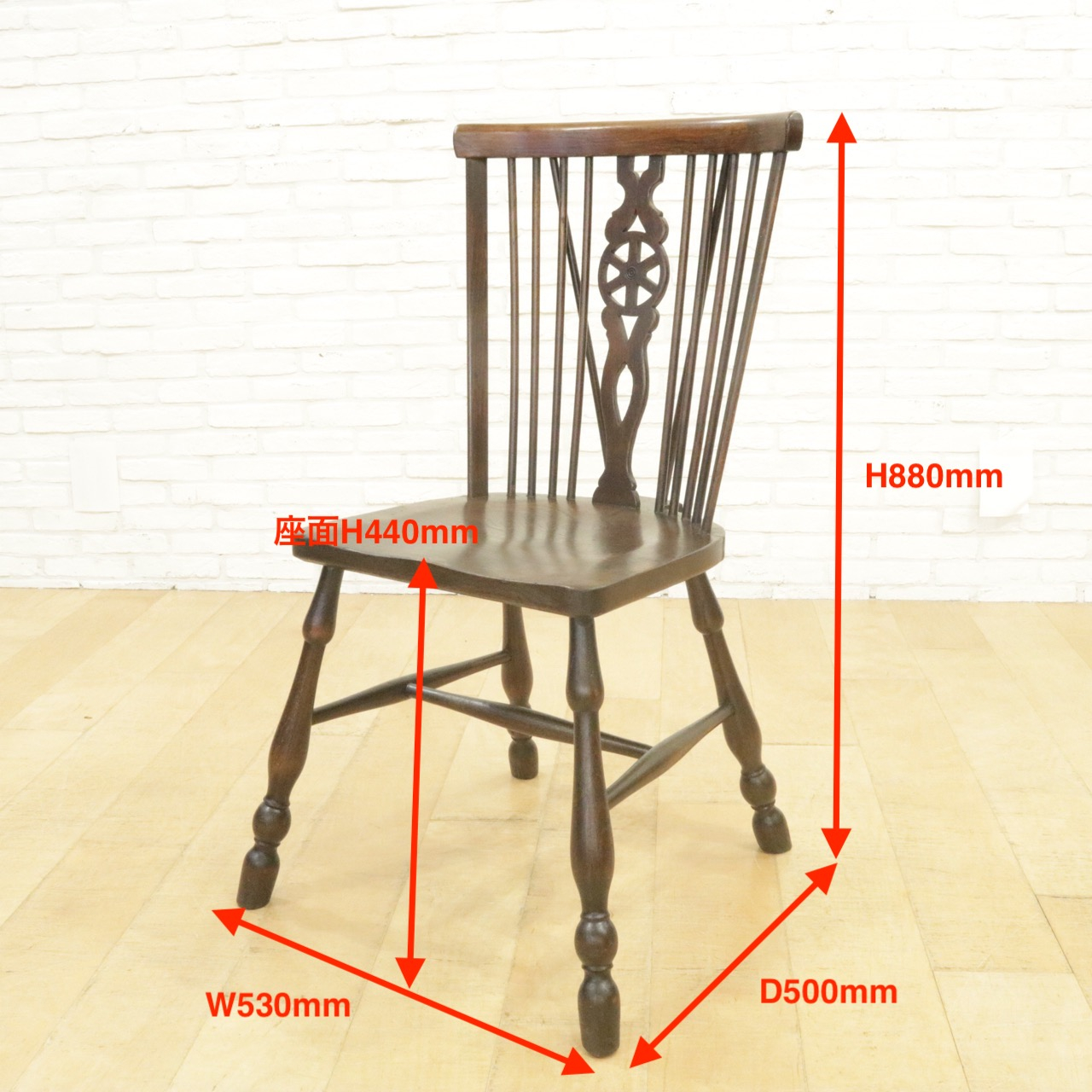 背もたれはホイールバックと呼ばれる船の舵を模したデザイン。英国ではとてもメジャーです。