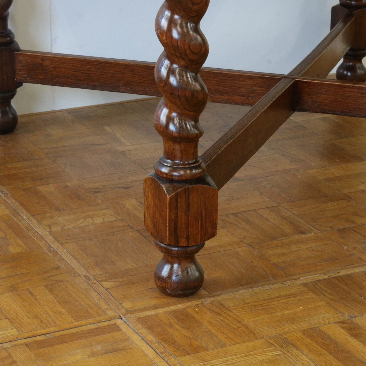 脚元はどっしりとしたバーリーシュガーツイストの脚とX型のストレッチャーが特徴的。