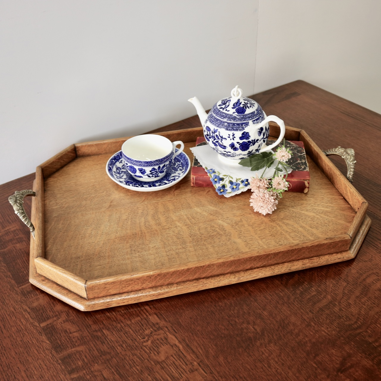 1930年代、オーク材、八角形のティートレイ 。