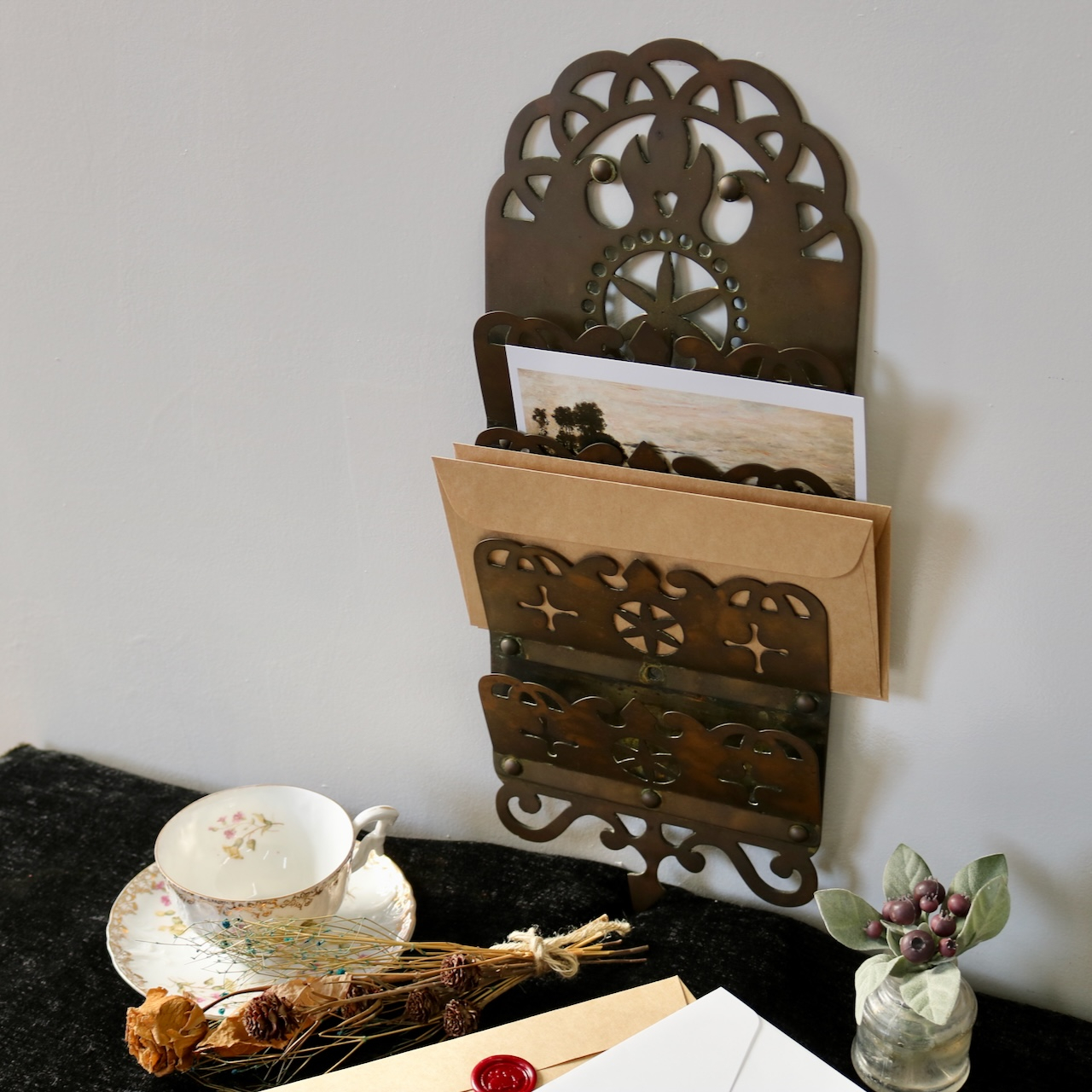 真鍮製のレターラックです。透かしの模様がポイントです。