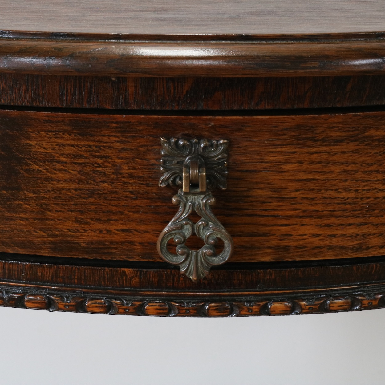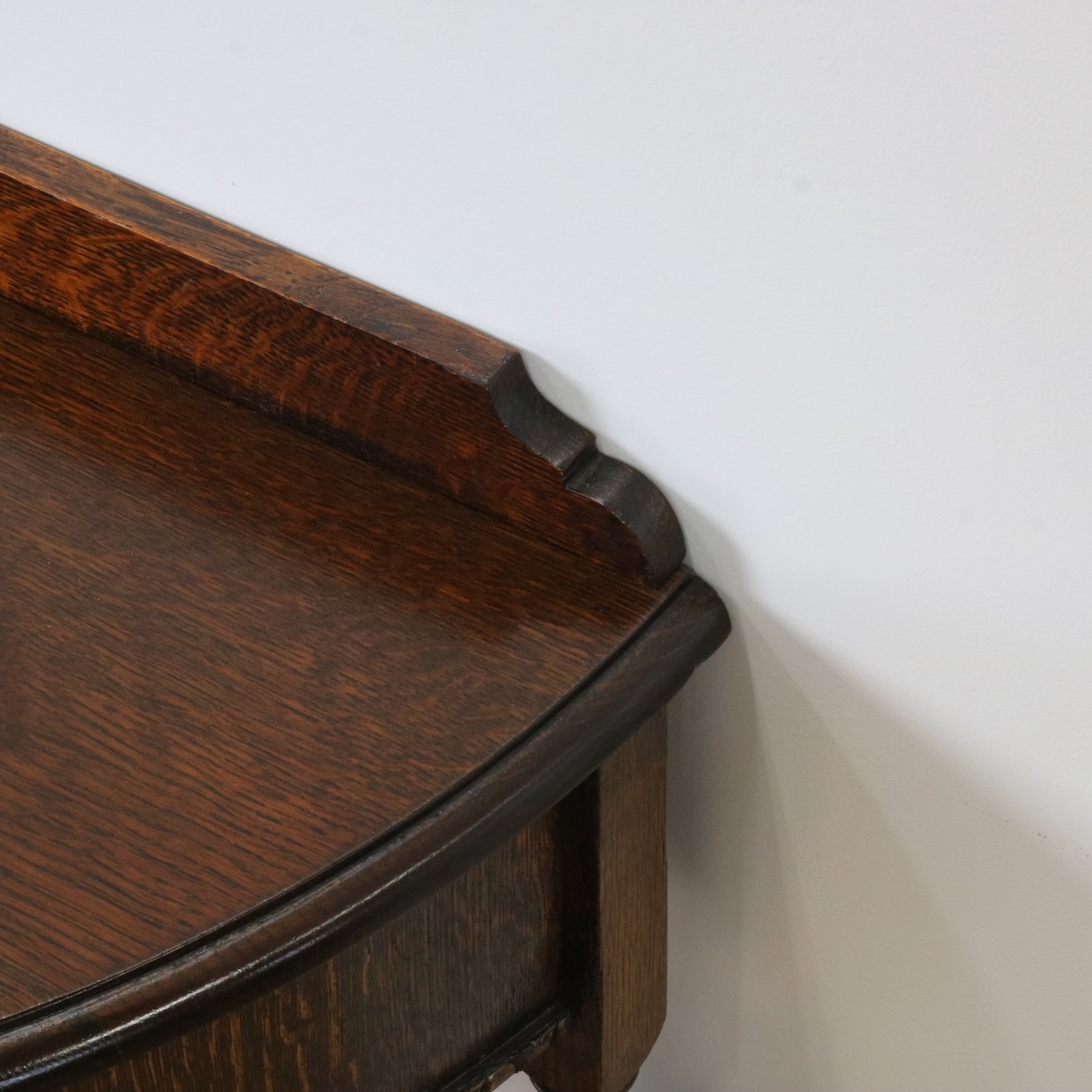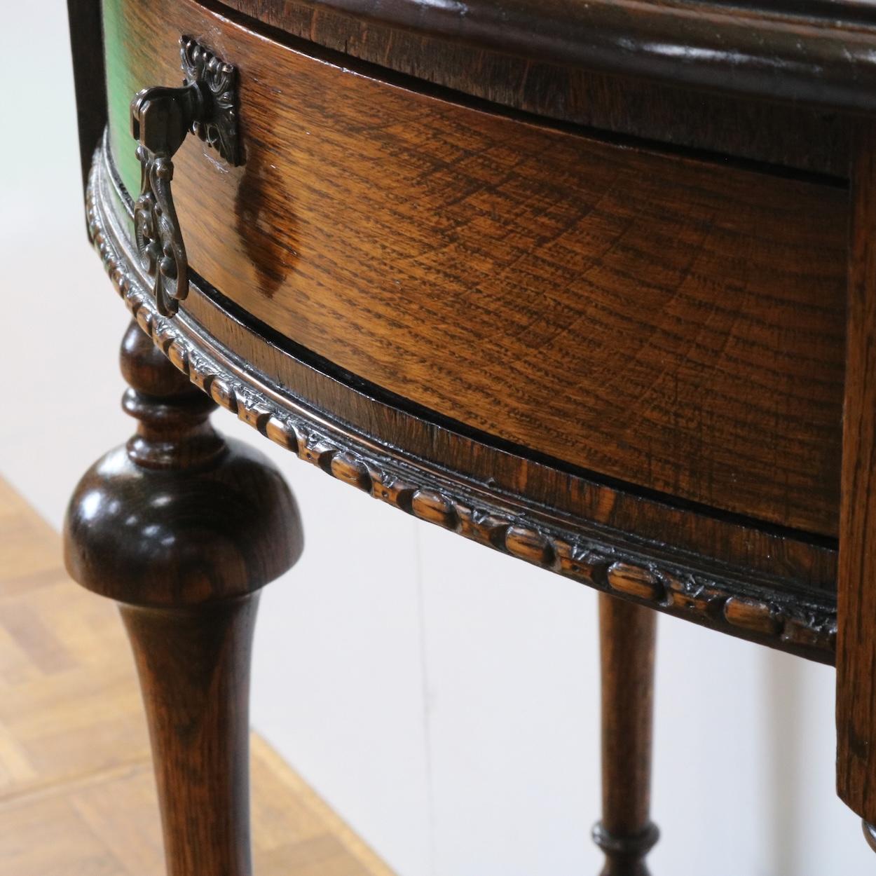 オークの豊かな木目が美しく、幕板のレリーフやハーフカップの脚部等、魅力あふれるひと品。