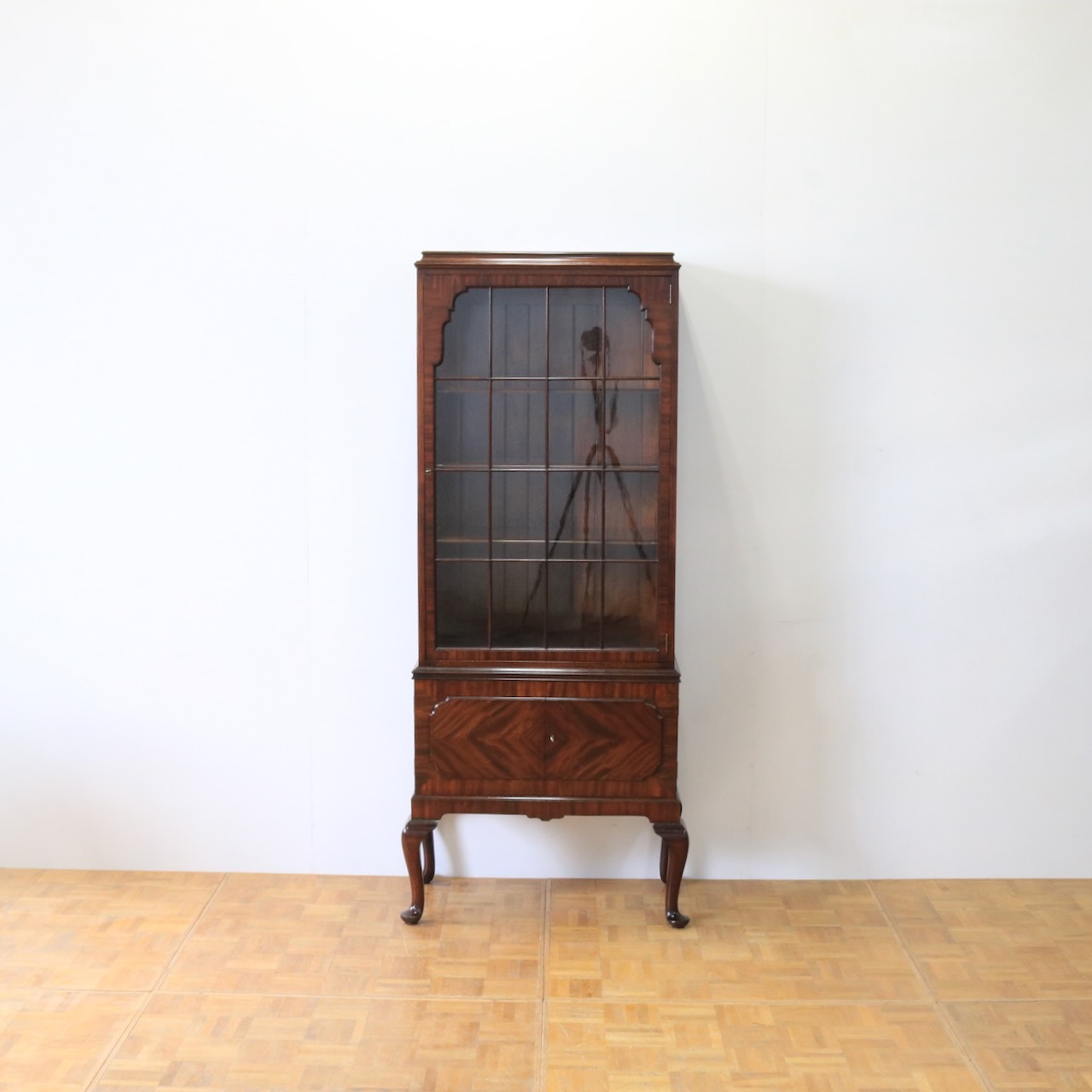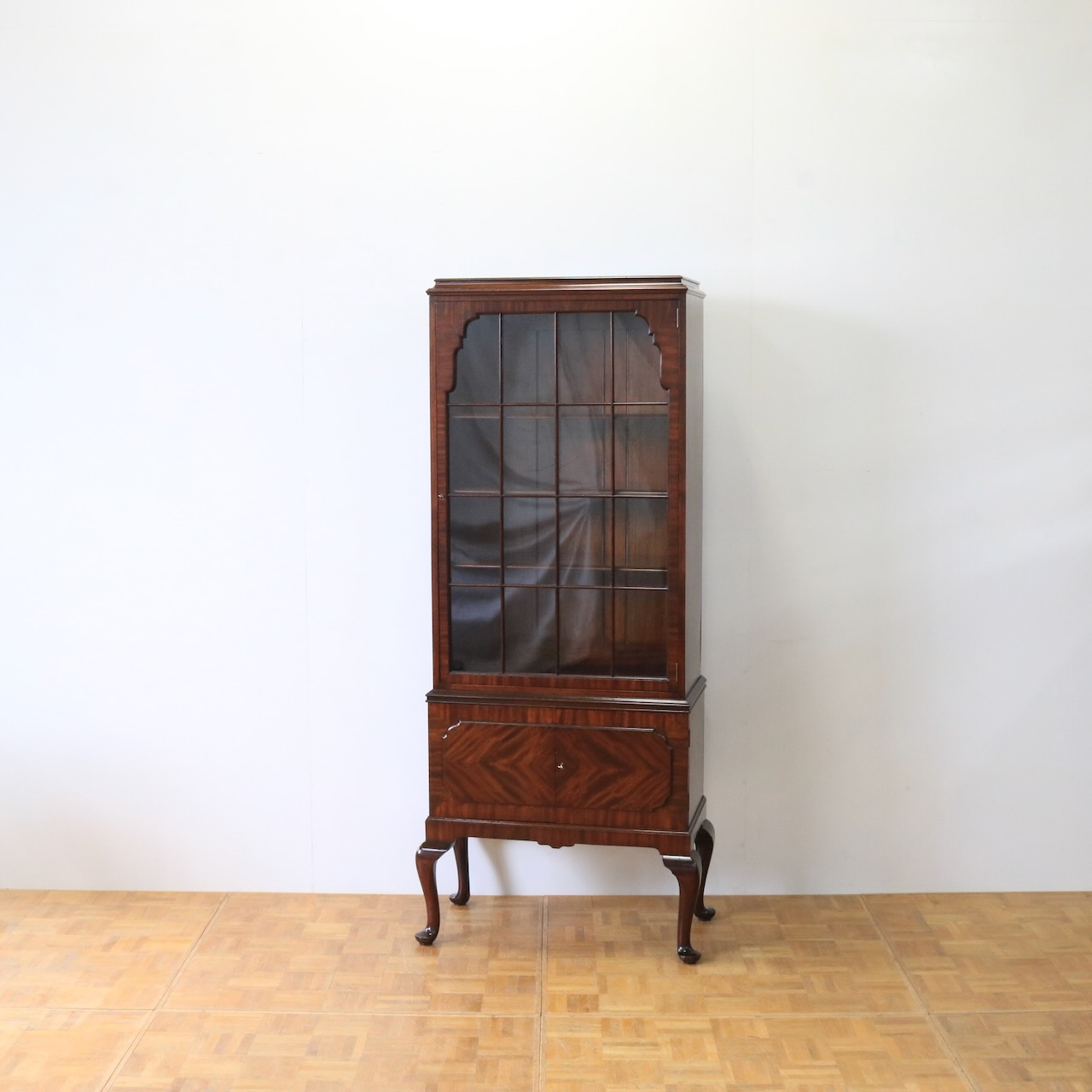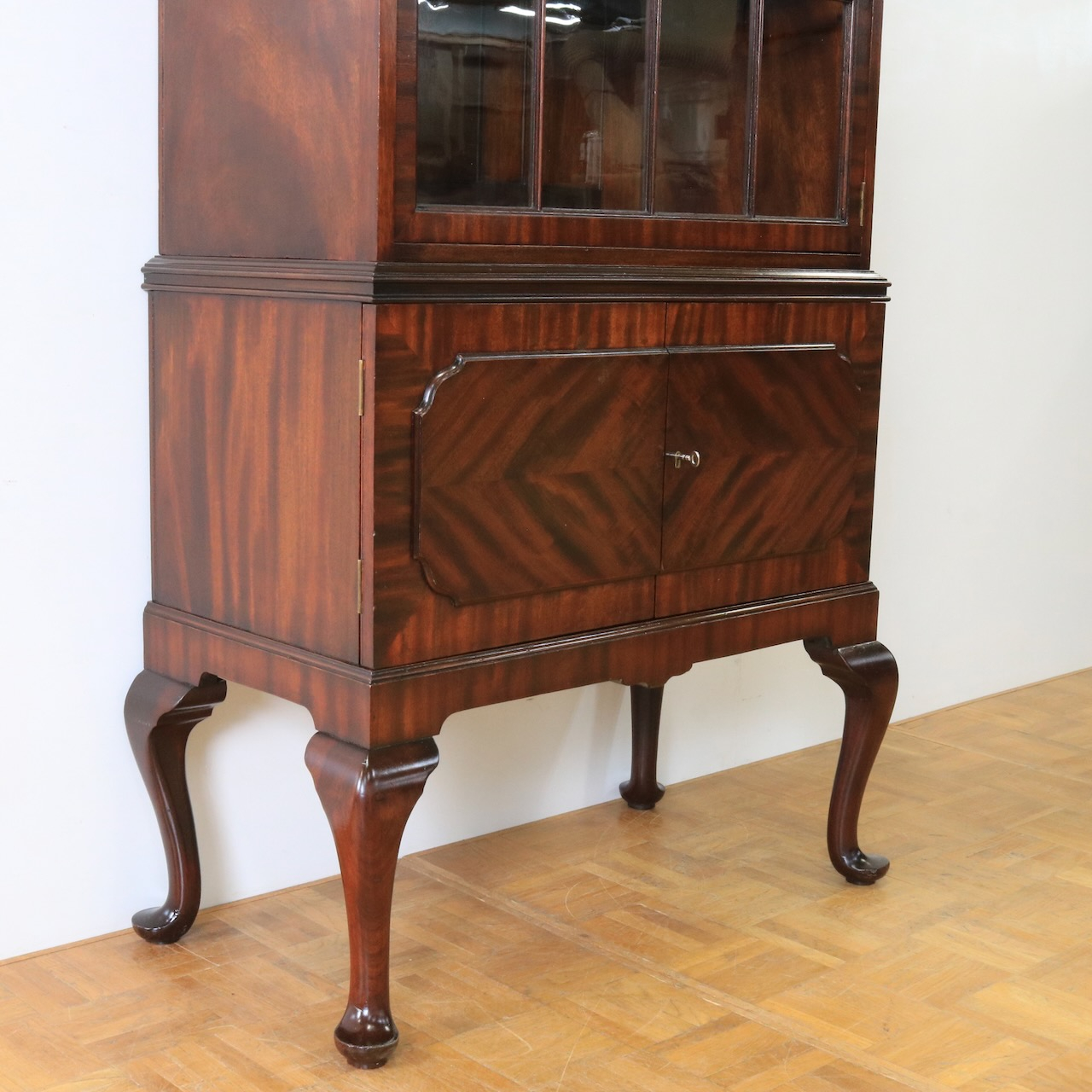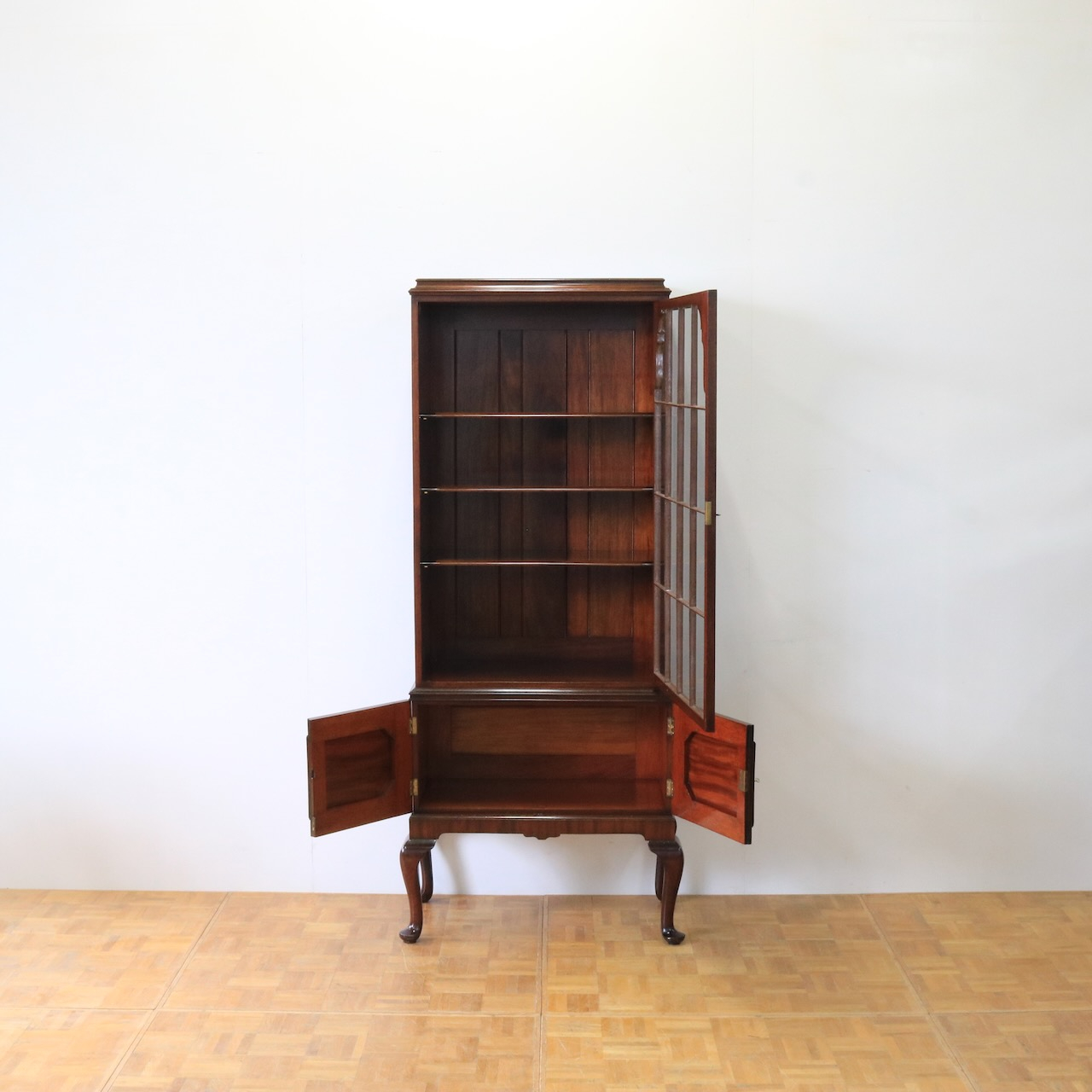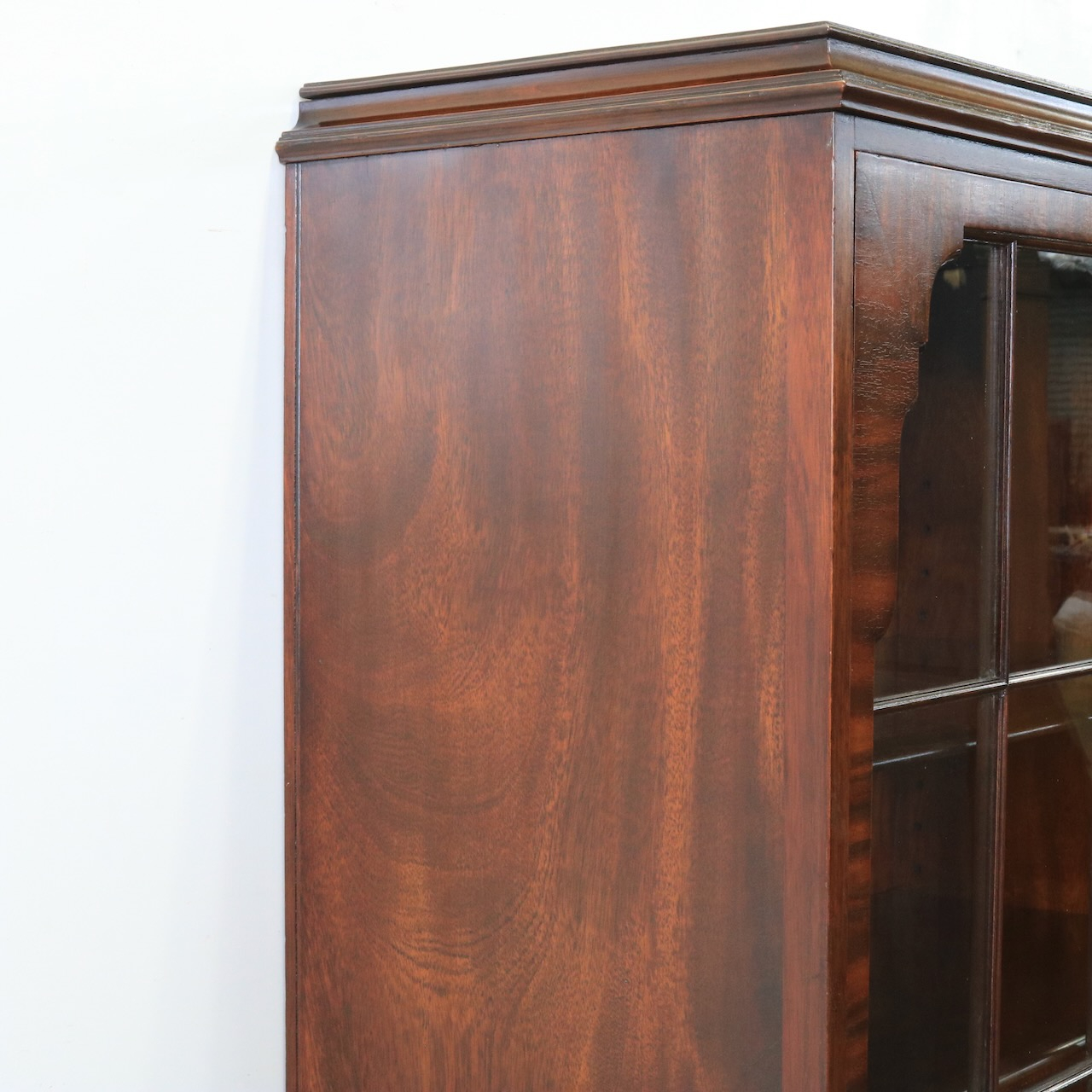 配送料の目安 ▶︎1930年代、マホガニーのブックケース。マホガニーの深みのある杢目が現れ、均整の取れた木桟の扉が美しいデザイン。本棚としてはもちろんのこと、飾り棚としても活躍します。