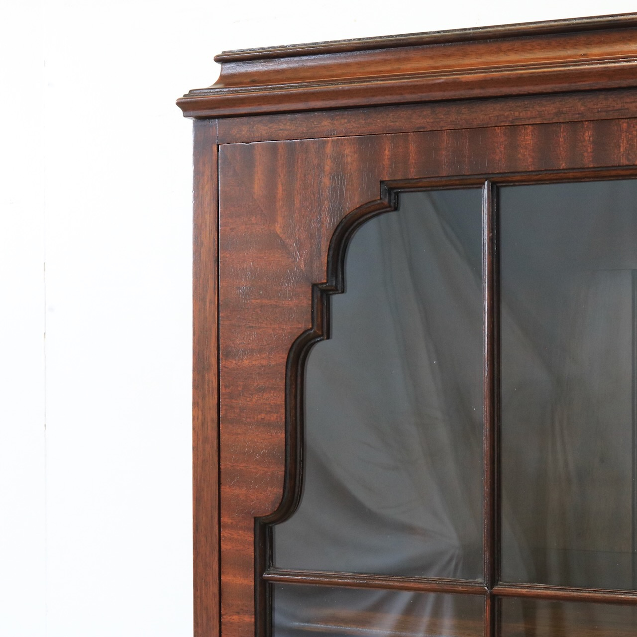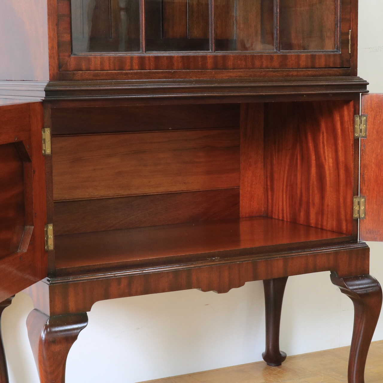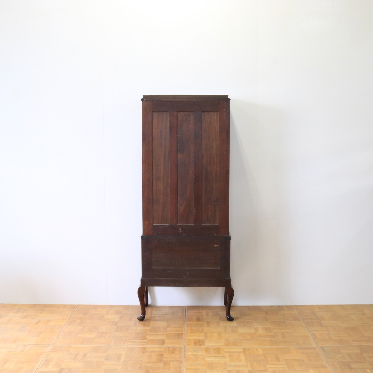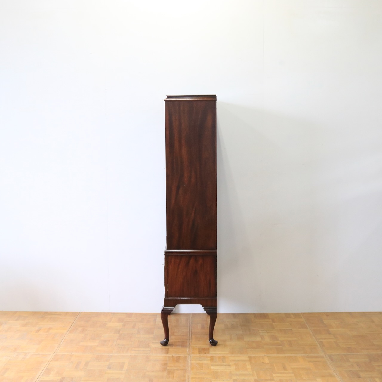 配送料の目安 ▶︎1930年代、マホガニーのブックケース。マホガニーの深みのある杢目が現れ、均整の取れた木桟の扉が美しいデザイン。本棚としてはもちろんのこと、飾り棚としても活躍します。