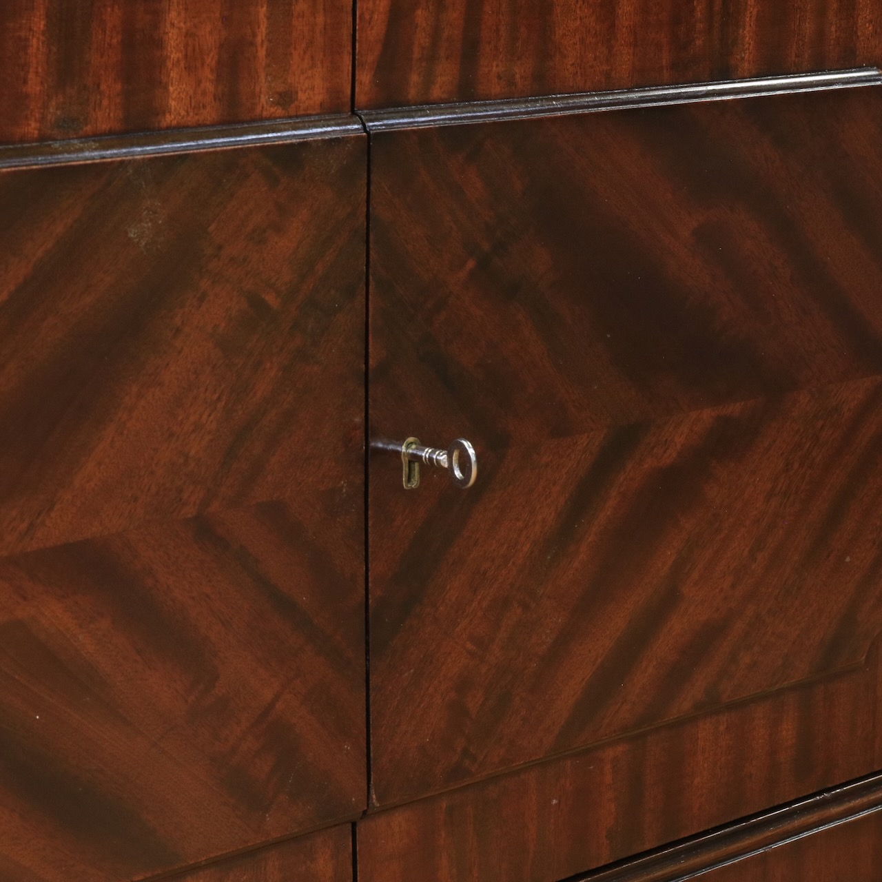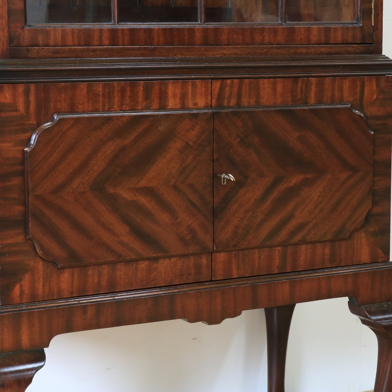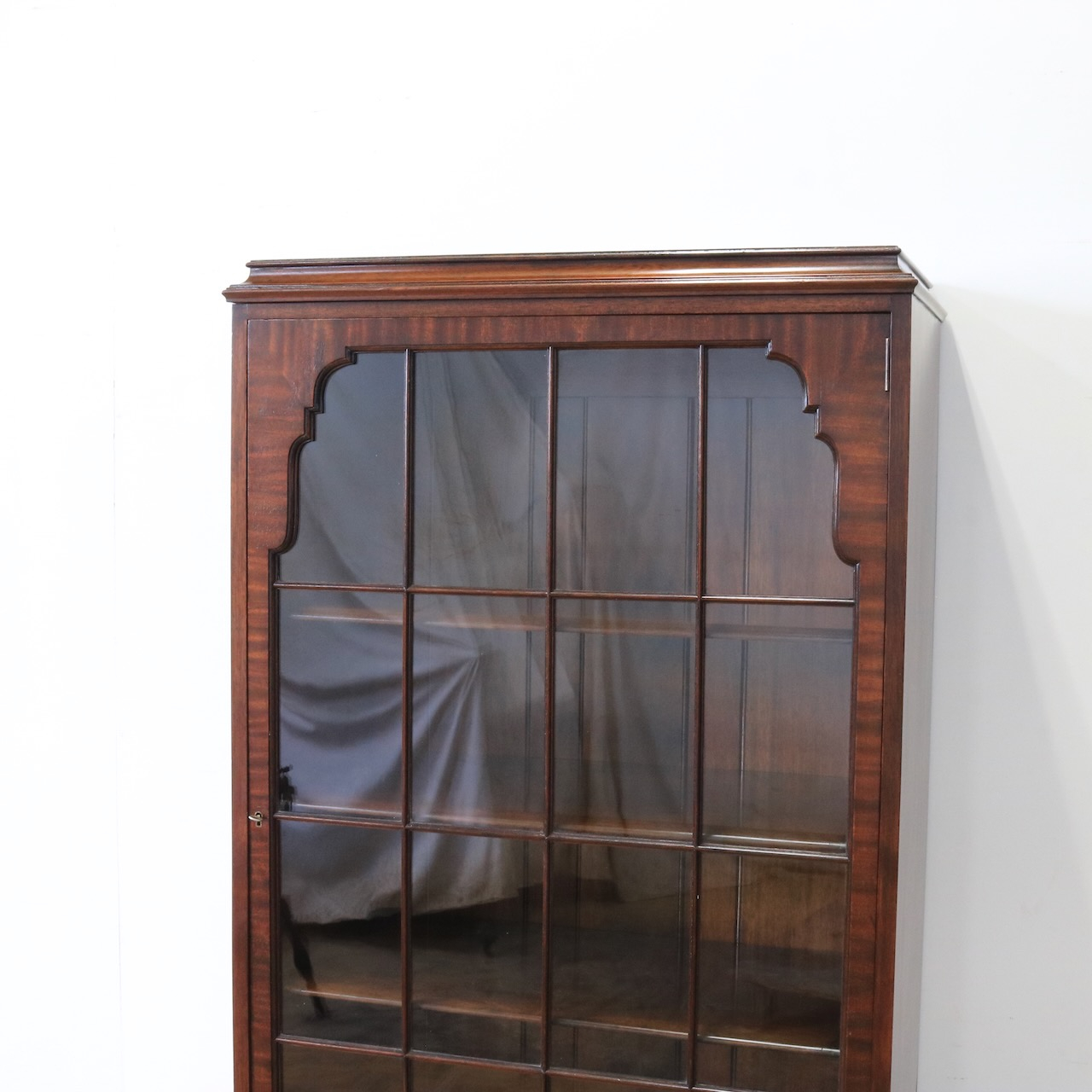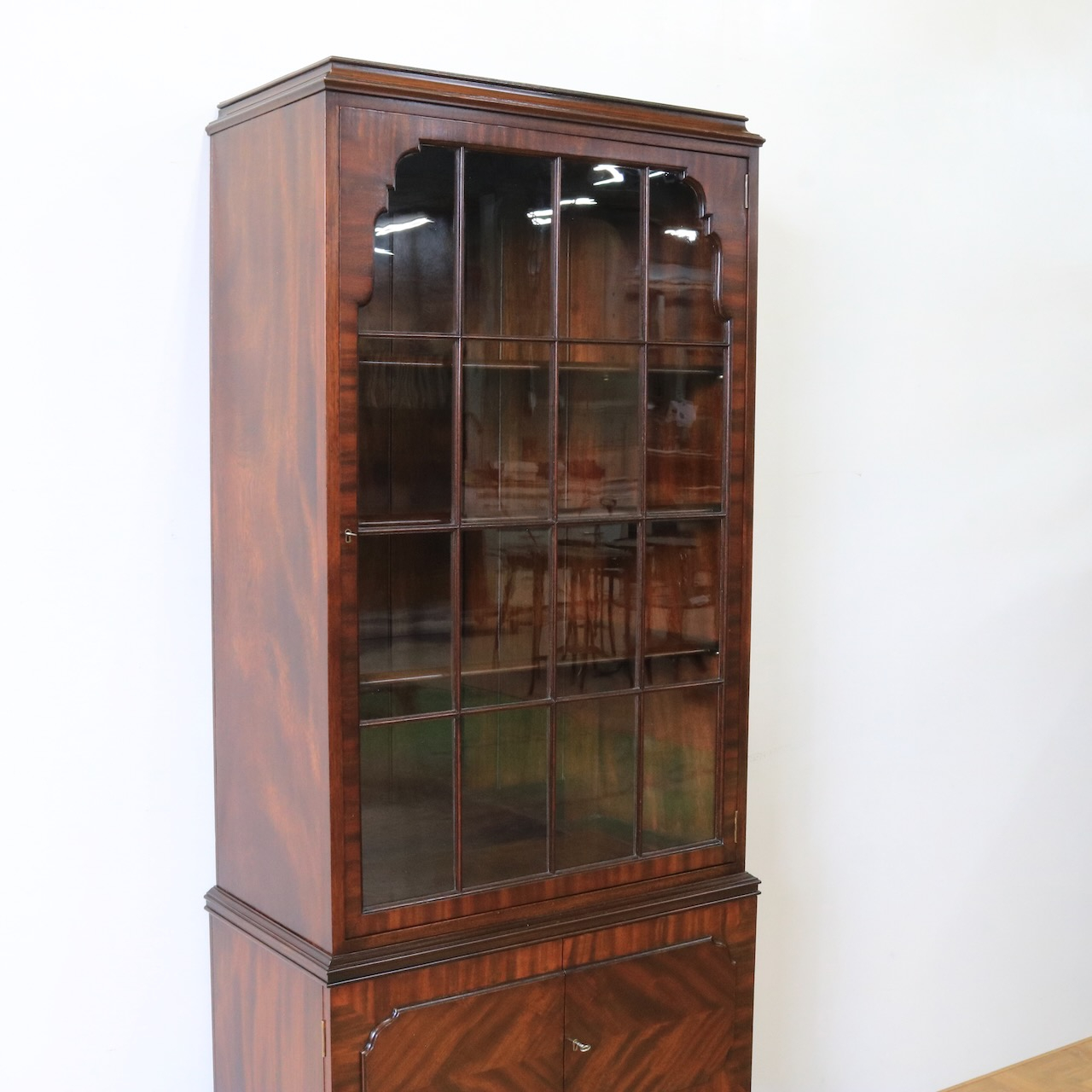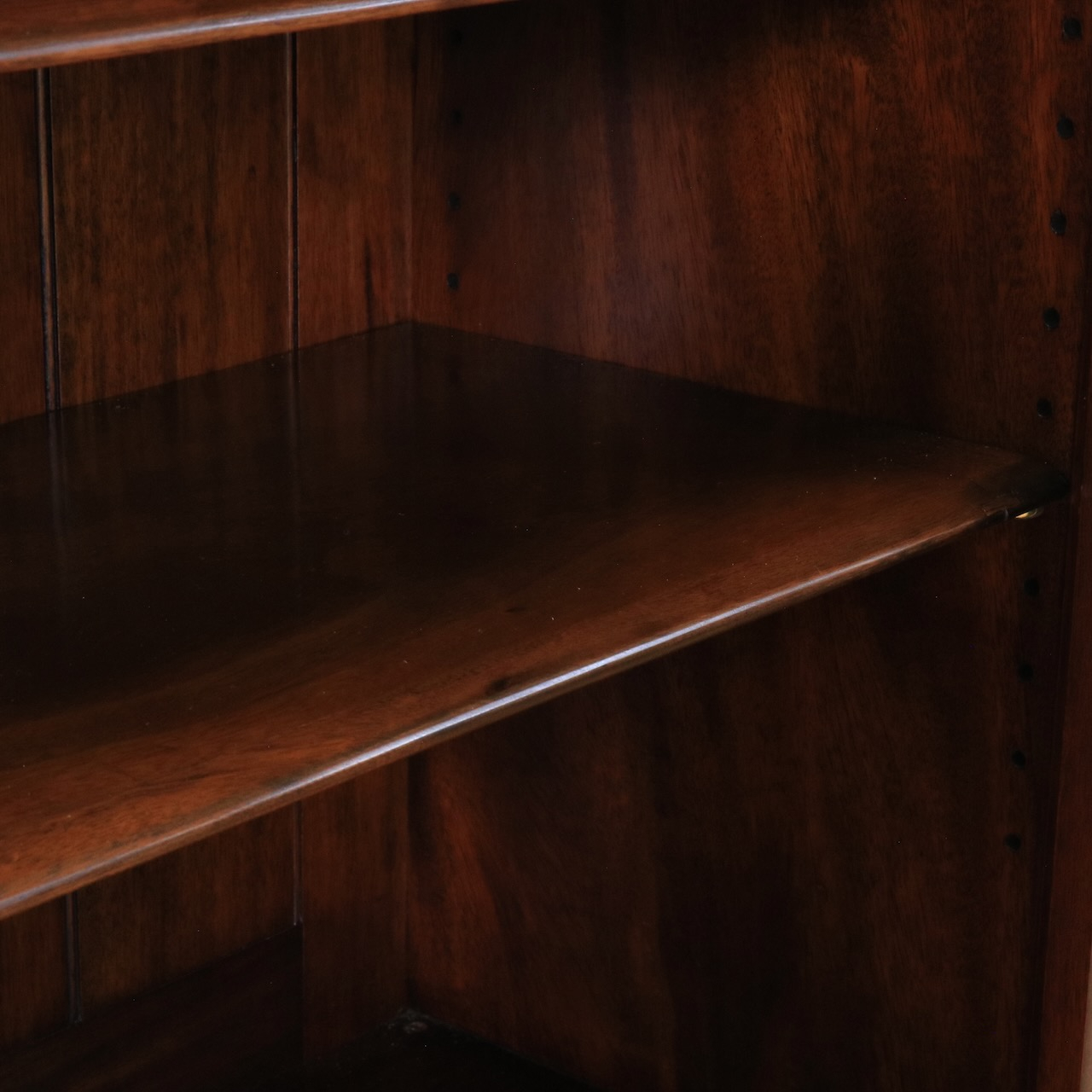配送料の目安 ▶︎1930年代、マホガニーのブックケース。マホガニーの深みのある杢目が現れ、均整の取れた木桟の扉が美しいデザイン。本棚としてはもちろんのこと、飾り棚としても活躍します。