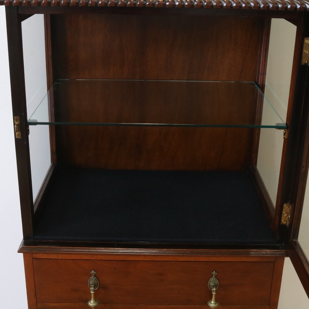 ガラスケース内はガラス板で二段に分かれています。