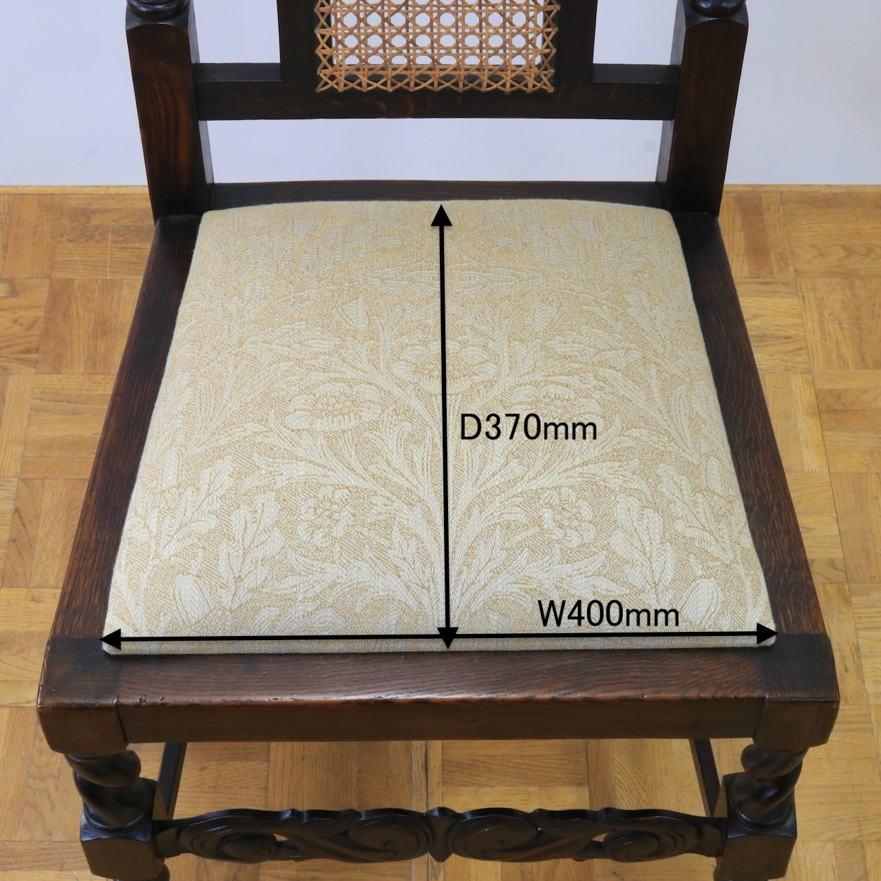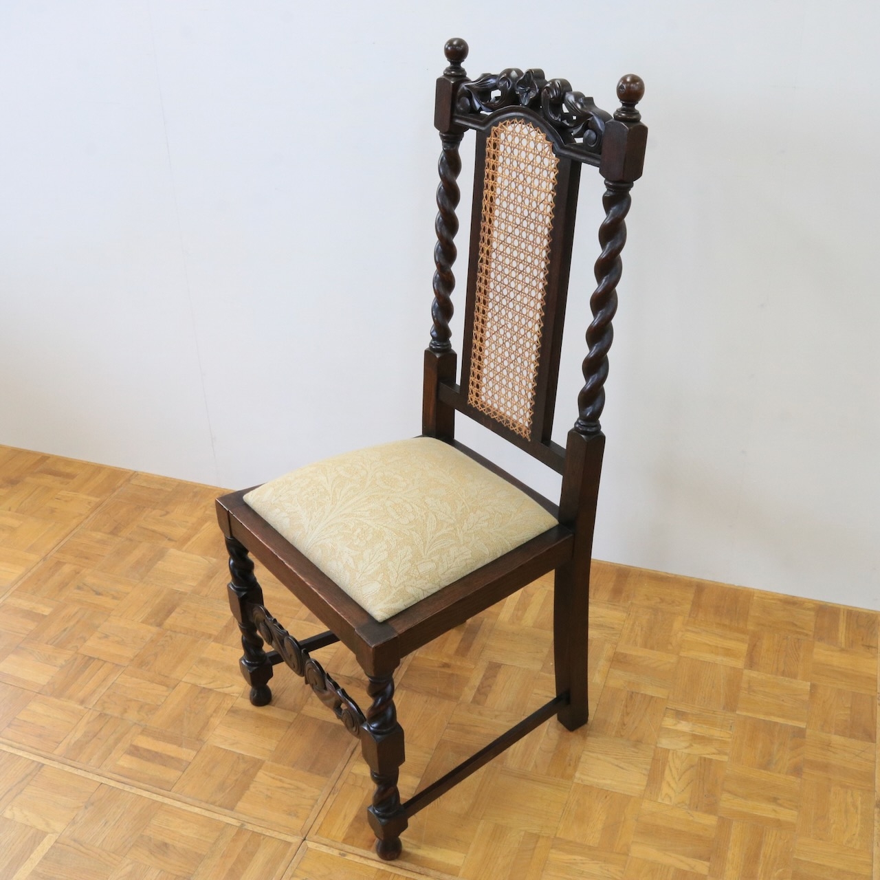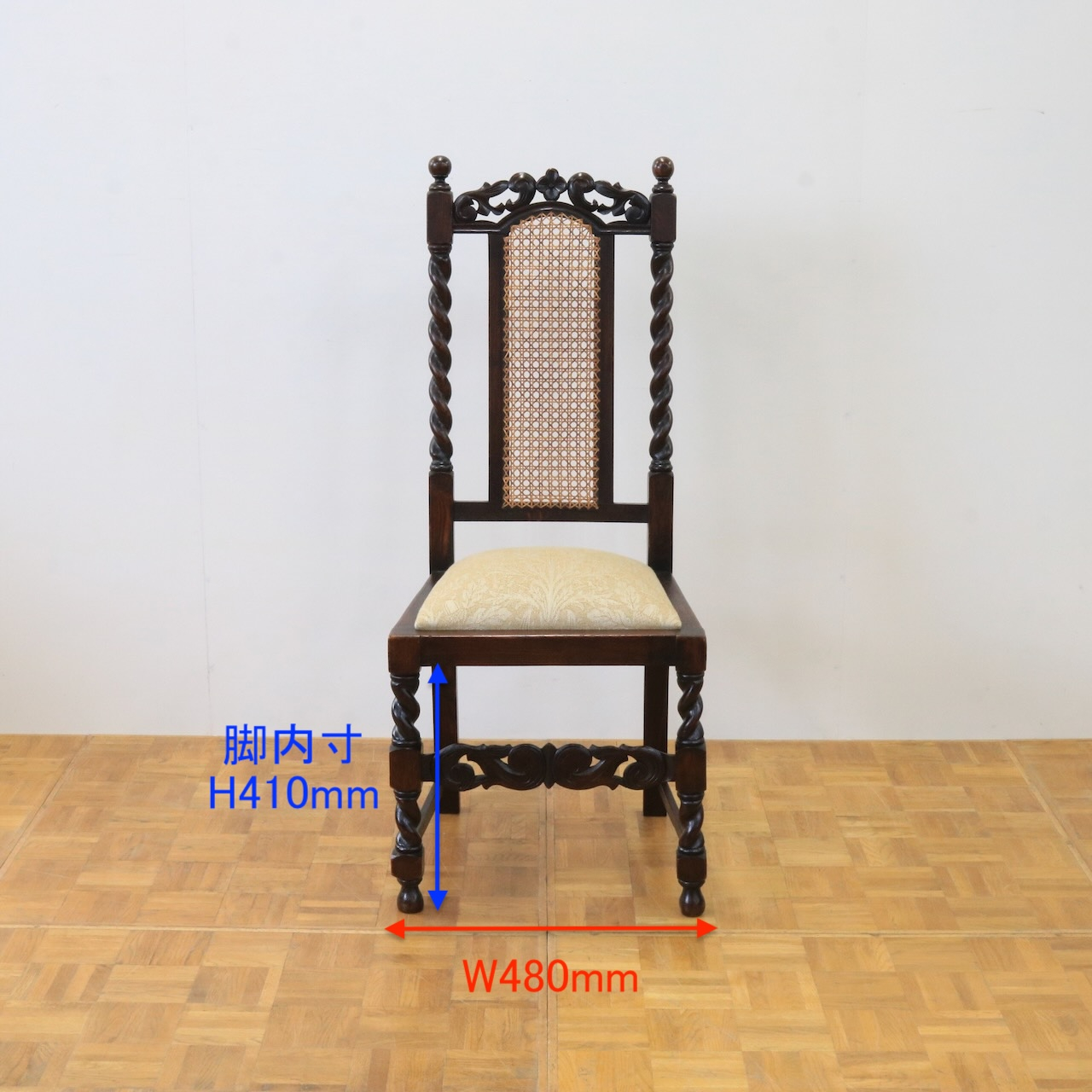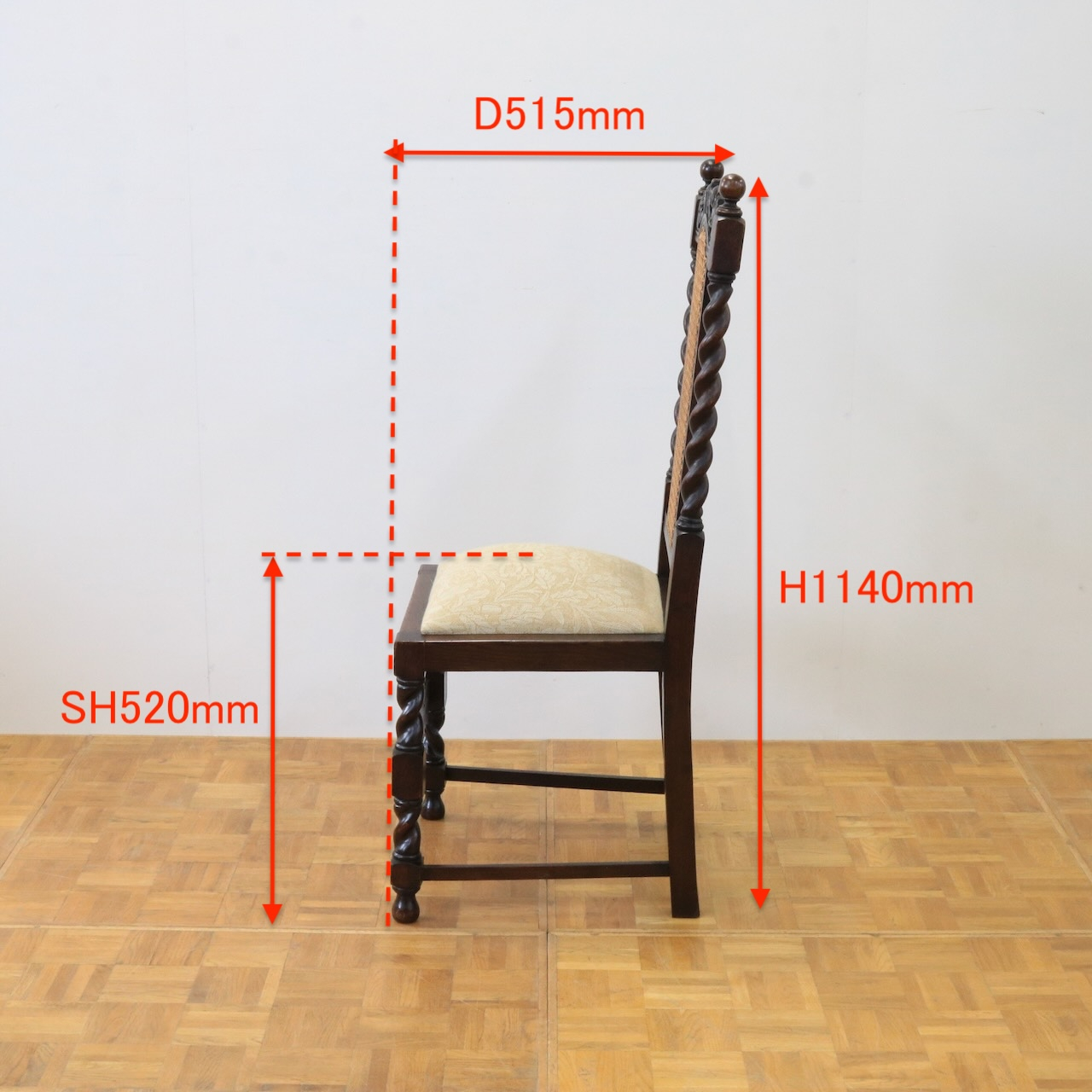 配送料の目安 ▶︎ハイバックのオークチェアー。トップの植物とスクロールのモチーフ、サイドのバーリーシュガーツイストなど手が込んだ意匠に重厚感のある佇まいに惹かれます。