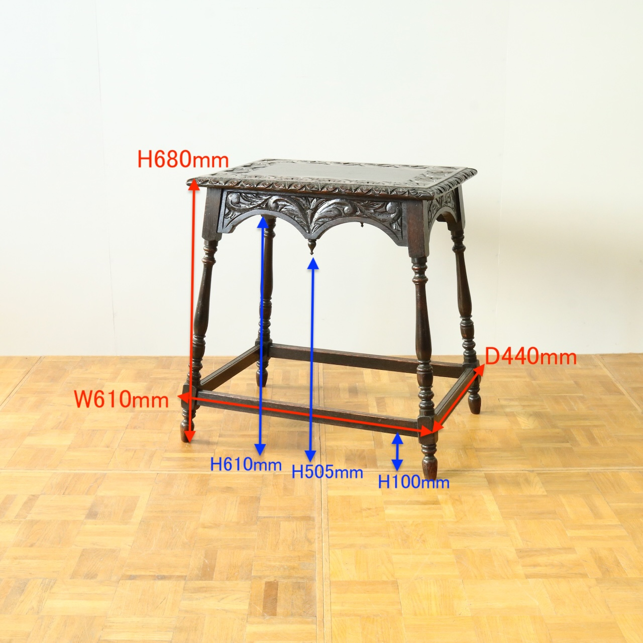 天板に施されたルネットや幕板のレリーフがアンティークらしい重厚感を感じさせます。