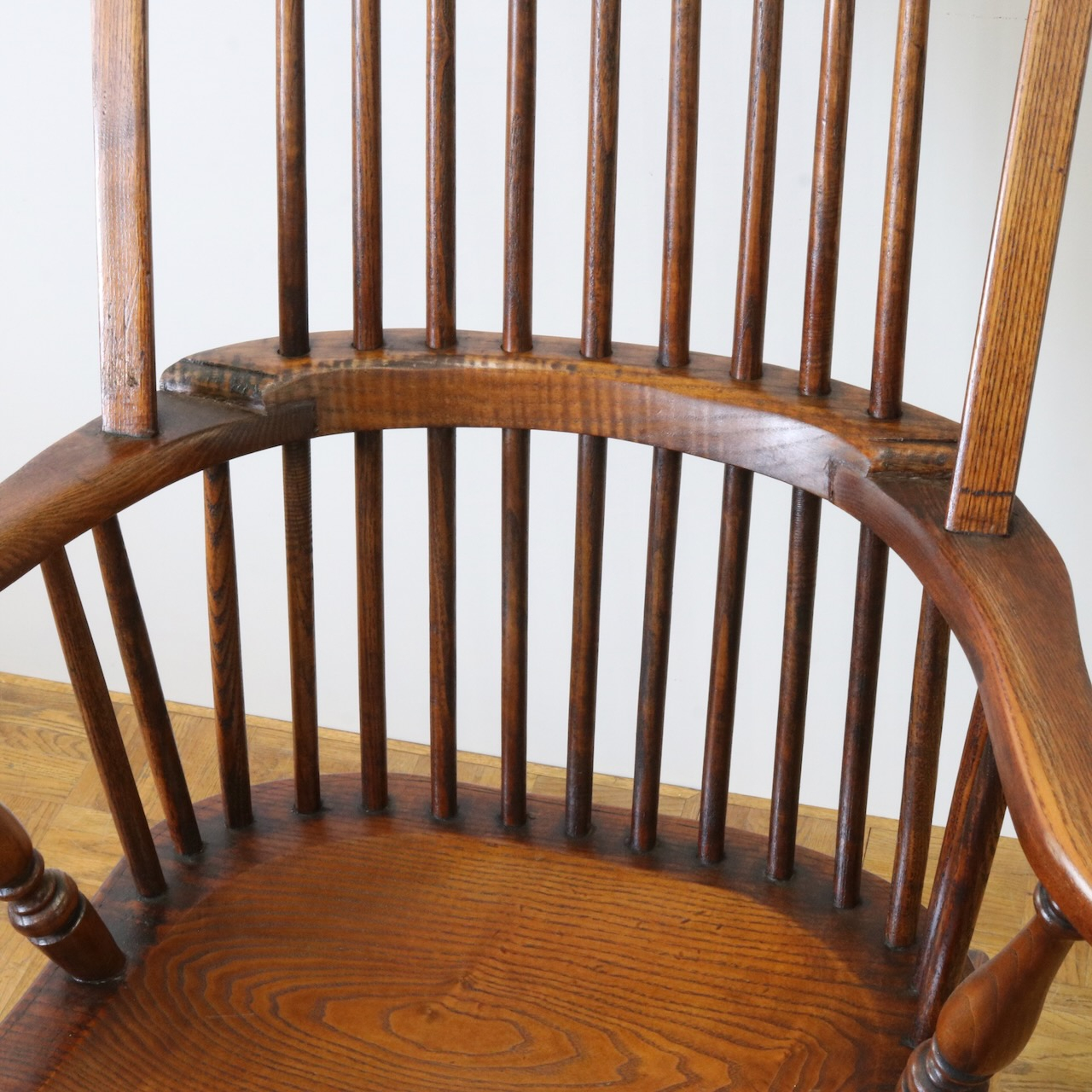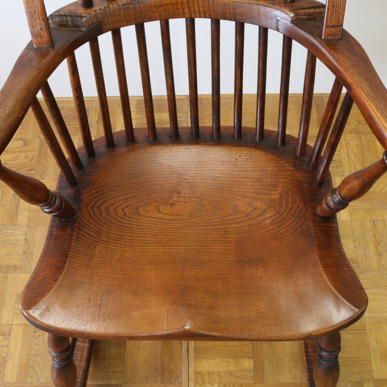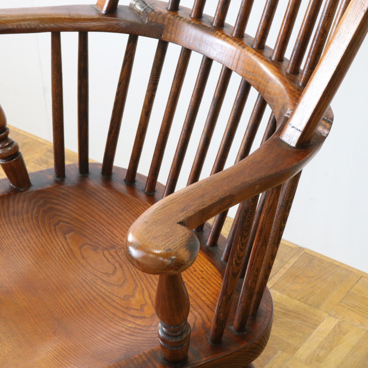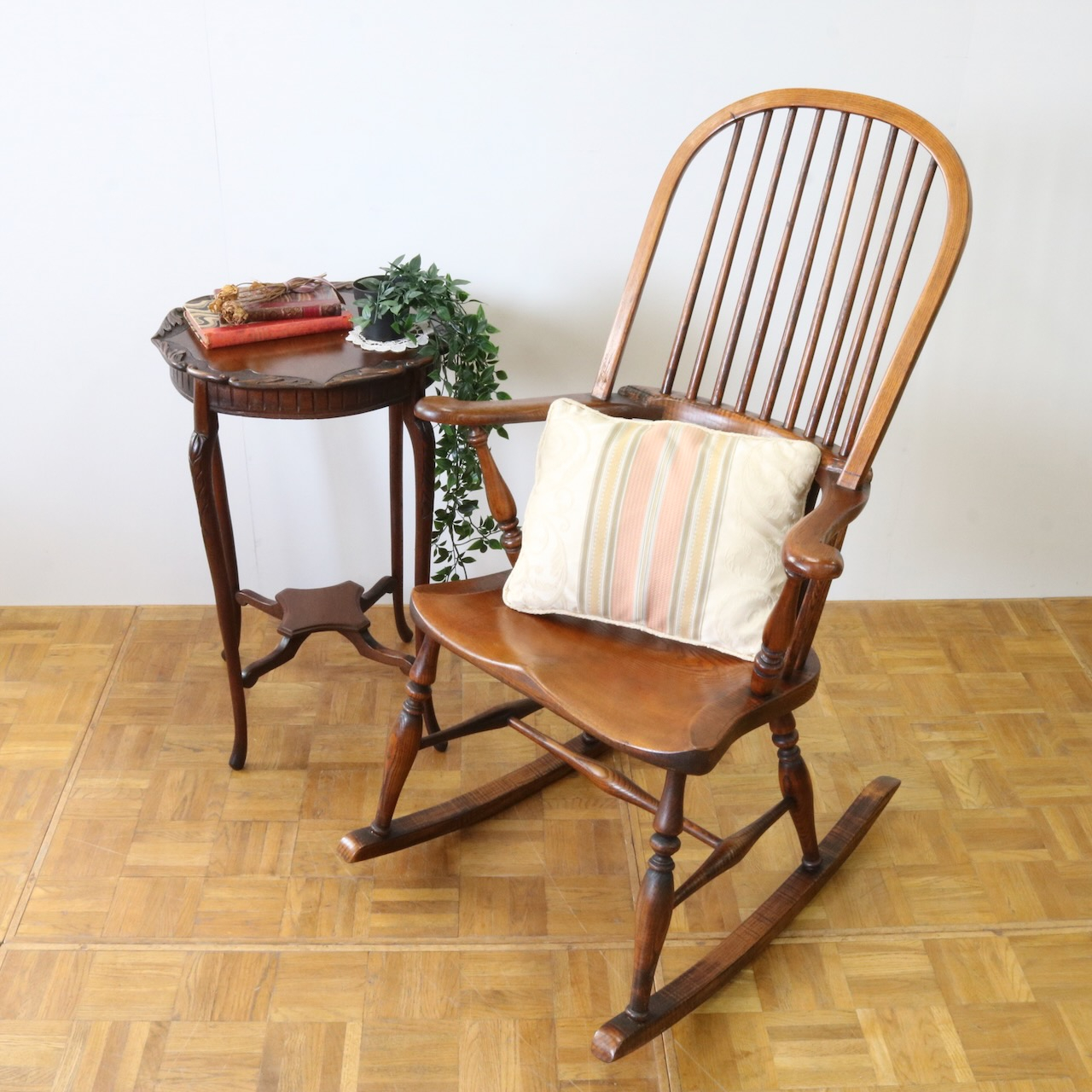 配送料の目安 ▶︎1960年代、ビーチ材のロッキングチェアー。ブレードと呼ばれるカーブした脚の奥行きも短く、全体的にコンパクトなサイズです。コームバックのデザインが目を惹くロッキングチェアーです。