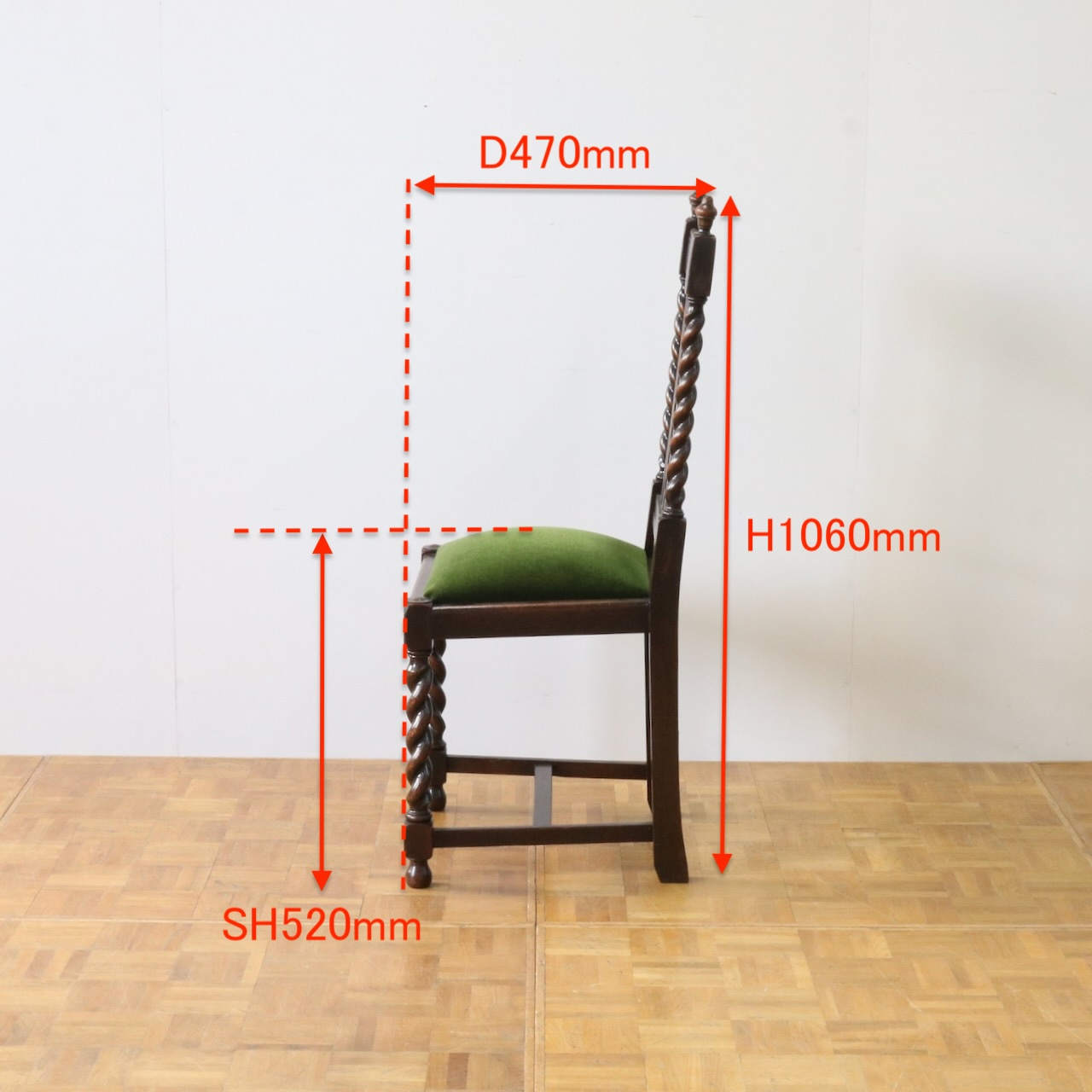 アンティークの定番デザイン、バーリーシュガーツイストがコラムと脚部に用いられ、クラシカルで重厚な雰囲気です。