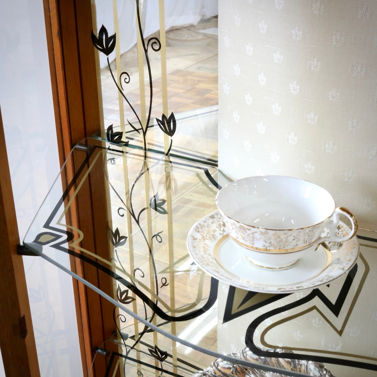 ガラスの棚板×2枚、左右背ガラスはオリジナルとなります。