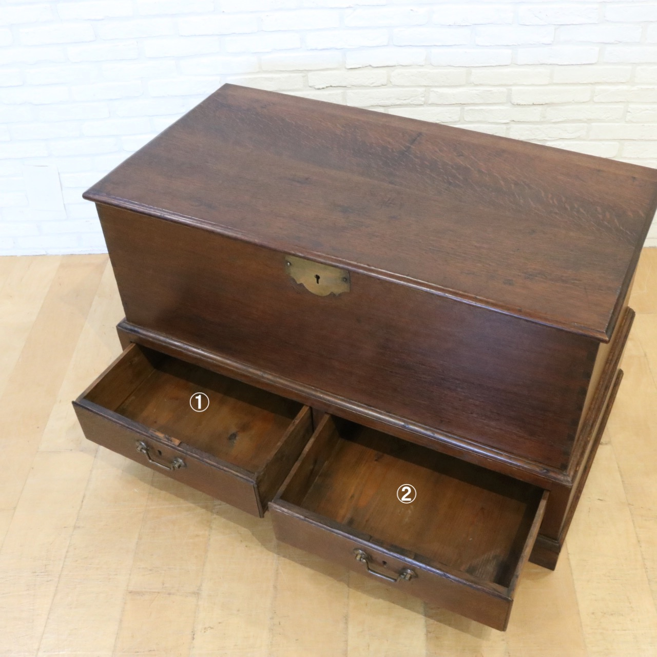 配送料の目安 ▶︎1800年代、オーク材のブランケットチェスト。大変古く趣のある一点です。