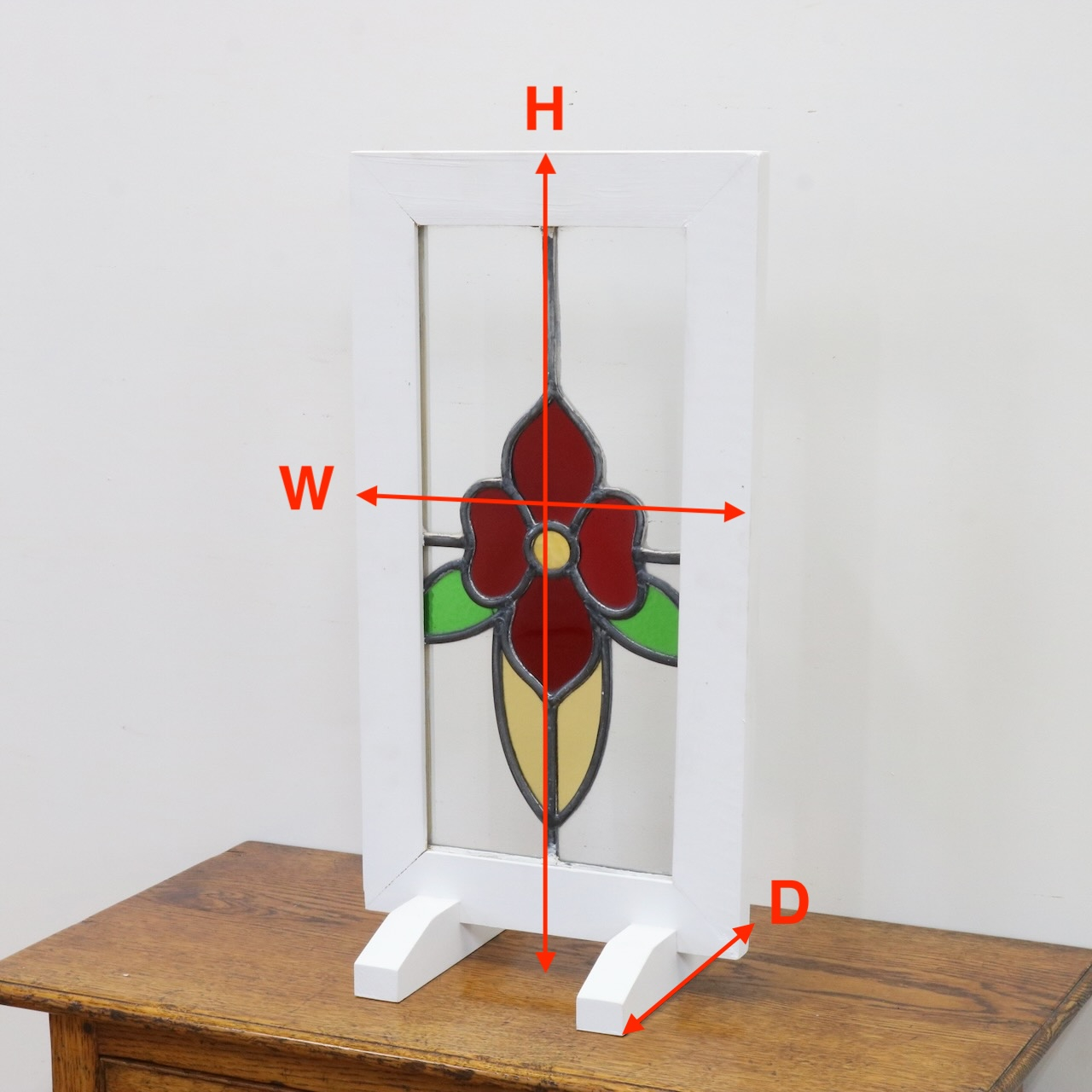 1930年代のステンドグラスをスタンド式に加工し、スクリーンとしてお使いいただけるようにしました。日の光が入るところに置いてその輝きを楽しんだり、キッチンとダイニングルームの簡単な間仕切りや目隠しとして使ったり、さまざまな場所でお役立てください。