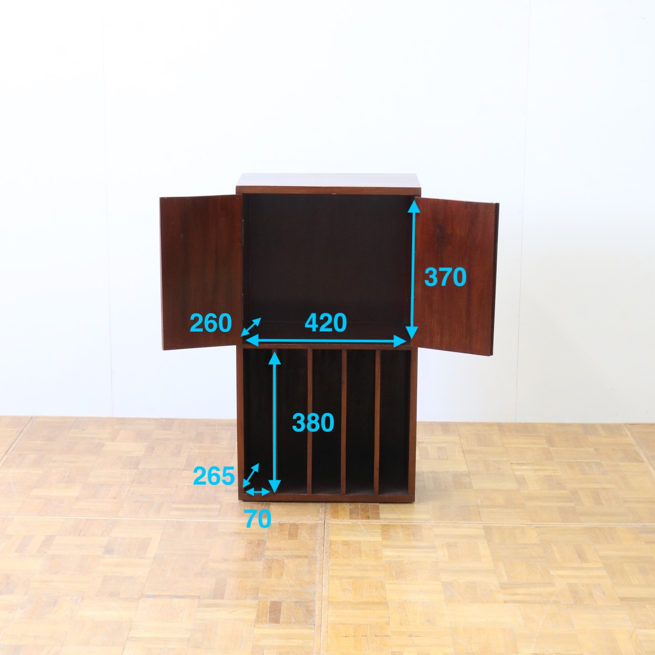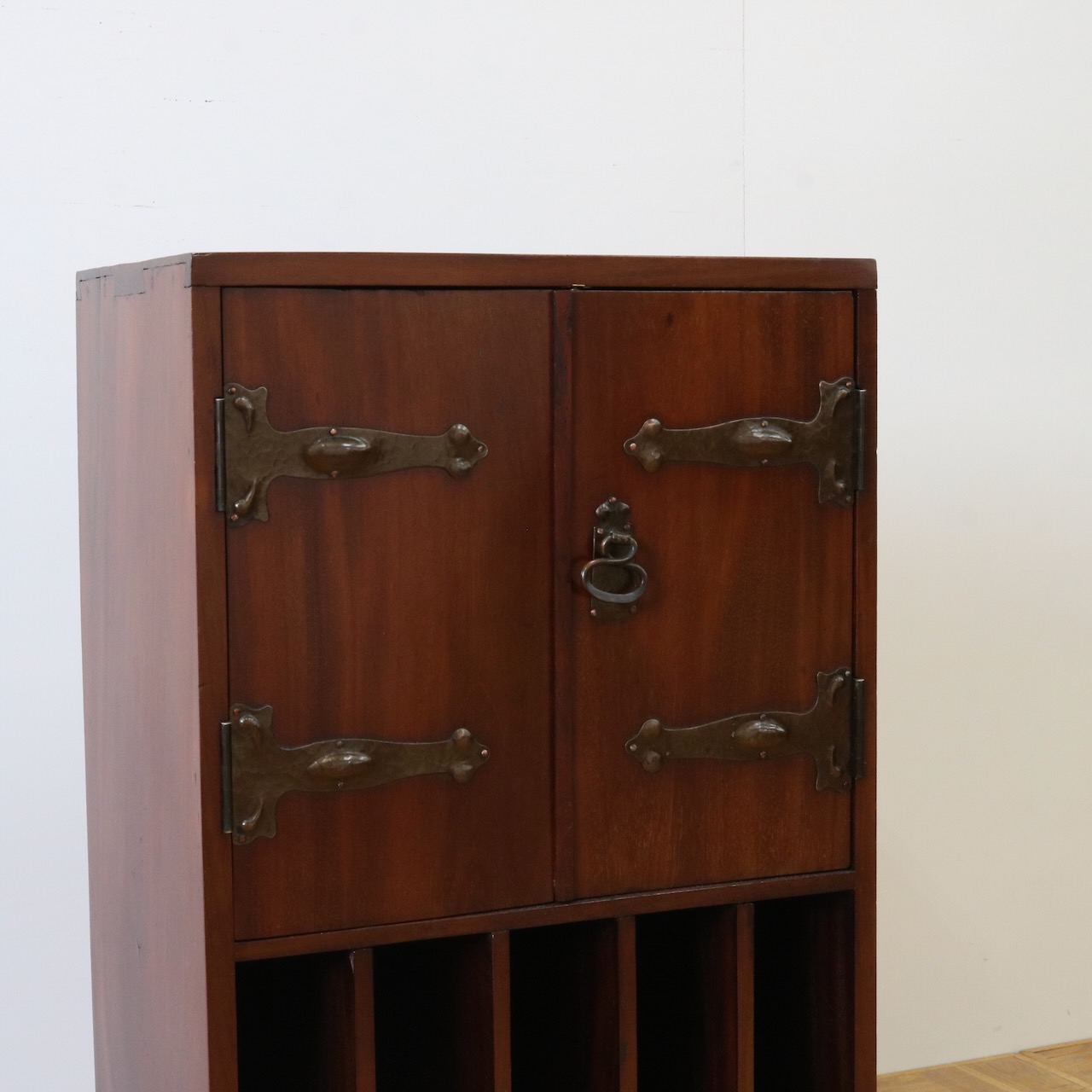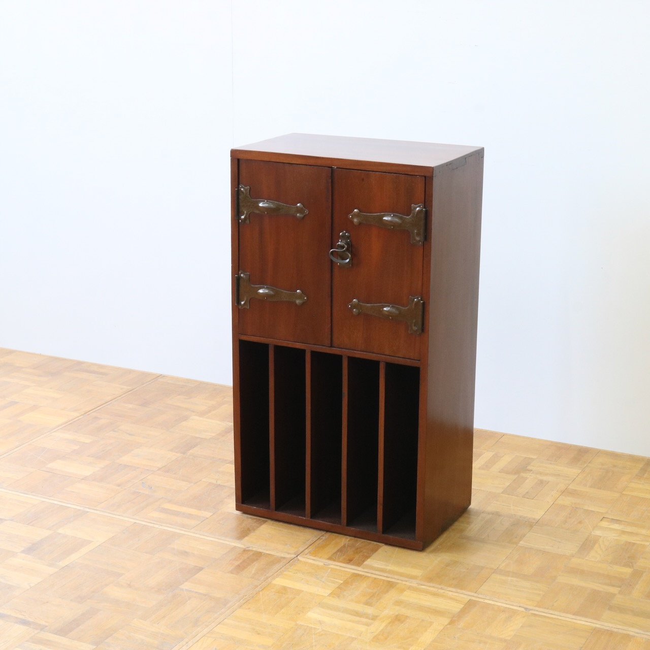 上部は板扉、下部は縦仕切りがあり細やかに区別して収納できるスペースがあり、