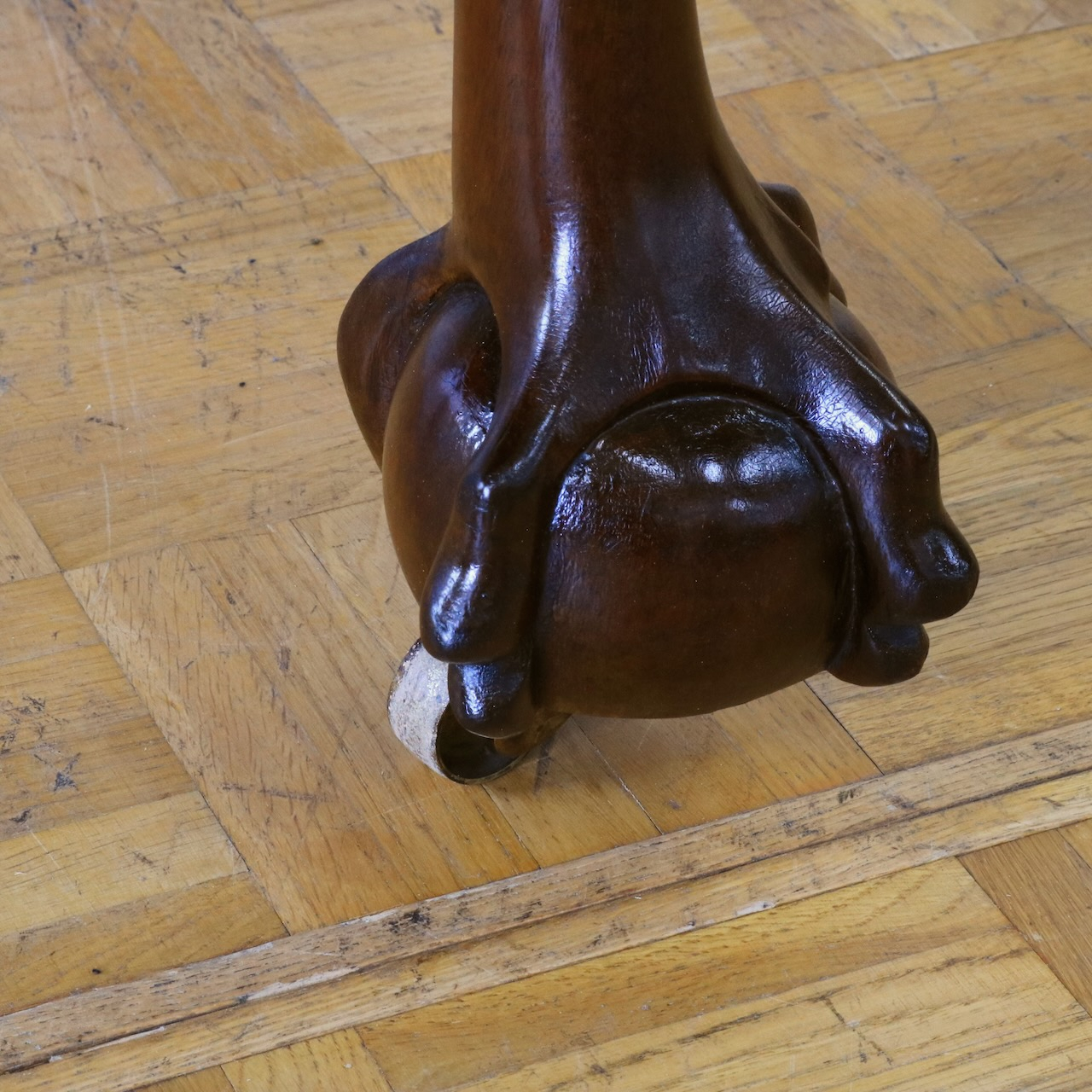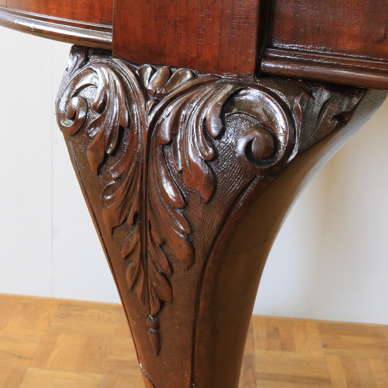 太く力強い脚の付け根部分には、アカンサスの葉の彫刻が施されています。