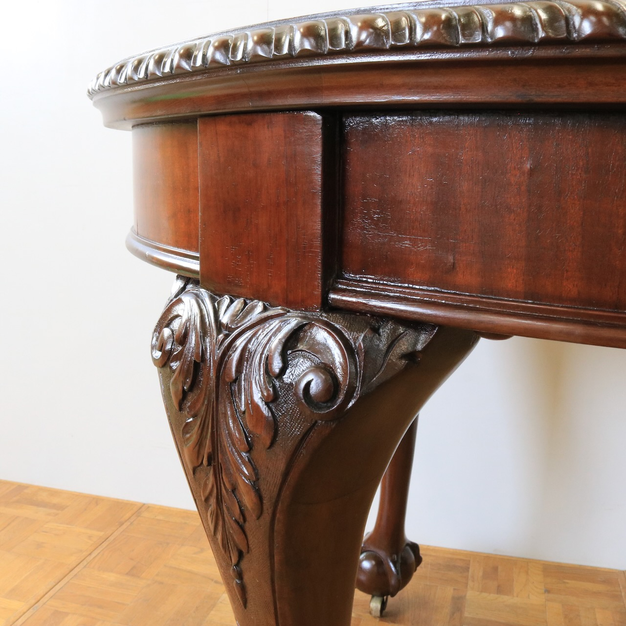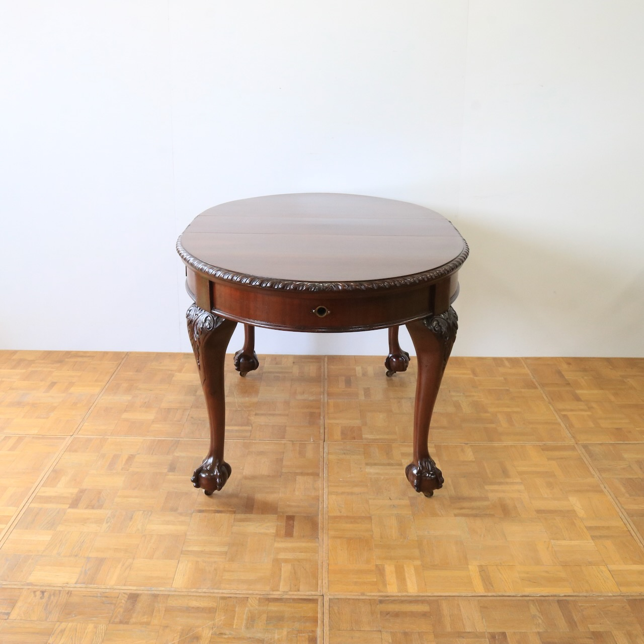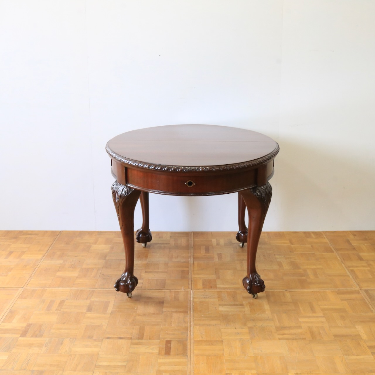 天板縁にはガドルーニングが施され、脚部はアンティークらしいボウル&クロウフィート、全体的にエレガントなデザインです。