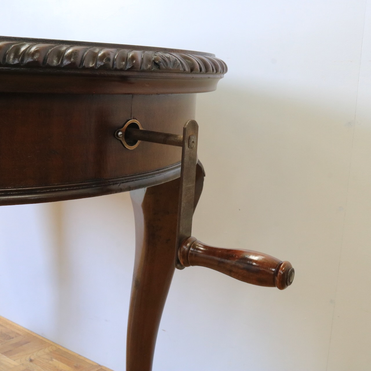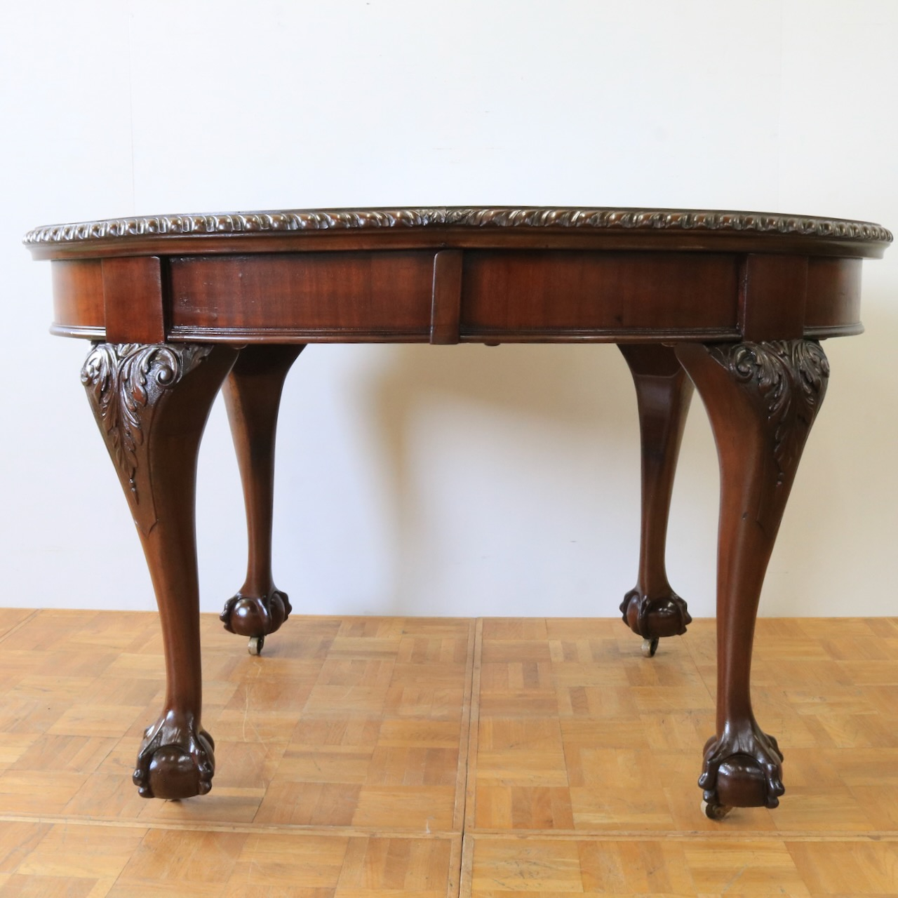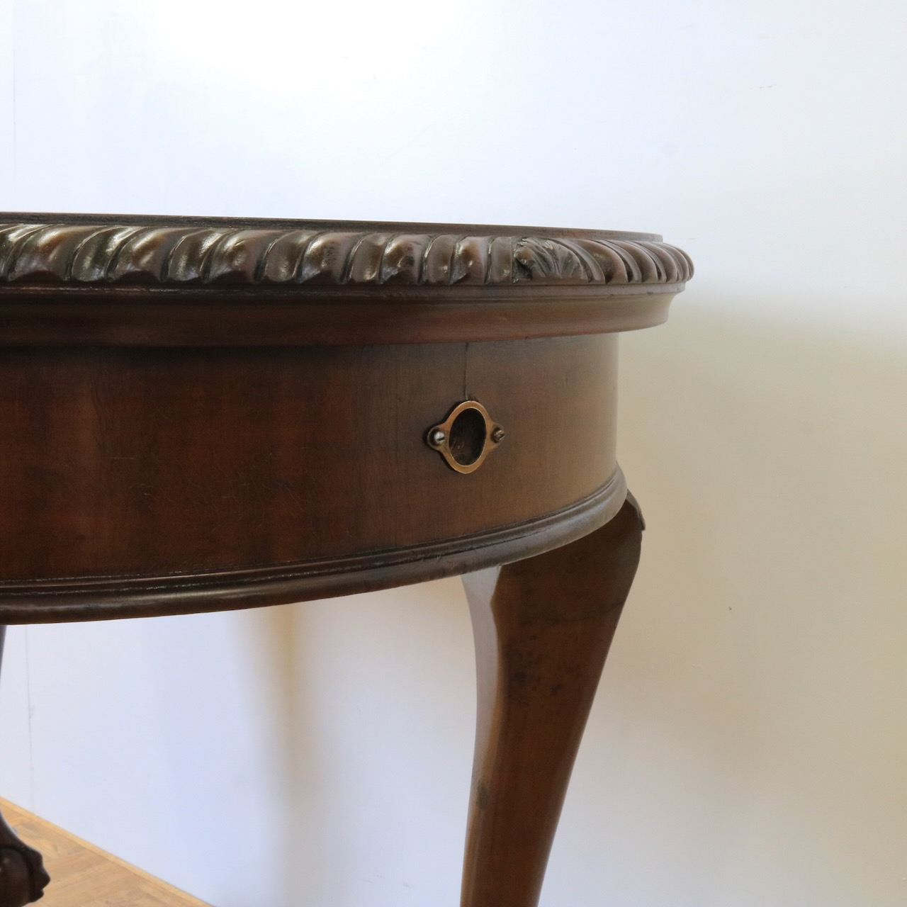 天板縁にはガドルーニングが施され、脚部はアンティークらしいボウル&クロウフィート、全体的にエレガントなデザインです。