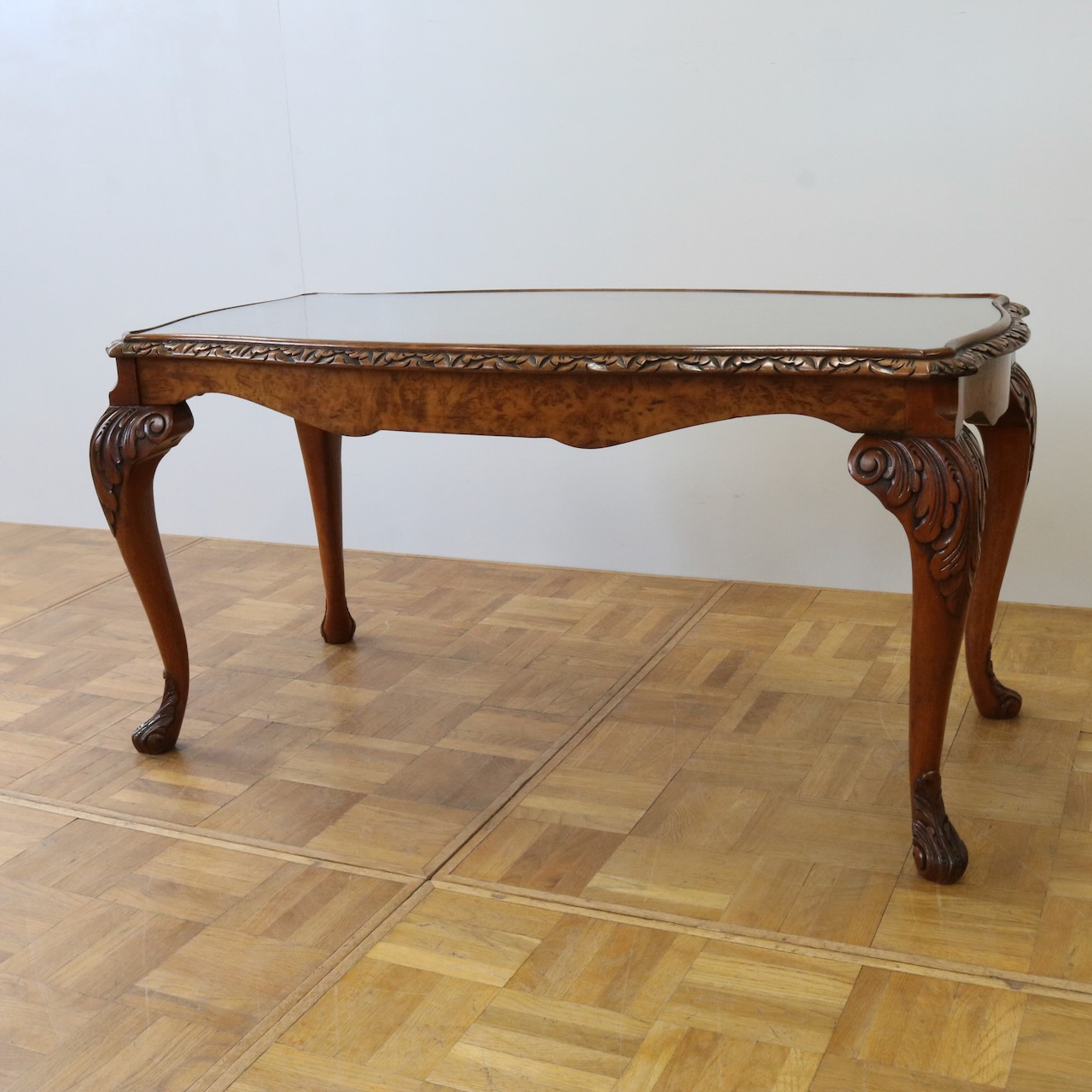配送料の目安 ▶︎1960年代、イギリス・ウォールナット材のヴィンテージ・コーヒーテーブル。ガラストップなので、ドリンクの入ったグラスやカップなどを気にせずに置けてご使用出来るタイプです。