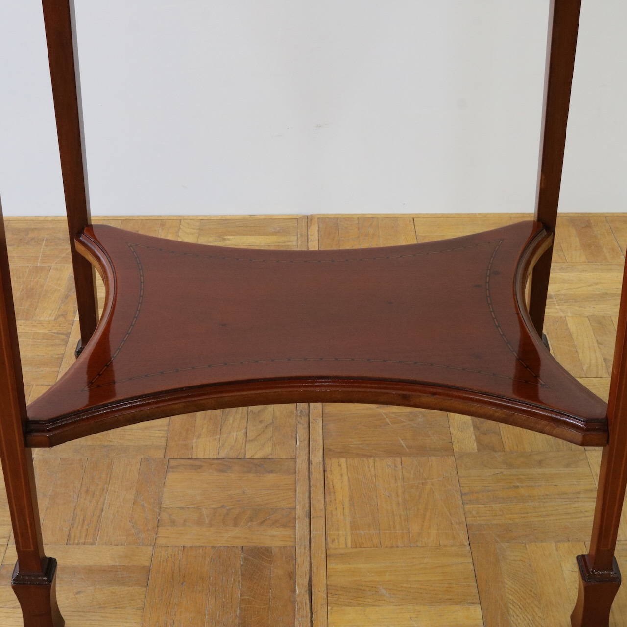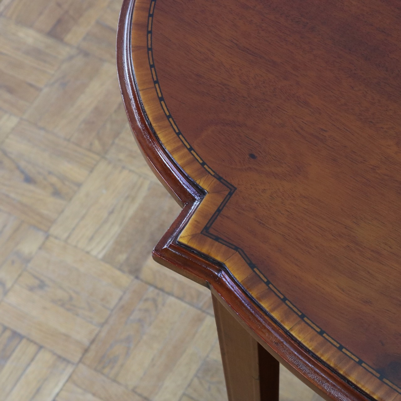 天板の中央と縁に施された繊細なインレイ装飾が大きな魅力です