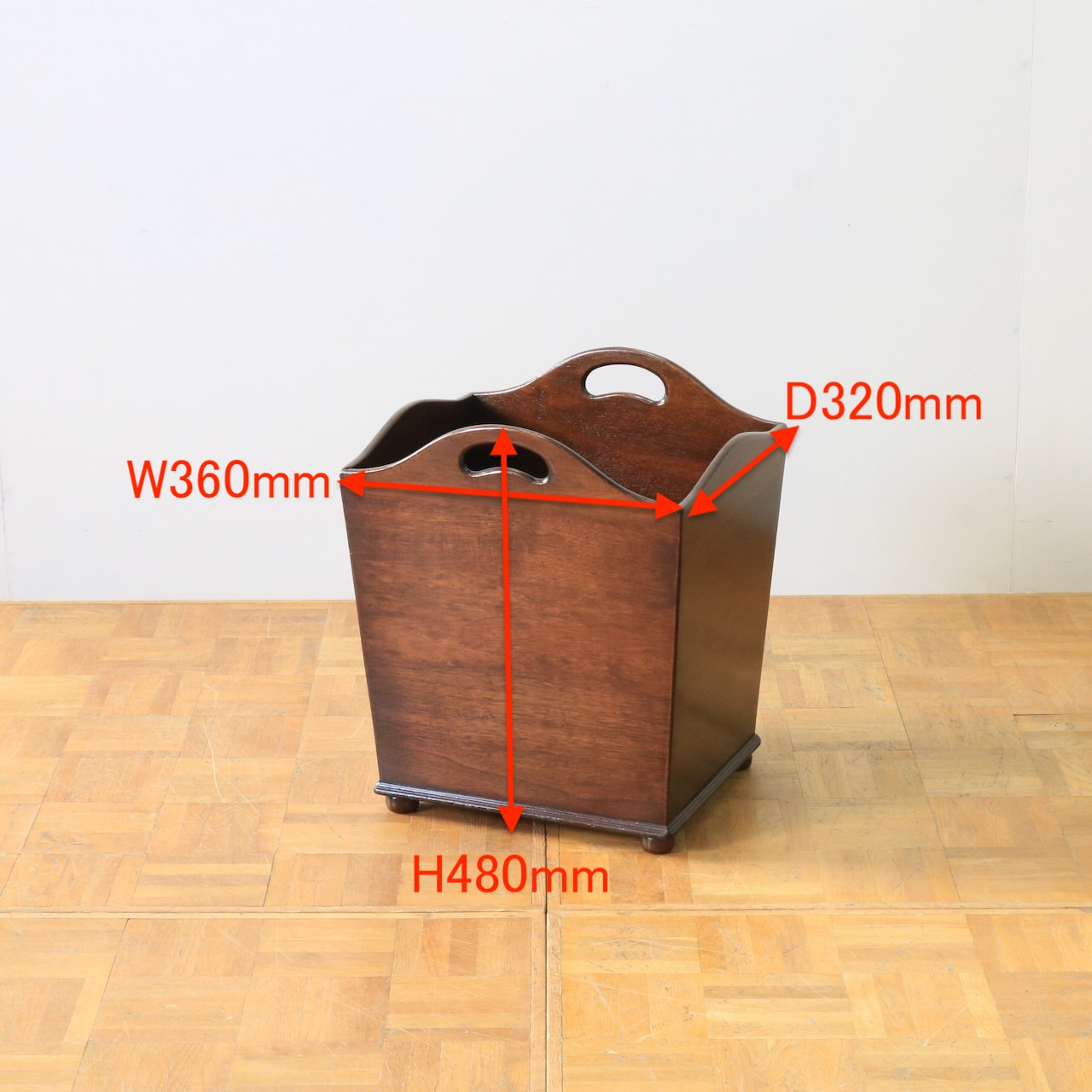マホガニーのマガジンラック。シンプルな形が潔い雰囲気を醸し出しています。正方形に近い形は雑誌や新聞だけでは無く、収納ボックスやプランツカバーとしてもお使い頂けます。