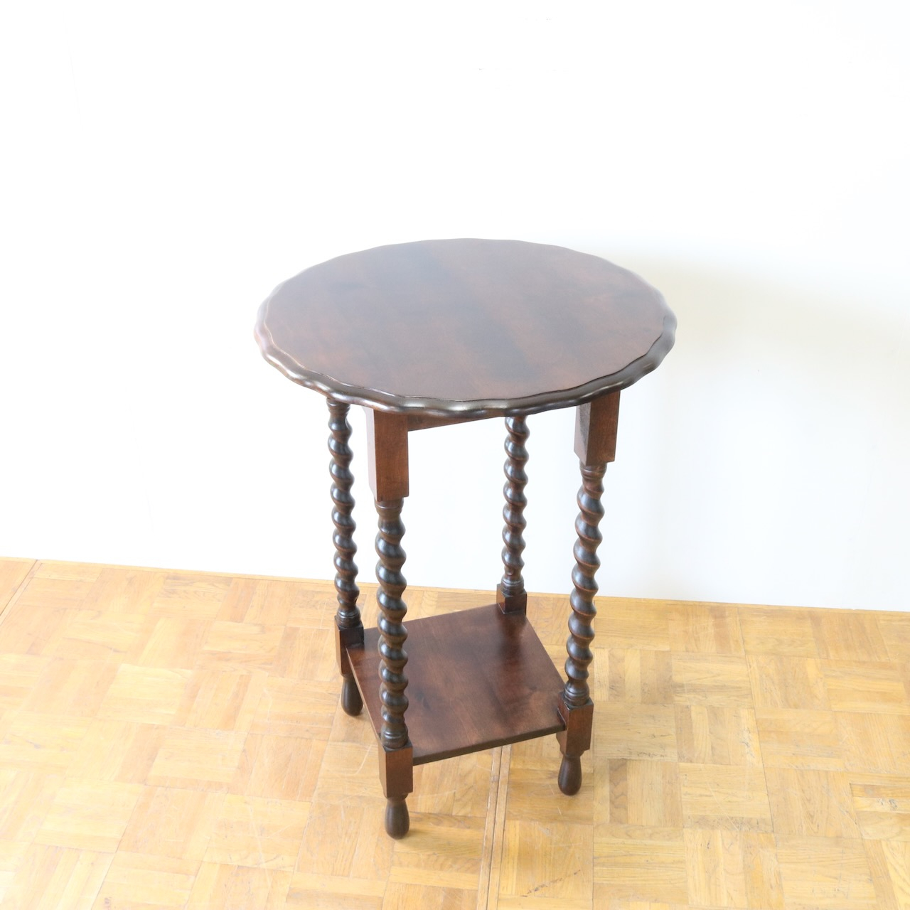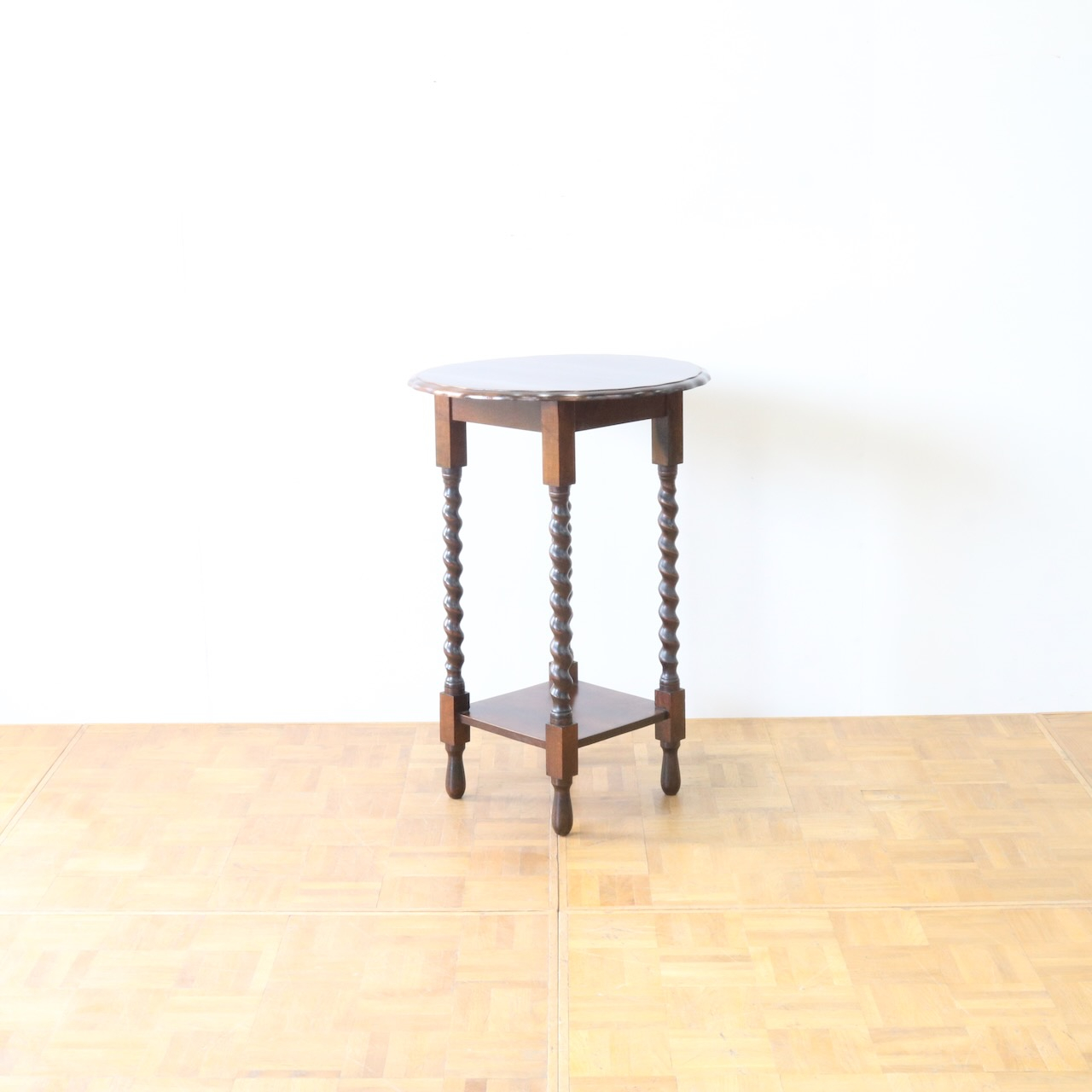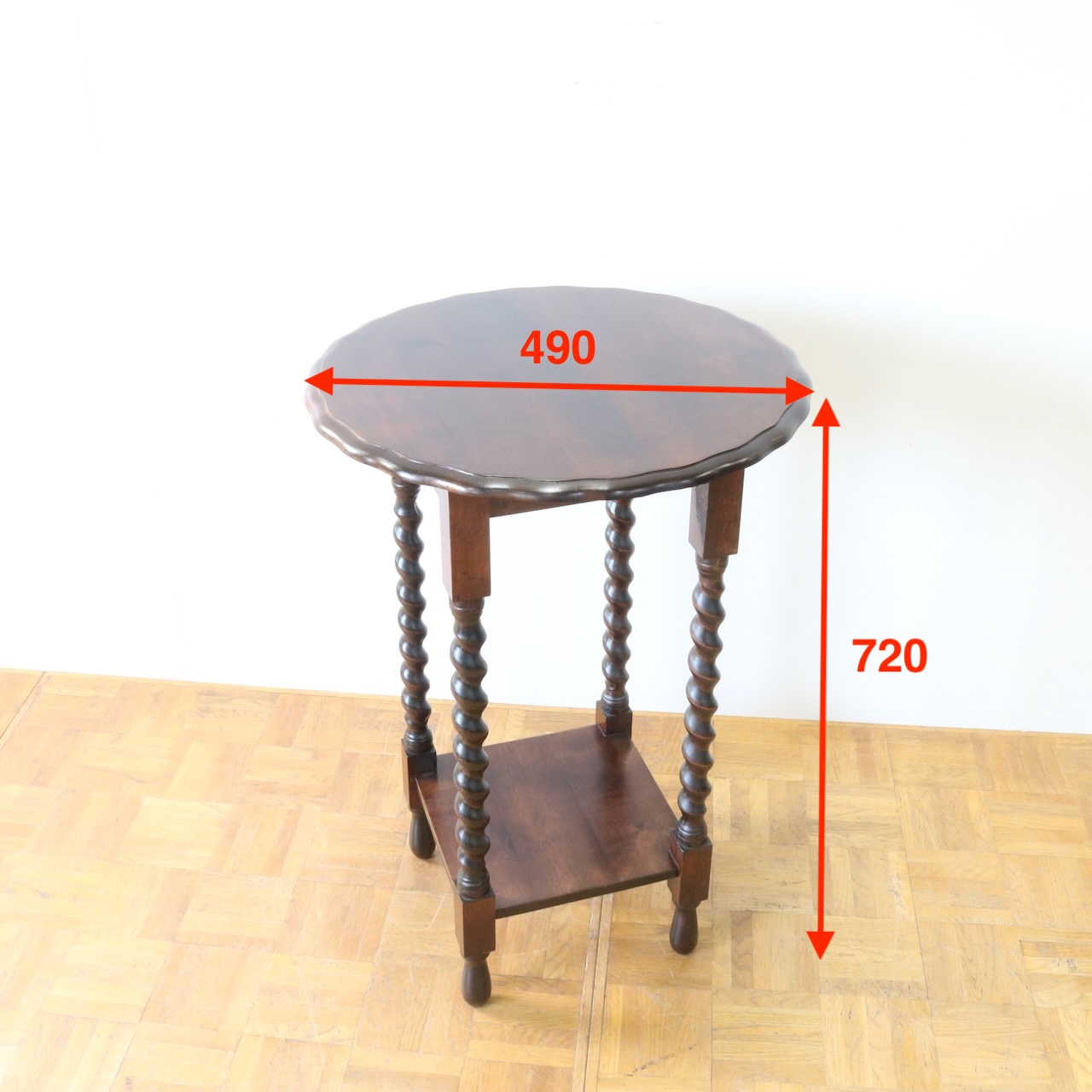 配送料の目安 ▶︎1930年代、バーチ材のオケージョナルテーブル。ゆるやかに波打つ縁の正円の天板は柔らかな印象です。ツイストレッグがしっかりとクラシカルな雰囲気を演出してくれています。