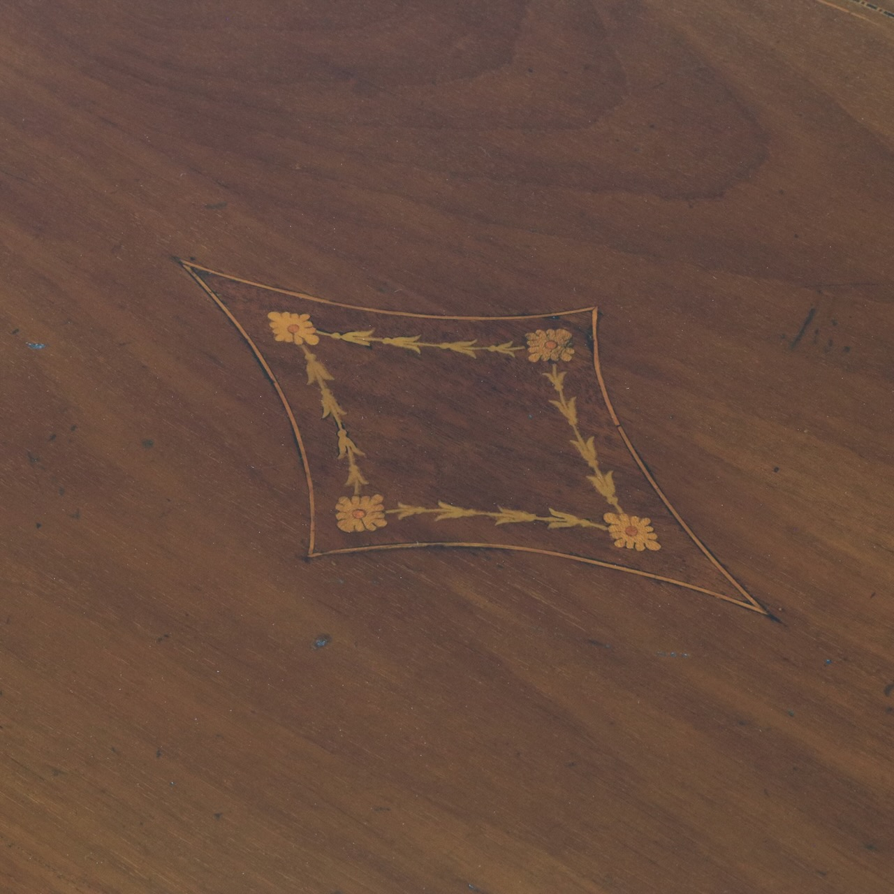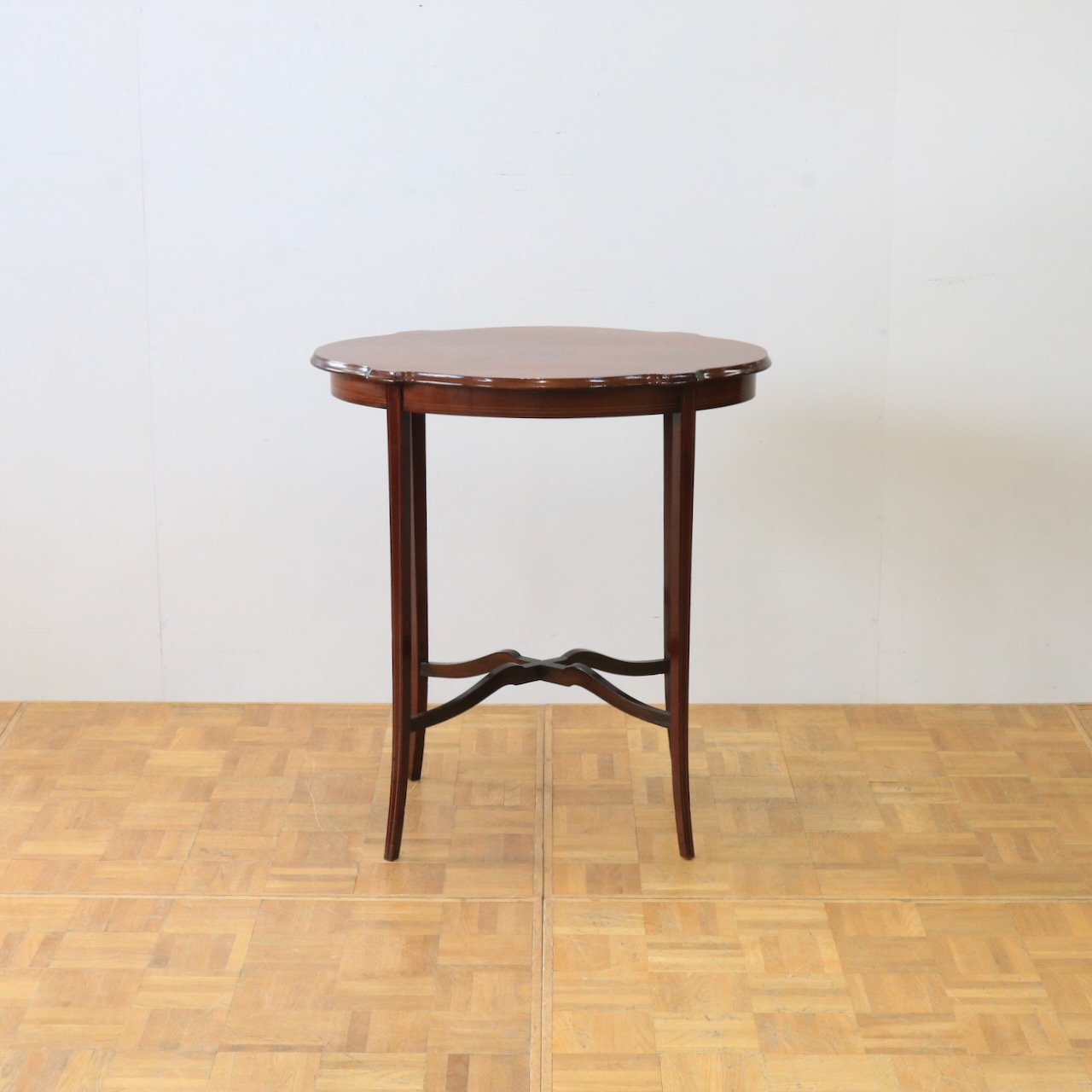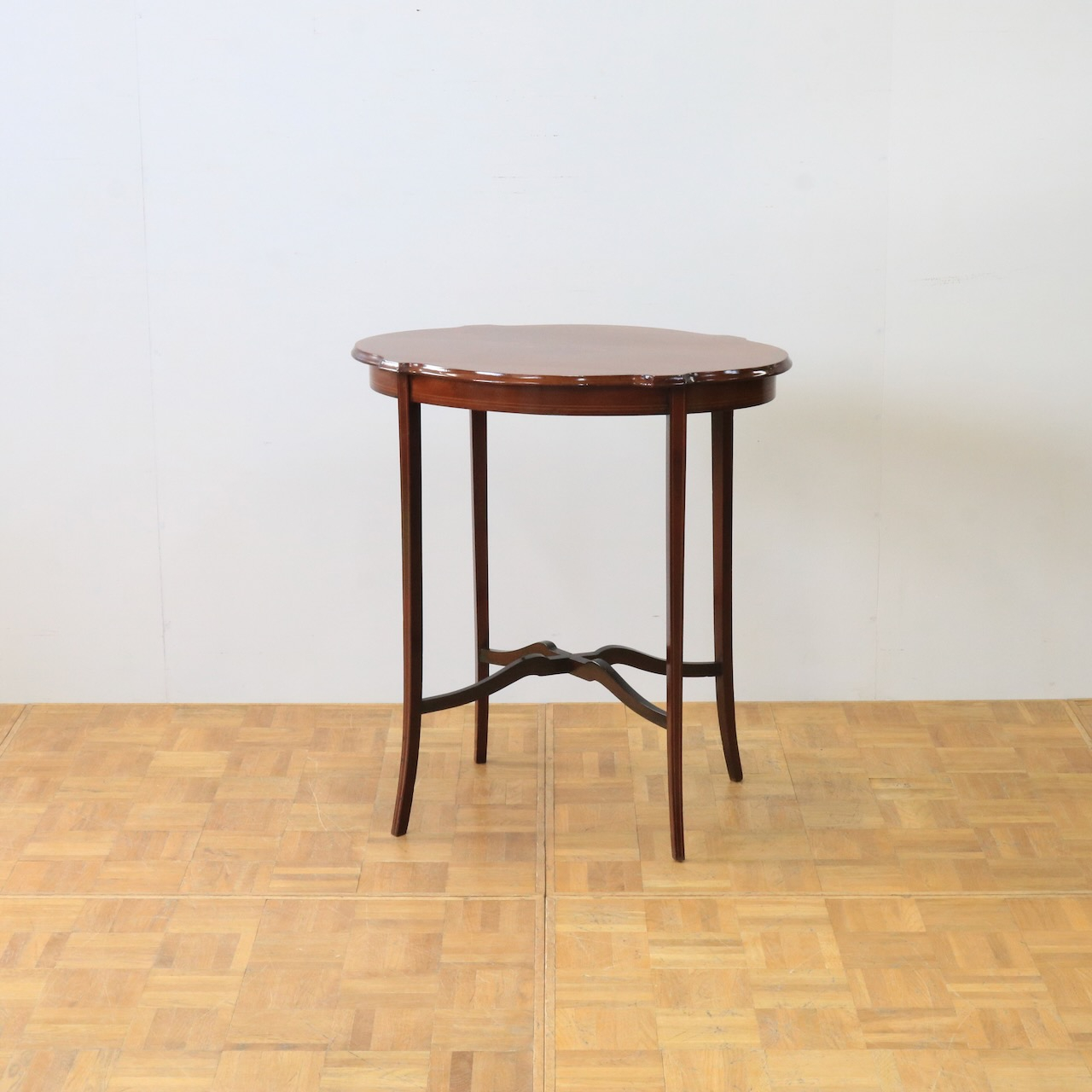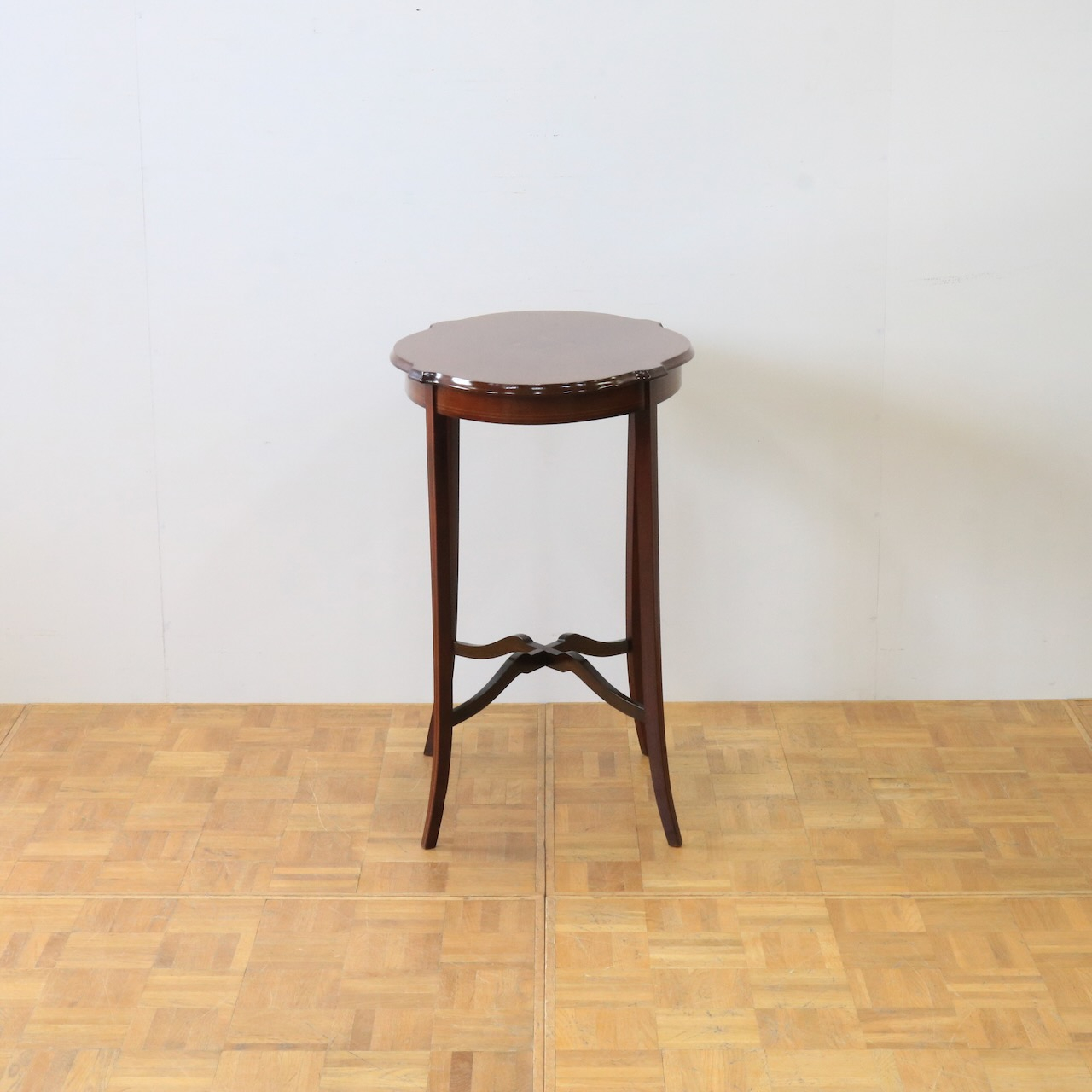 配送料の目安 ▶︎1920年代、マホガニーのオケージョナルテーブル。天板に可憐な小花のインレイが施されています。花台やランプを飾ったり、ティーテーブルにしたりと様々なシーンで活躍します。