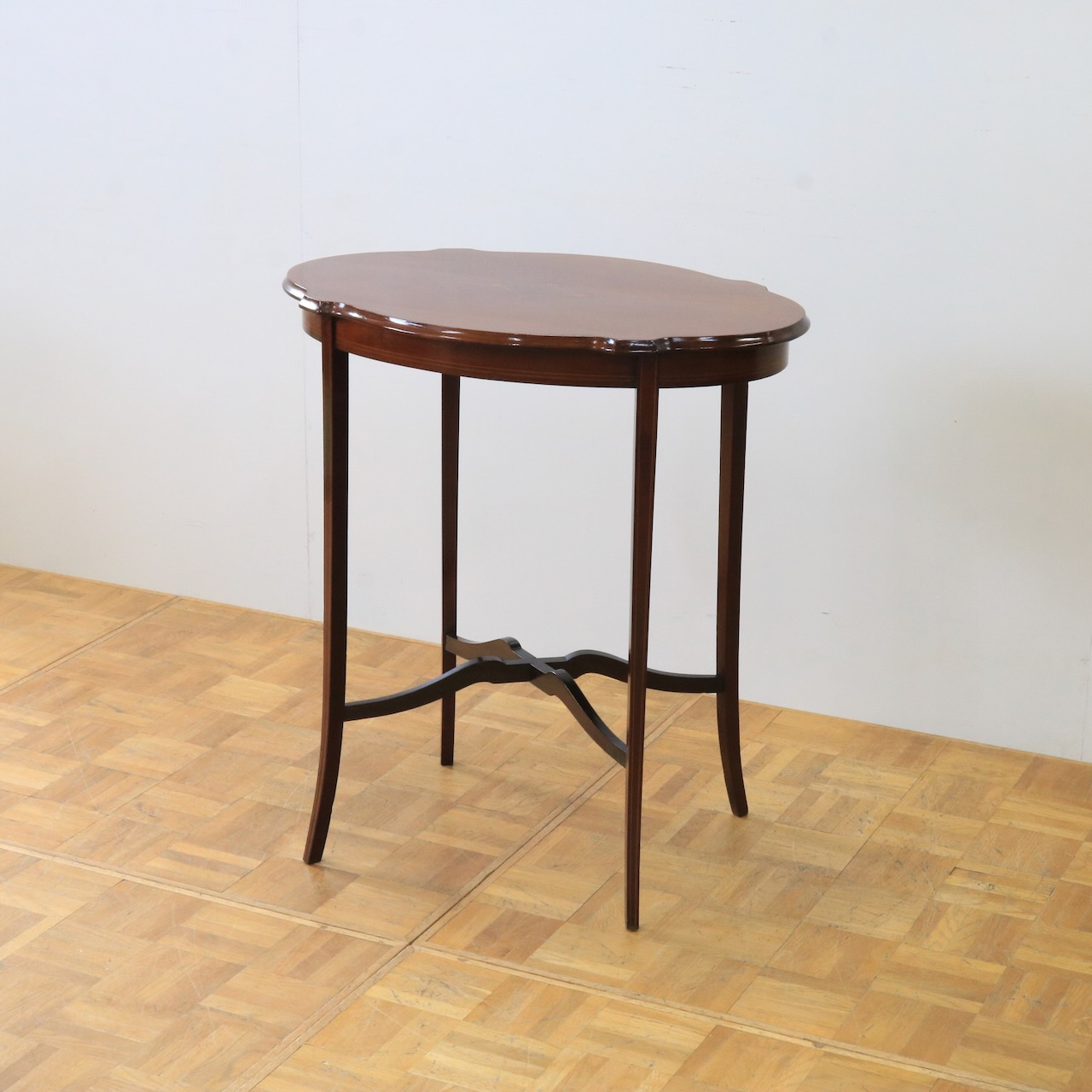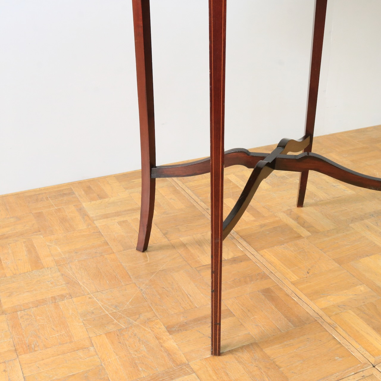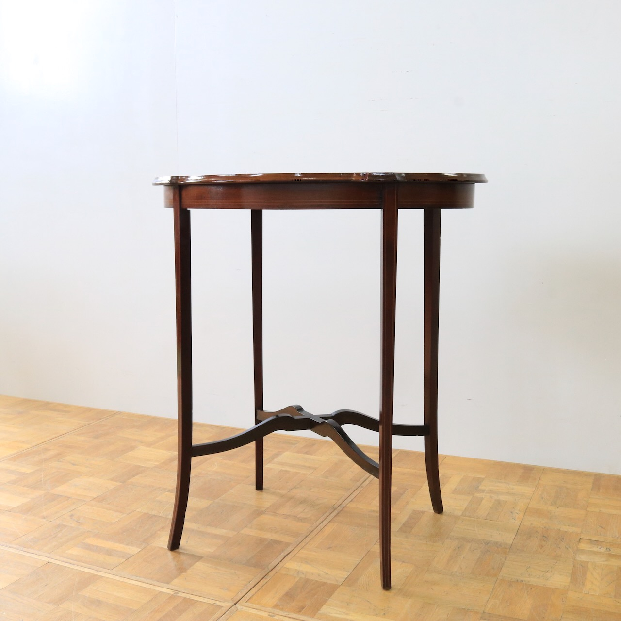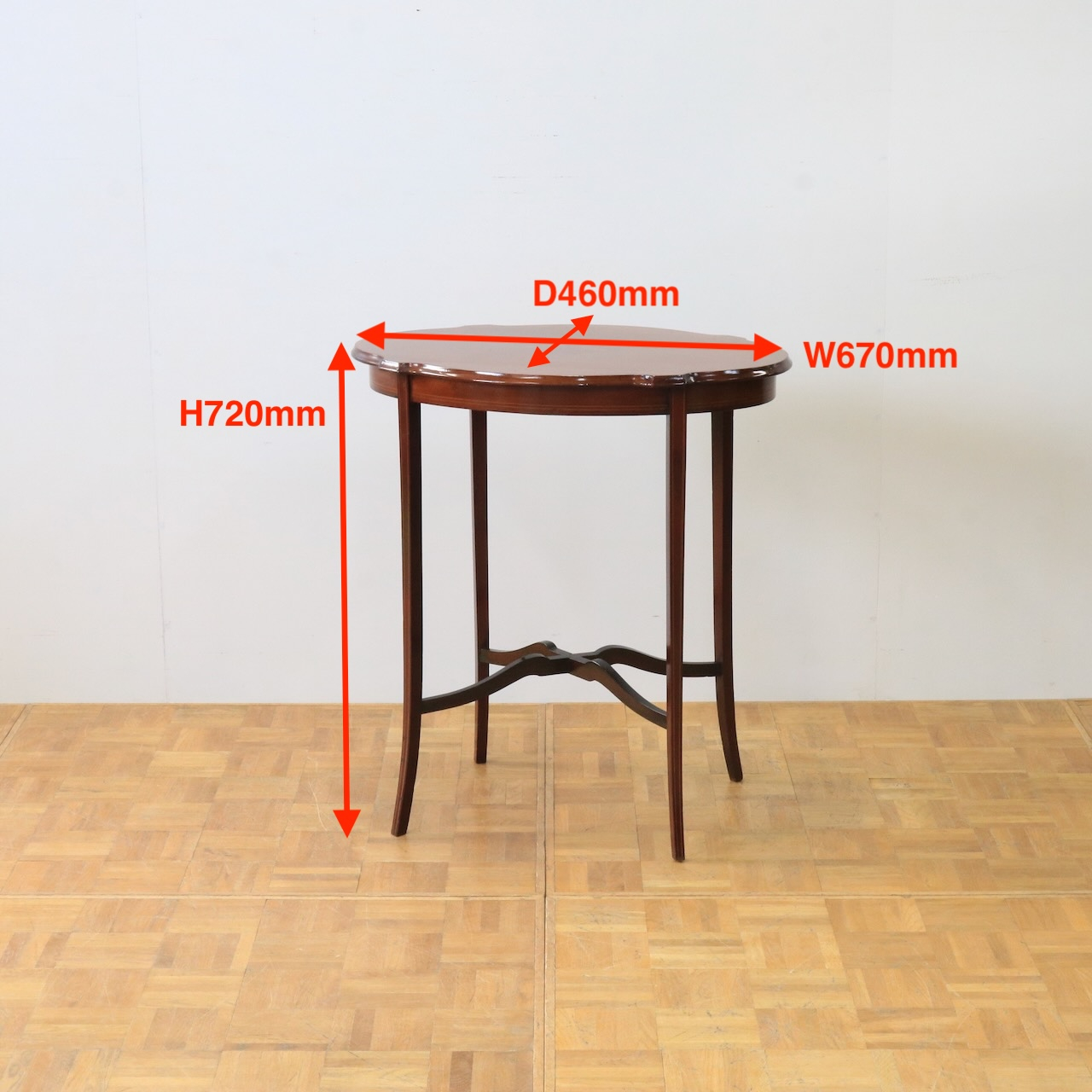 配送料の目安 ▶︎1920年代、マホガニーのオケージョナルテーブル。天板に可憐な小花のインレイが施されています。花台やランプを飾ったり、ティーテーブルにしたりと様々なシーンで活躍します。