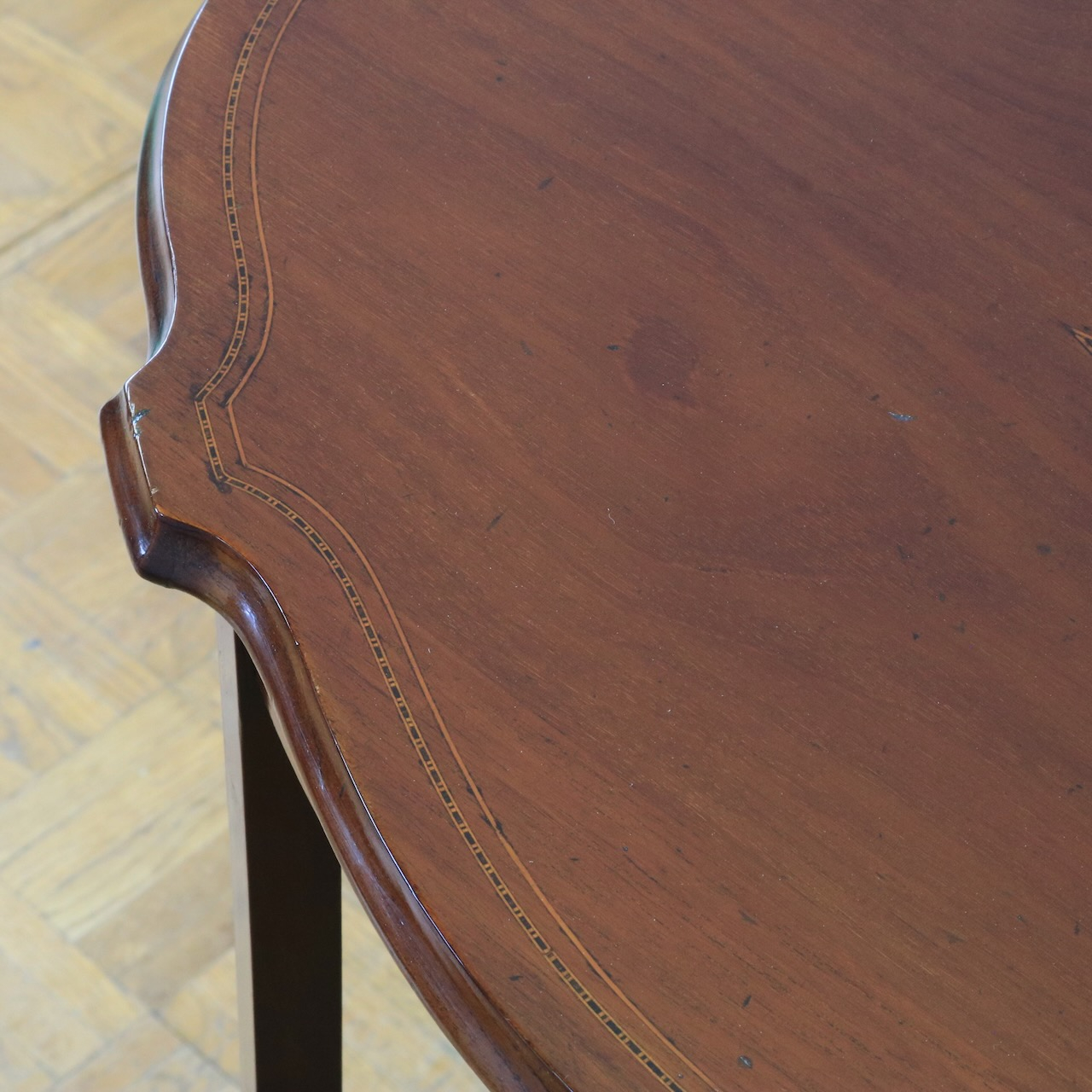 変形の縁にもぐるりとインレイの細い装飾が入っています。非常に緻密な仕事がうかがえます。