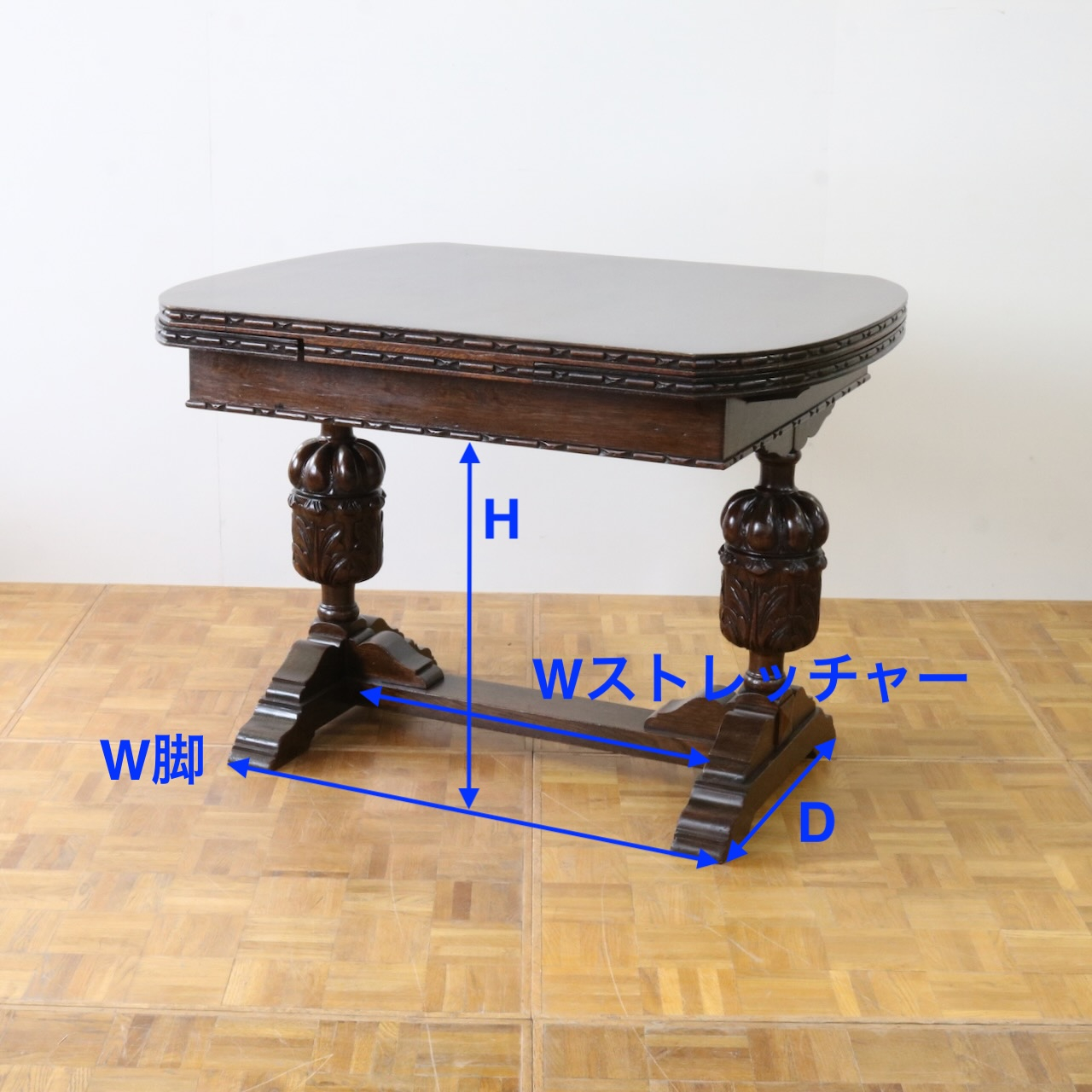 両リーフを閉じた状態でも4人で使用できる絶妙なサイズ感や、アンティークらしい重厚なレリーフ等、機能面・デザイン面どちらも優れたひと品。
