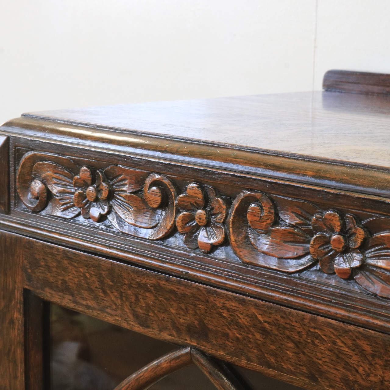 力強く彫り込まれたお花の装飾や脚先にまでデザインにこだわりが見えます。