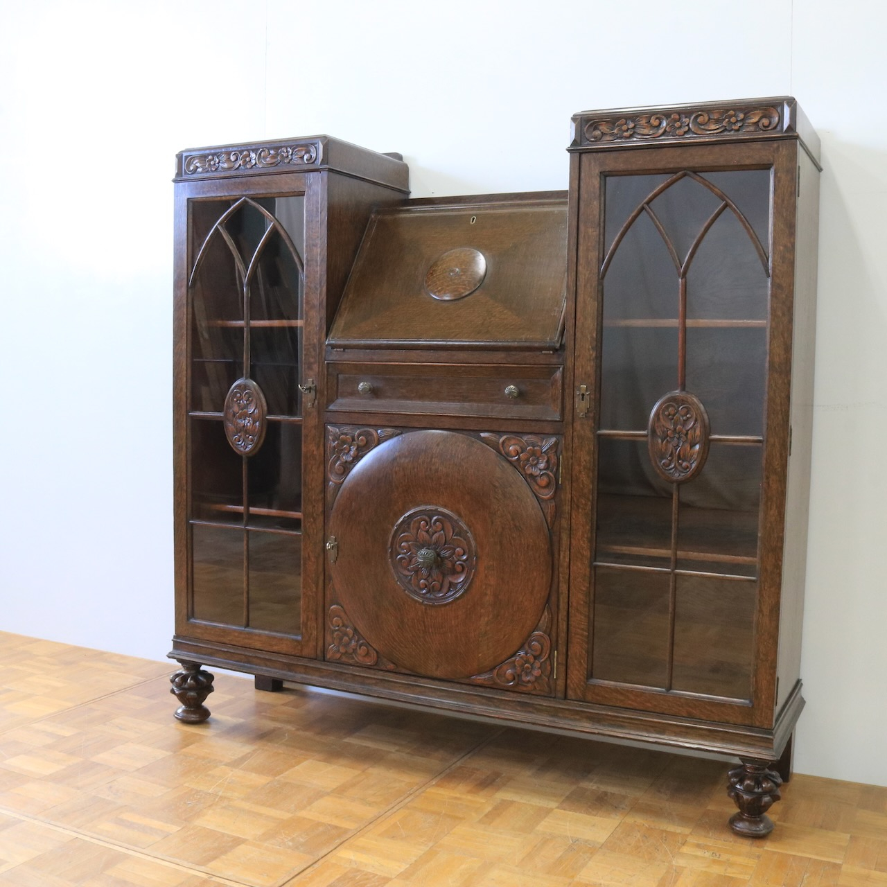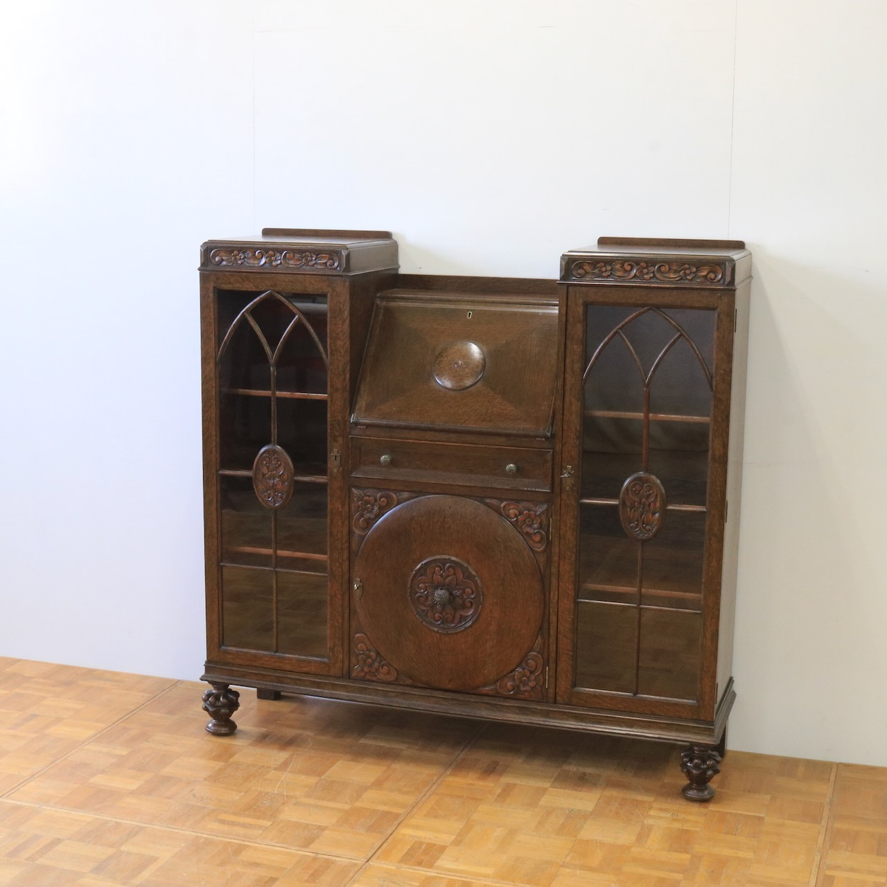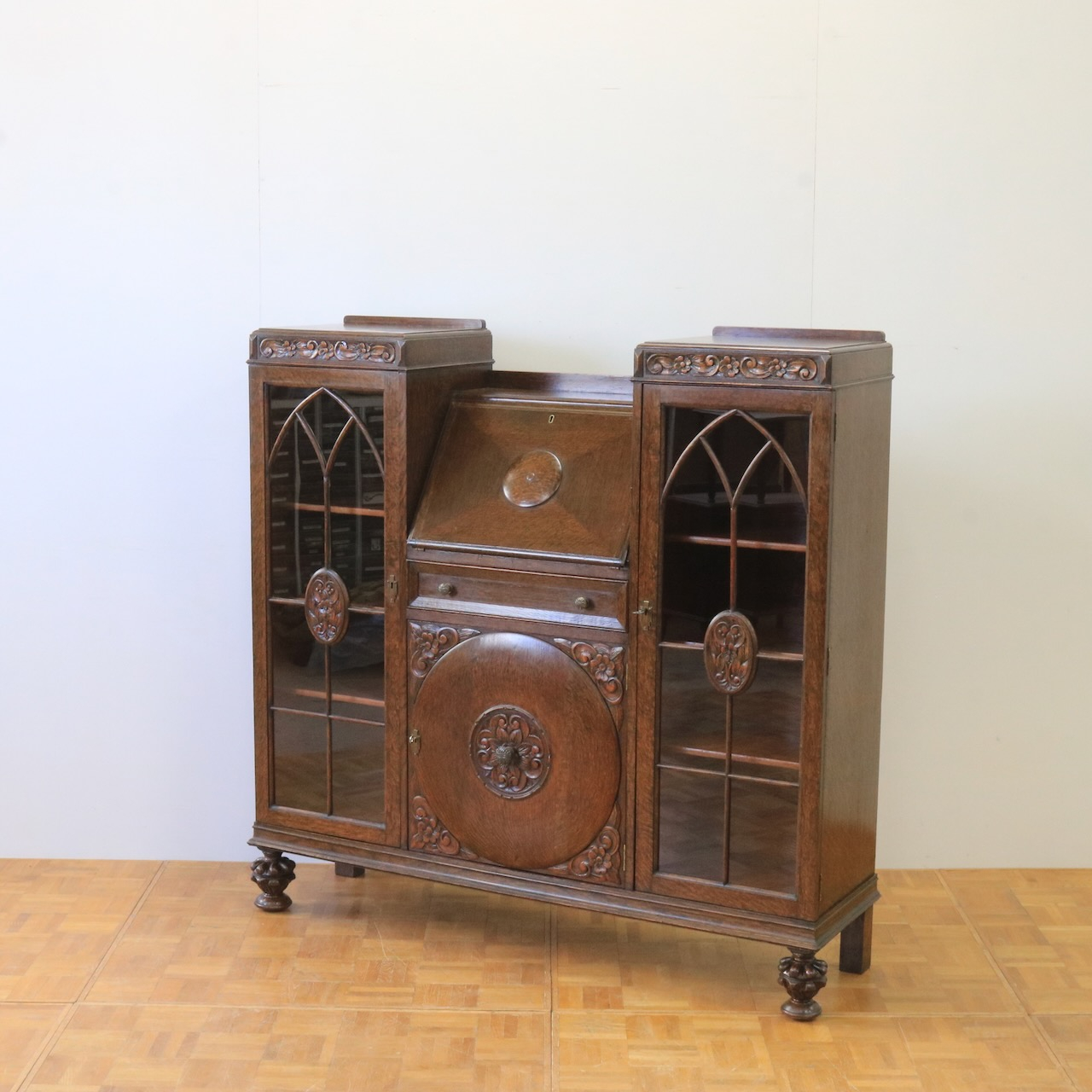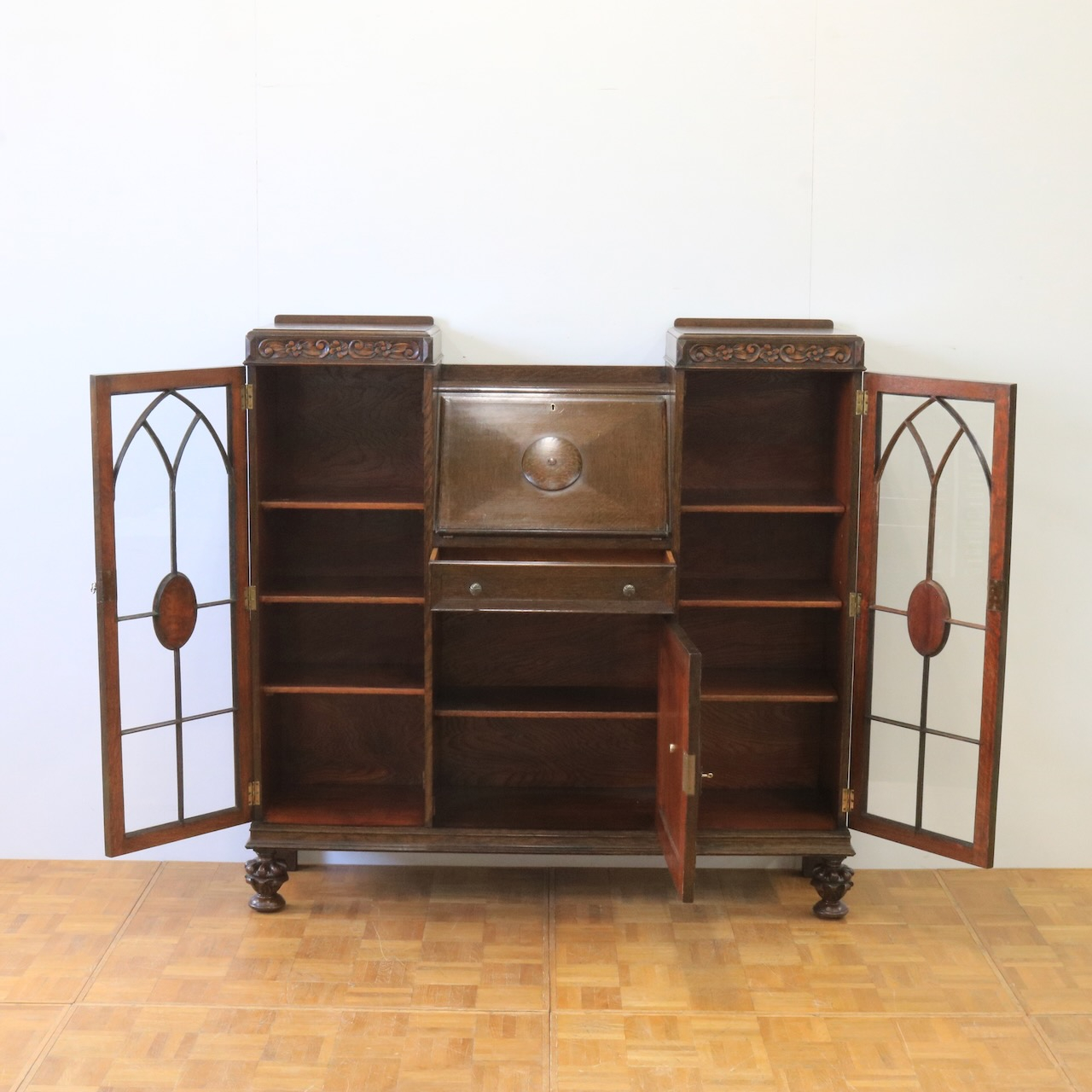 配送料の目安 ▶︎1930年代、オーク材のサイドバイサイド。本棚・ビューロー・本棚が一体化した家具です。