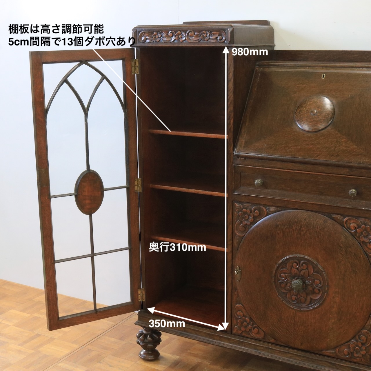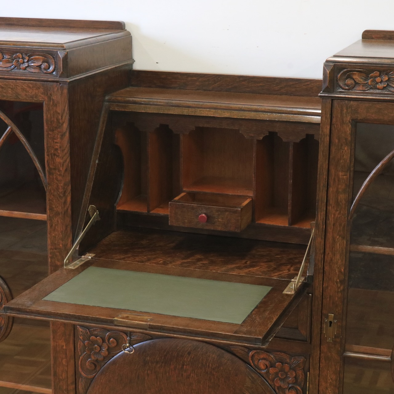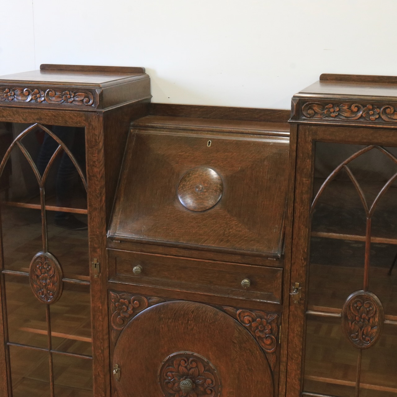 配送料の目安 ▶︎1930年代、オーク材のサイドバイサイド。本棚・ビューロー・本棚が一体化した家具です。
