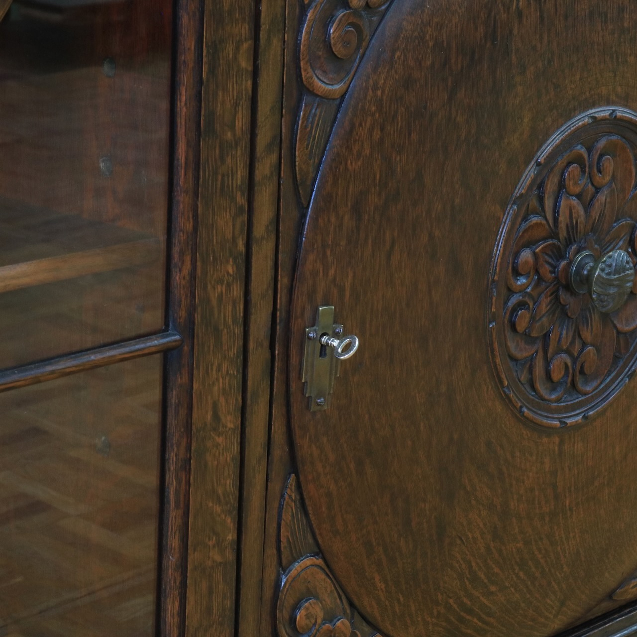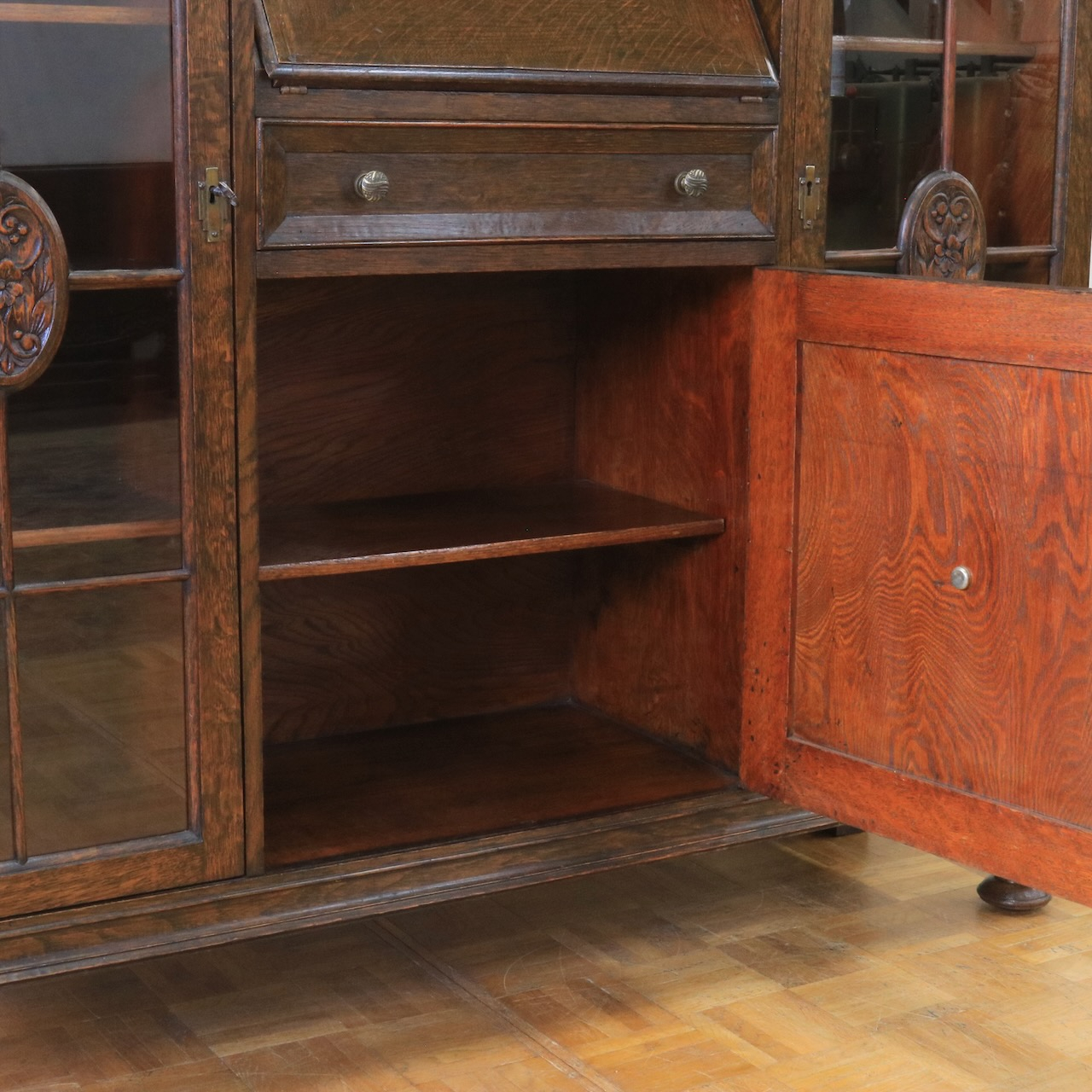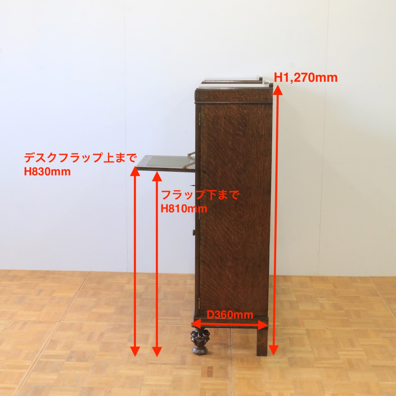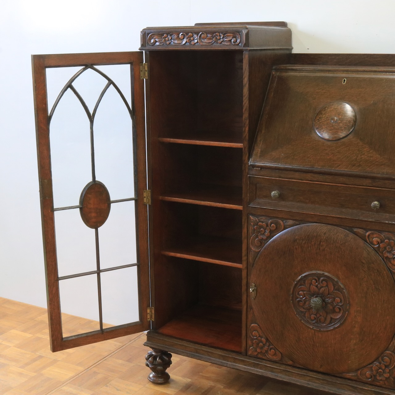 配送料の目安 ▶︎1930年代、オーク材のサイドバイサイド。本棚・ビューロー・本棚が一体化した家具です。